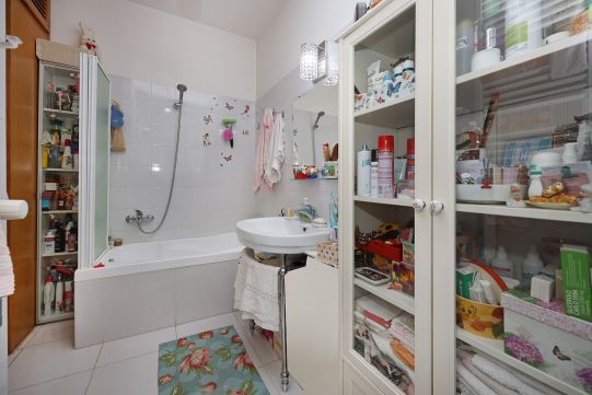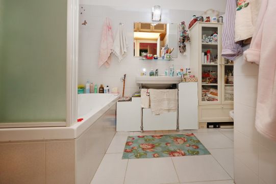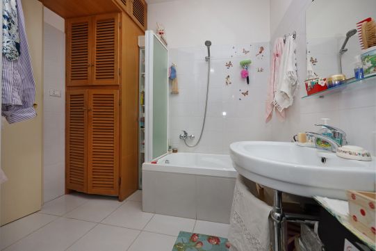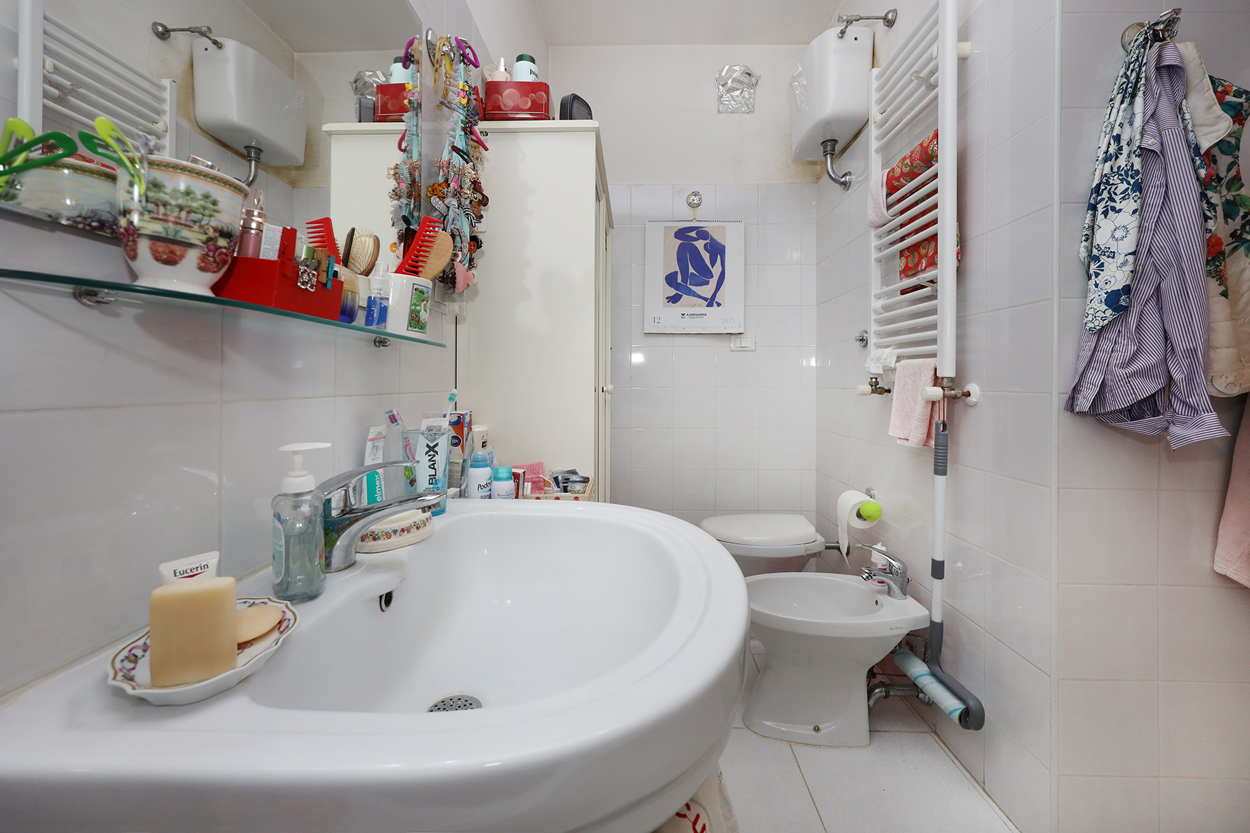 Il bagno completo di tutti i sanitari è provvisto di vasca. Rubinetteria miscelatori monocomando.