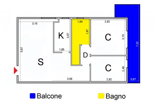 Superficie calpestabile appartamento mq 54 circa;