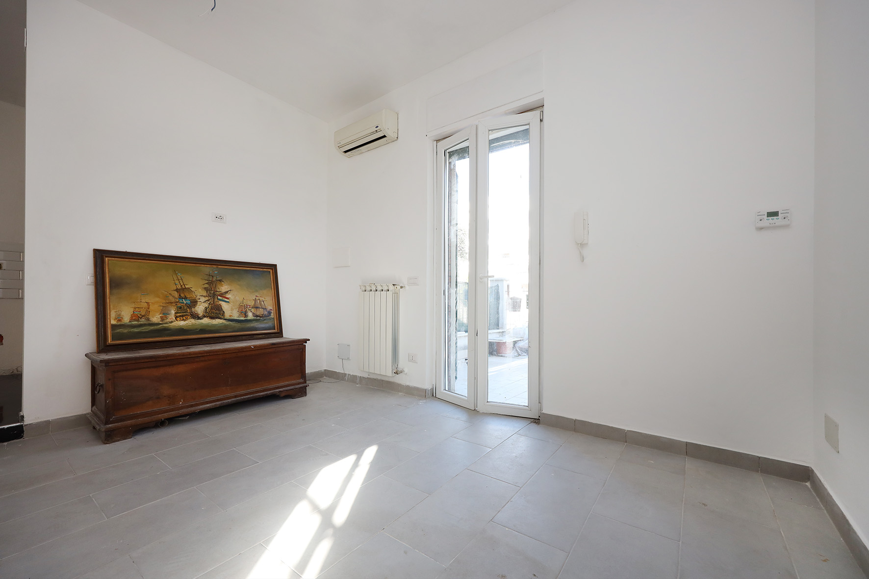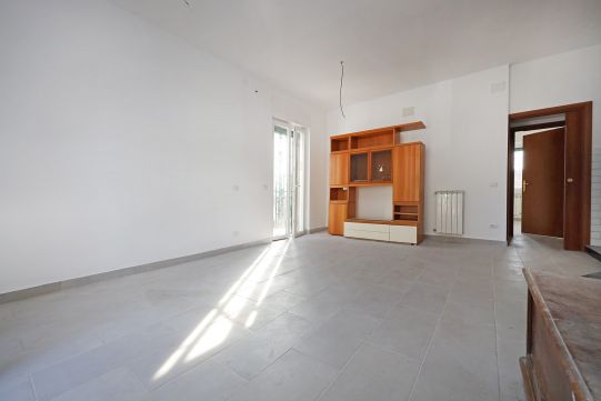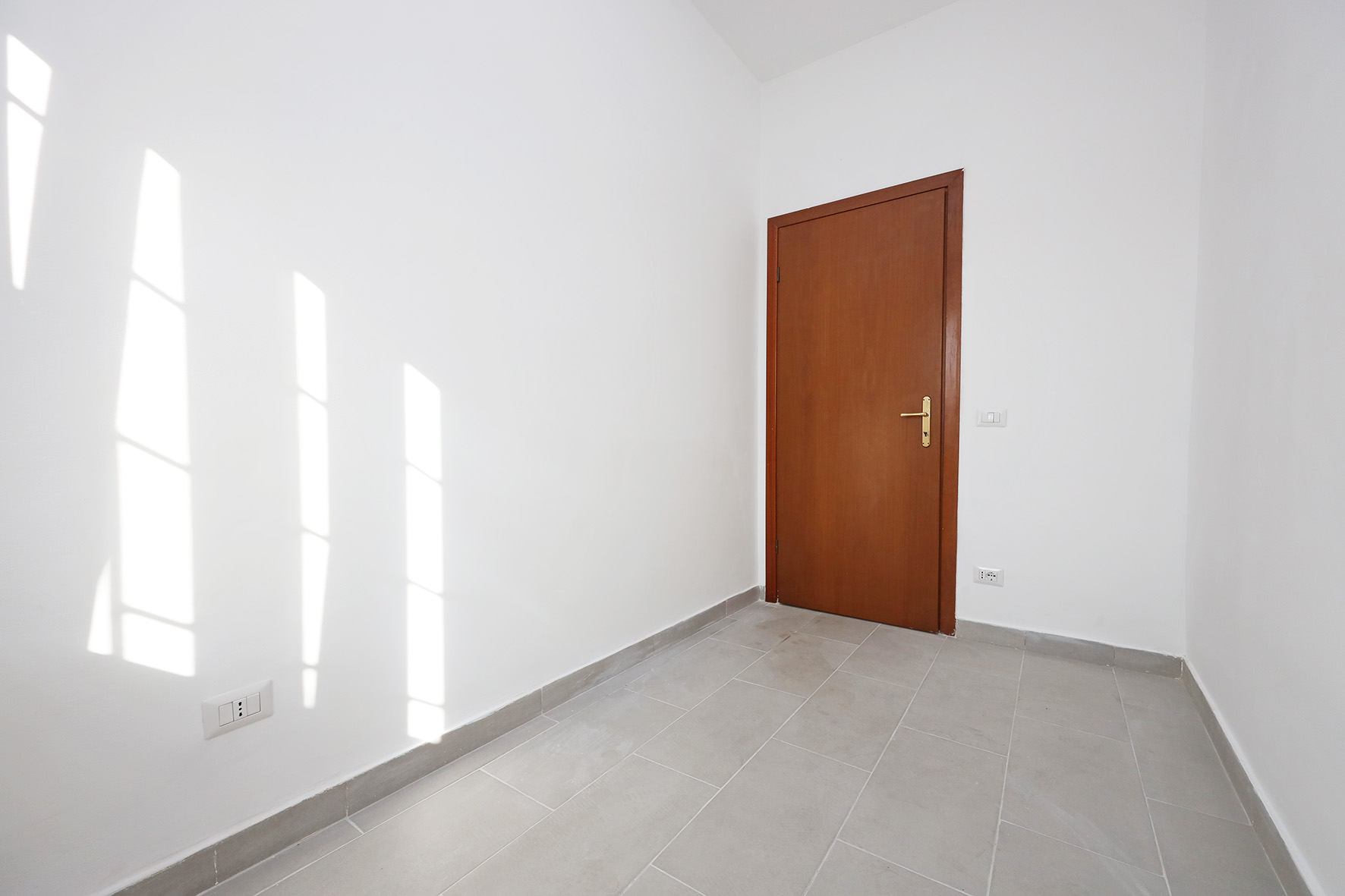 Infissi esterni in PVC con doppio vetro, porte interne a battente (una sola è scorrevole a scrigno) di colore noce scuro. Avvolgibili in PVC, quelli del salone sono elettrici, quelli della restante parte della casa a cinghia, pavimento in gres porcellanato, zoccolino dello stesso materiale. Impianto citofonico. Impianti elettrico e termo - idraulico con dichiarazione di conformità. Pareti rasate e tinteggiate di bianco. Il bagno dotato di tutti i sanitari (sospesi), è provvisto di una doccia, oltre un vano per lavatrice e asciugatrice. Rubinetteria con miscelatori monocomando. Piastre radianti in alluminio. Termoarredo in alluminio nel bagno. Nella zona notte, tra la camera ed il bagno, è presente un soppalco accessibile dal bagno e dalla camera da letto. Grate di sicurezza alle finestre. Predisposizione per due condizionatori, uno in camera da letto l’altro nel salone; in salone è presente uno split funzionante, visibile nelle foto.