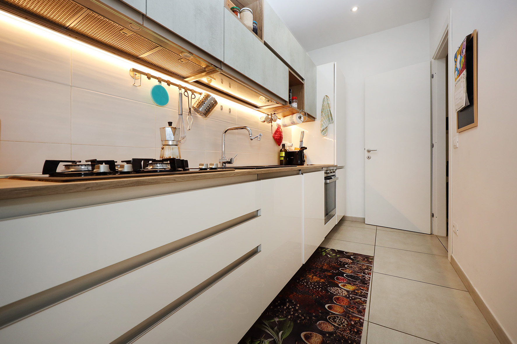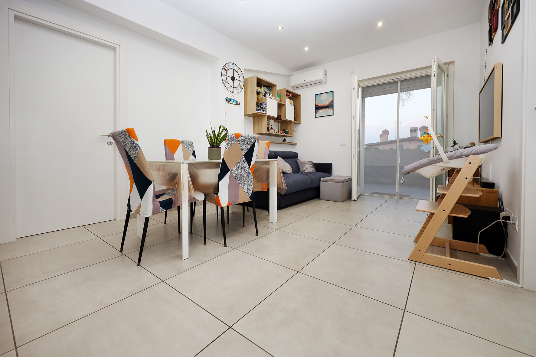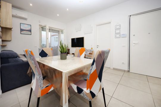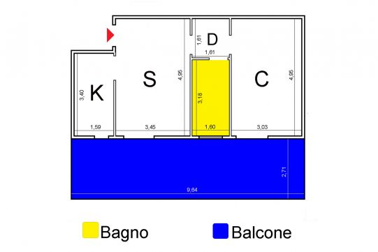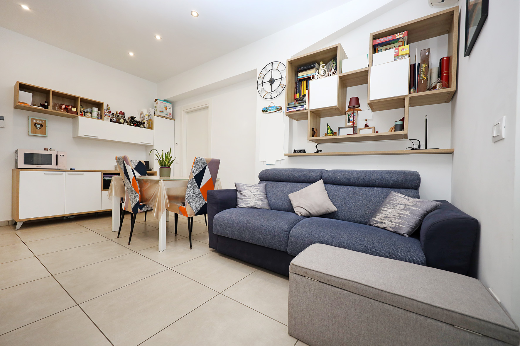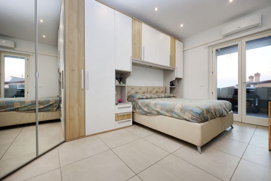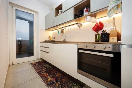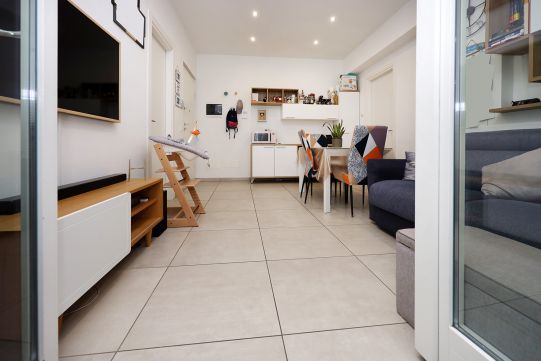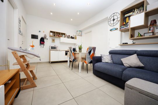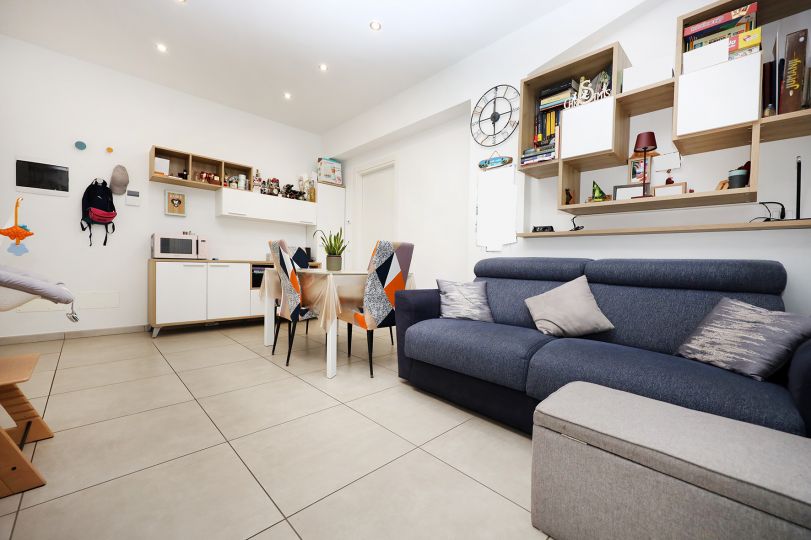 L’appartamento si compone soggiorno, cucina, disimpegno, camera, bagno con finestra e terrazzo abitabile. Gli arredi sono esclusi dal prezzo di vendita.