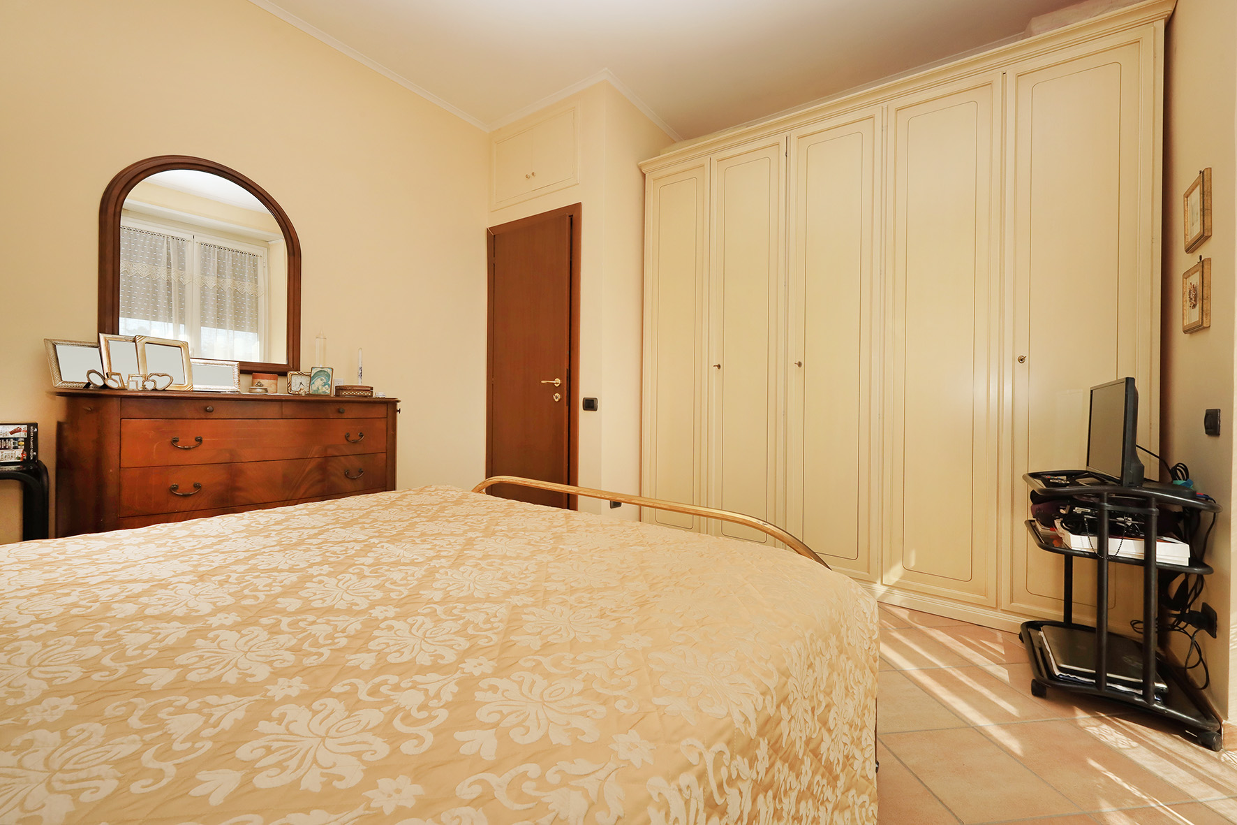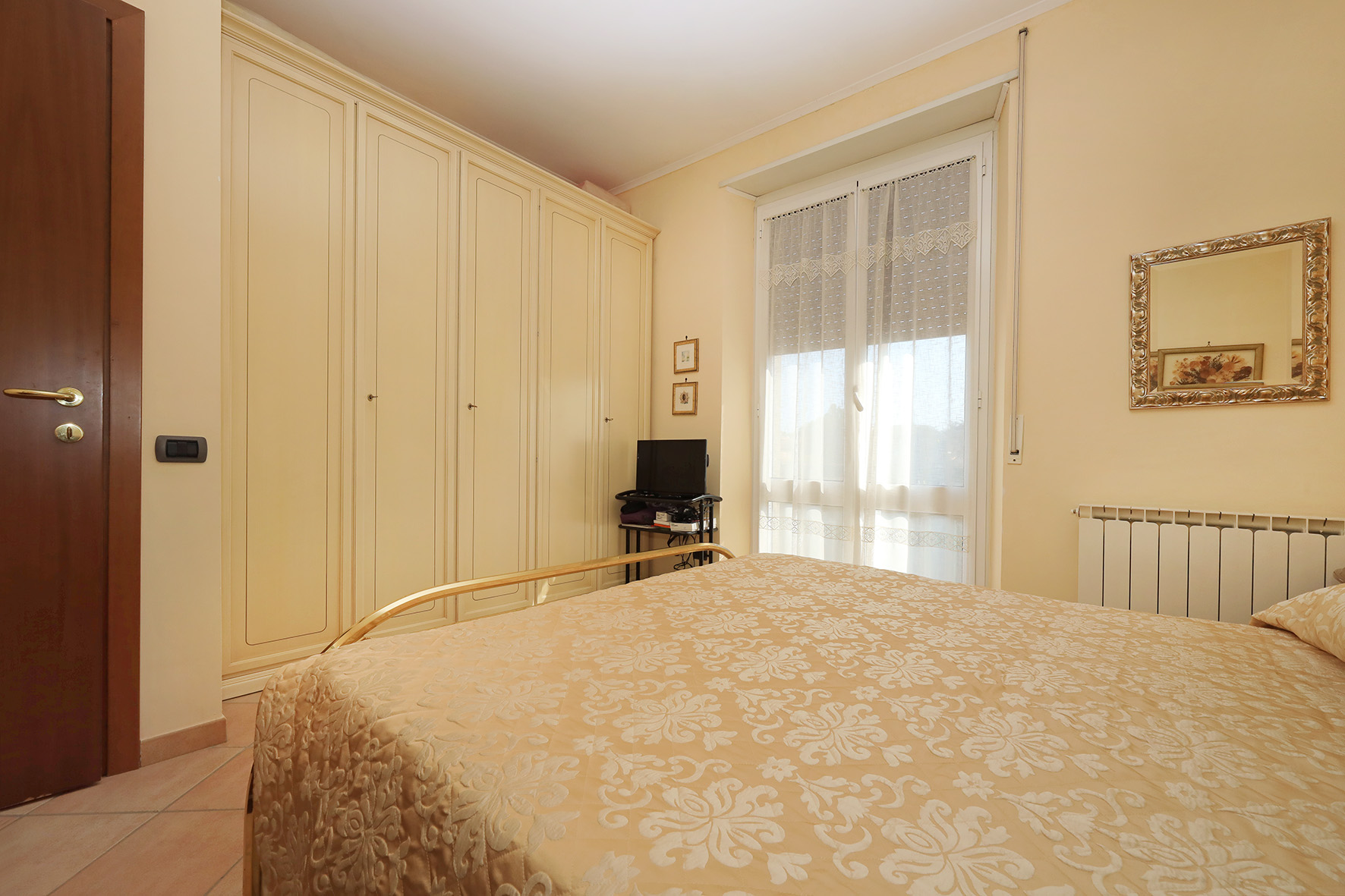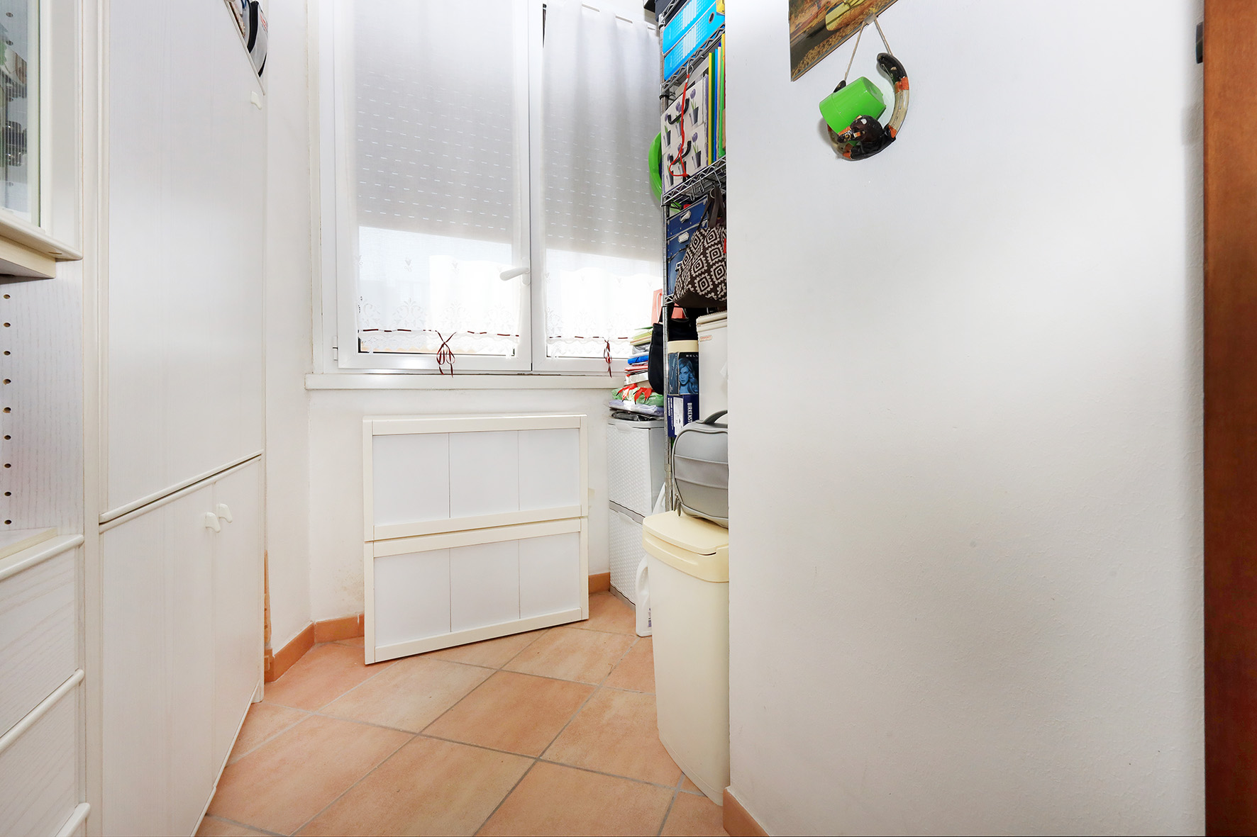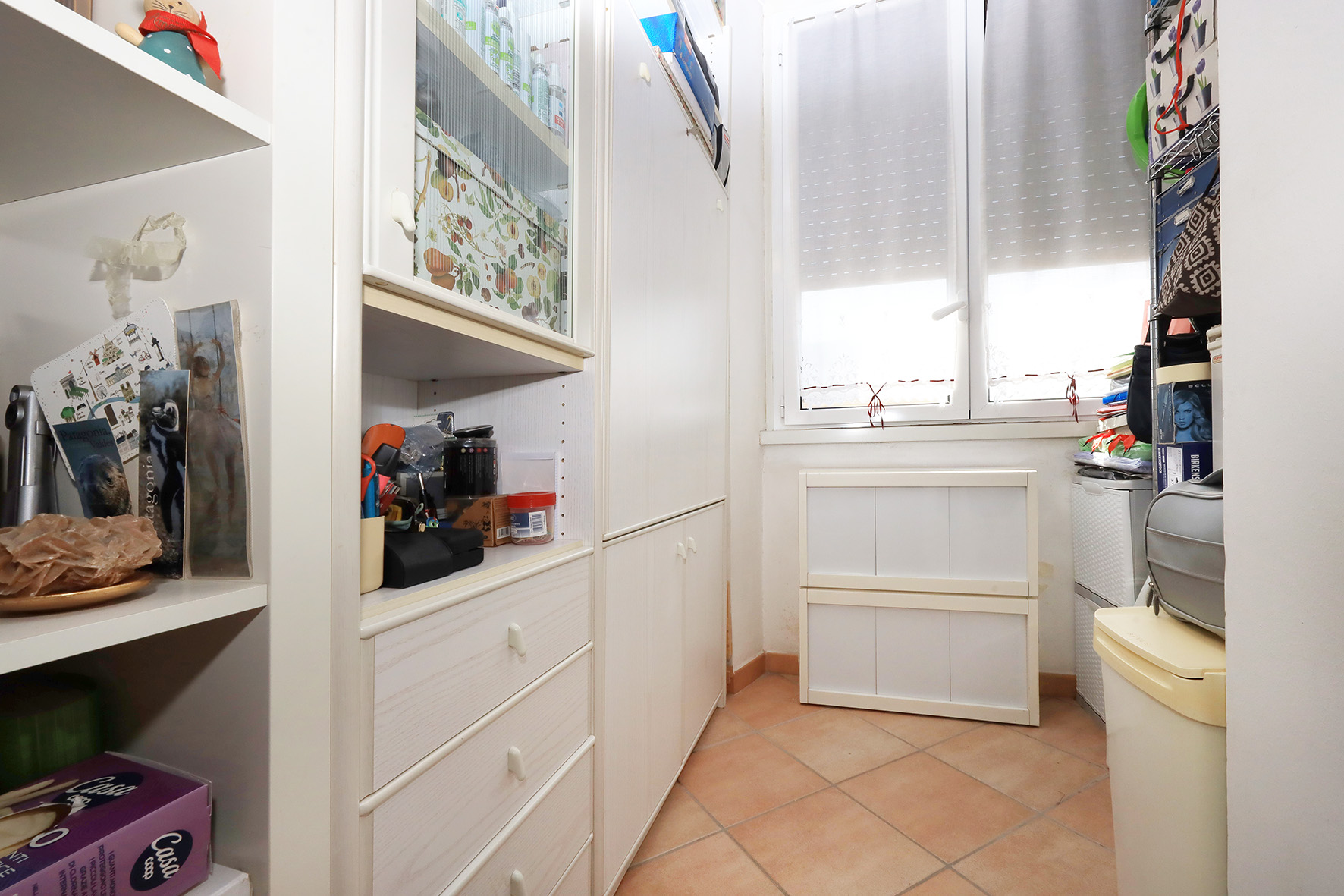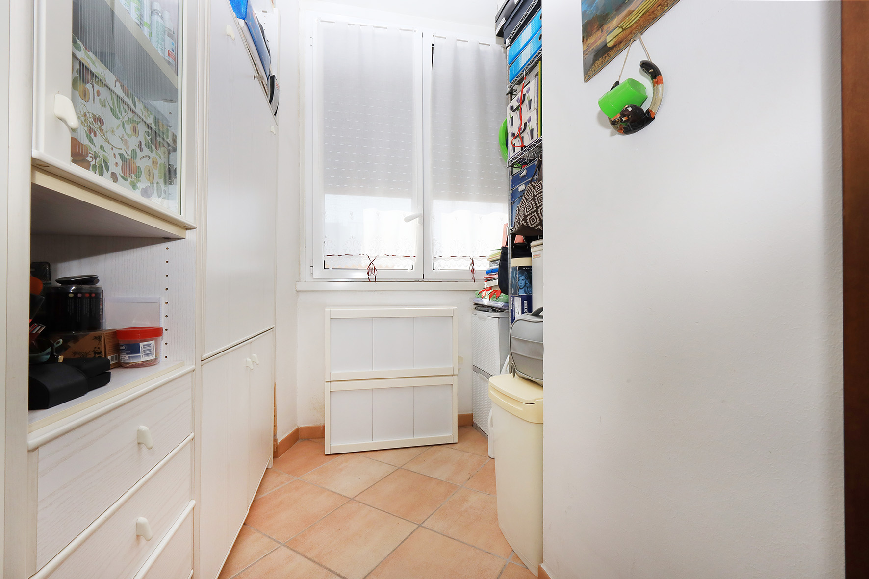 Portoncino blindato chiave con cilindro europeo. La casa si presenta in ottime condizioni. Infissi esterni in alluminio anodizzato di colore bianco, con doppio vetro. Pavimentazione in gres porcellanato con zoccolino dello stesso materiale. Le porte interne di colore noce scuro sono tutte prevalentemente a battente, ad esclusione di quella del ripostiglio, pieghevole. Bagno provvisto di finestra, con sanitari tradizionali (piatto doccia) e rubinetteria miscelatori monocomando. Nel bagno è anche presente l’attacco per la lavatrice. Le pareti sono tutte rifinite in tinta. Impianto di riscaldamento autonomo. La caldaia che produce anche acqua calda sanitaria, perfettamente funzionante, è provvista di bollino blu e del controllo dei fumi. Piastre radianti in alluminio. Impianto tv ed antenna autonomi. Oltre all’appartamento, oggetto della vendita è anche un lastrico solare, molto panoramico, dove è presente una tettoia tamponata all’interno della quale ci sono la caldaia di riscaldamento, un lavabo, il citofono ed un quadro elettrico per la gestione degli impianti presenti al lastrico.