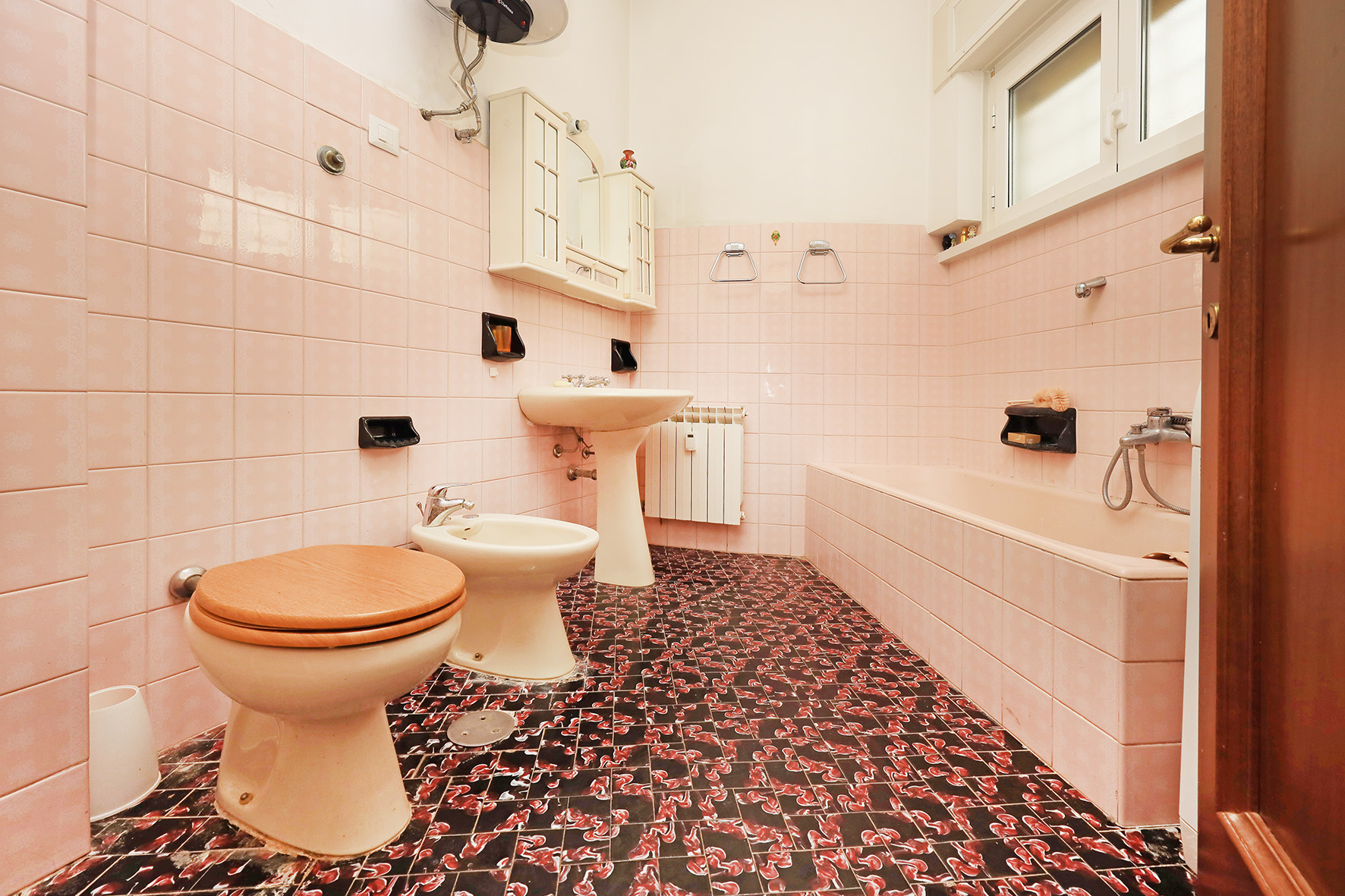 Le pareti sono tutte rifinite in tinta lavabile. Il bagno padronale, provvisto di finestra è completo di vasca. Nel bagno di servizio c’è l’attacco per la lavatrice. La cucina è abitabile.