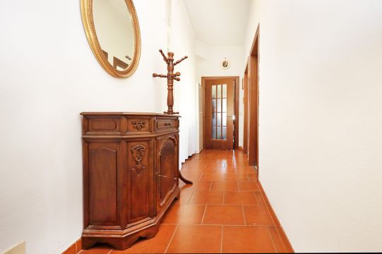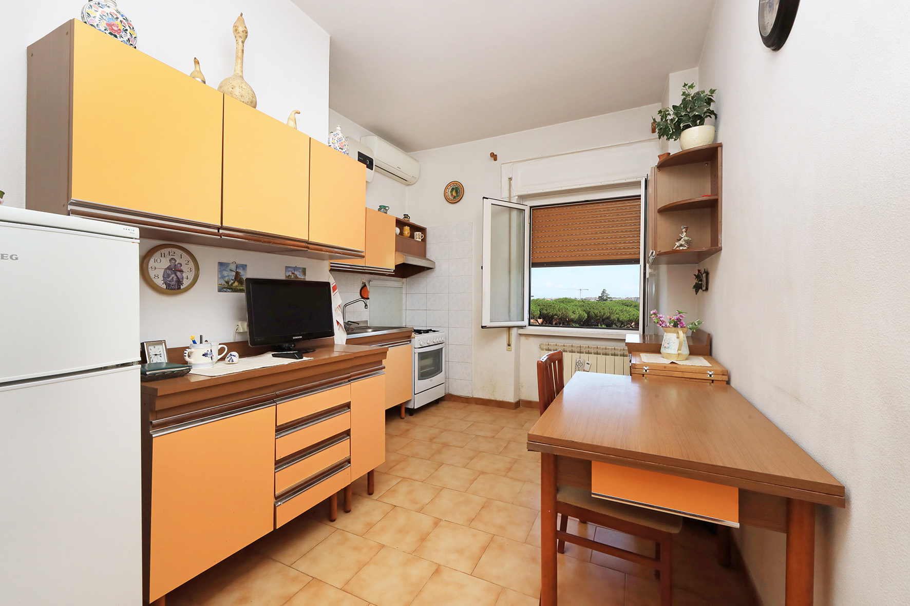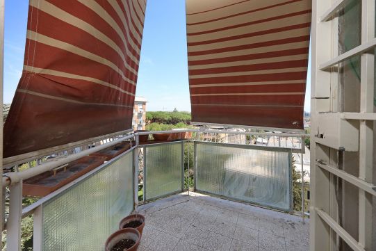 L’appartamento, con veduta panoramica, ha una tripla esposizione e si compone di un ingresso, soggiorno, cucina, due camere da letto, ripostiglio, bagno con finestra e due balconi. Un corridoio disimpegna gli ambienti sopra descritti. Al piano S/1 c’è una cantina di proprietà.