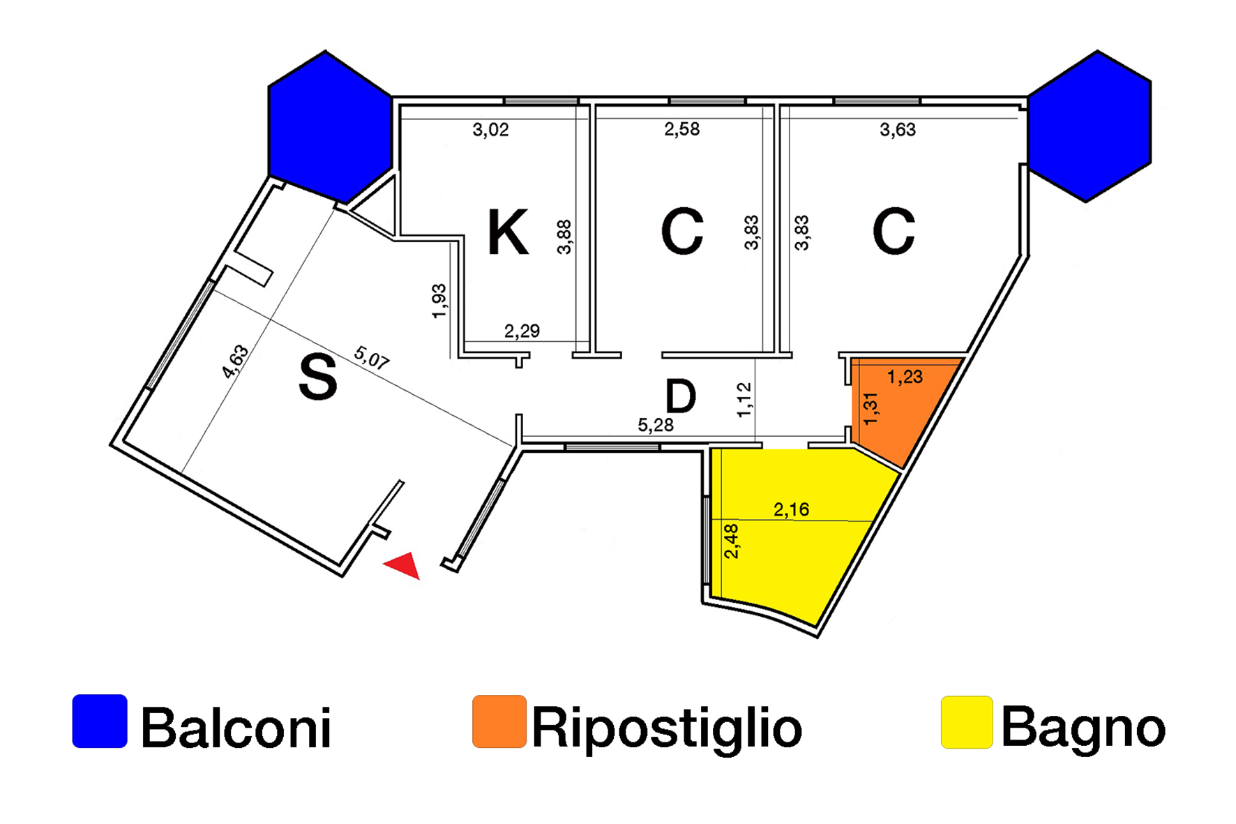 Superficie Commerciale mq. 86 (appartamento e cantina), escluse le aree scoperte 81 mq