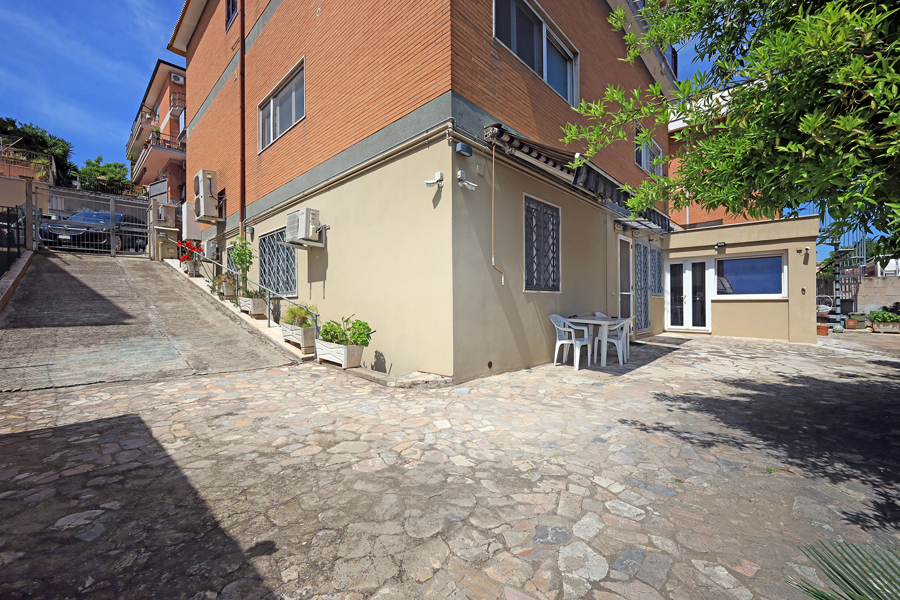 A Vitinia e precisamente in Via Sant’Arcangelo di Romagna, nella parte centrale del quartiere, a circa 600 metri dalla stazione treno / metro di Vitinia, proponiamo in vendita, in esclusiva, un appartamento al piano terreno, S/1 rispetto al piano stradale, posto in una palazzina di due piani furi terra, rifinita esternamente in cortina e tinta. Precisamente l’appartamento disposto tutto su un unico livello, si compone di un salone con angolo cucina, due camere da letto e due bagni, oltre vani tecnici con due camere ed un altro bagno. E’ presente anche un box/cucina, adiacente la proprietà in questione che si affaccia sulla corte esterna molto assolata, dove è possibile anche parcheggiare le auto.