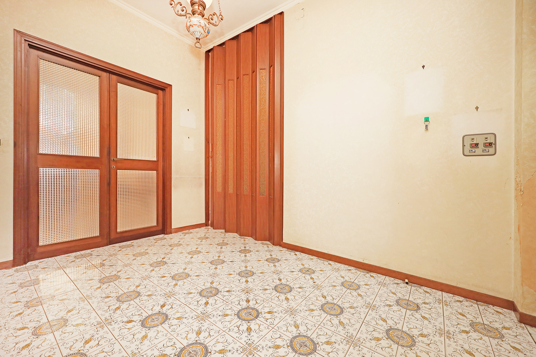 Portoncino d’ingresso tradizionale con serratura rinforzata. Porte interne a battente in legno, alcune con inserti in vetro. Infissi esterni in legno con vetri singoli. Pavimentazione parte in marmittoni, parte in marmo e nei servizi in ceramica. Pareti interne rifinite in tinta. Piastre radianti in metallo. Impianto elettrico funzionante da ristrutturare.