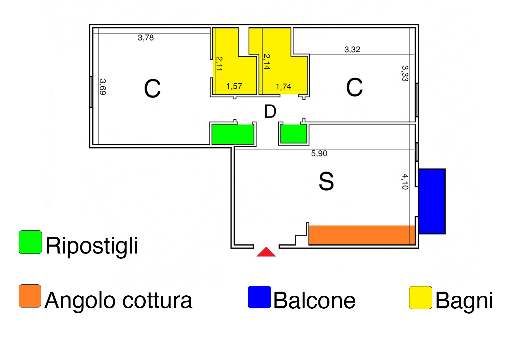 - Cat. A/3, classe 2, cons. 4 vani, 2,5 superficie catastale 76 mq, rendita catastale € 671,39.