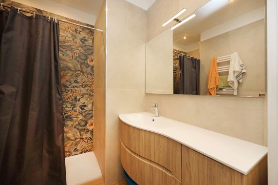 La proprietà si compone di un soggiorno con angolo di cottura, due camere da letto, due bagni e due ripostigli, oltre balconcino presente nel soggiorno.