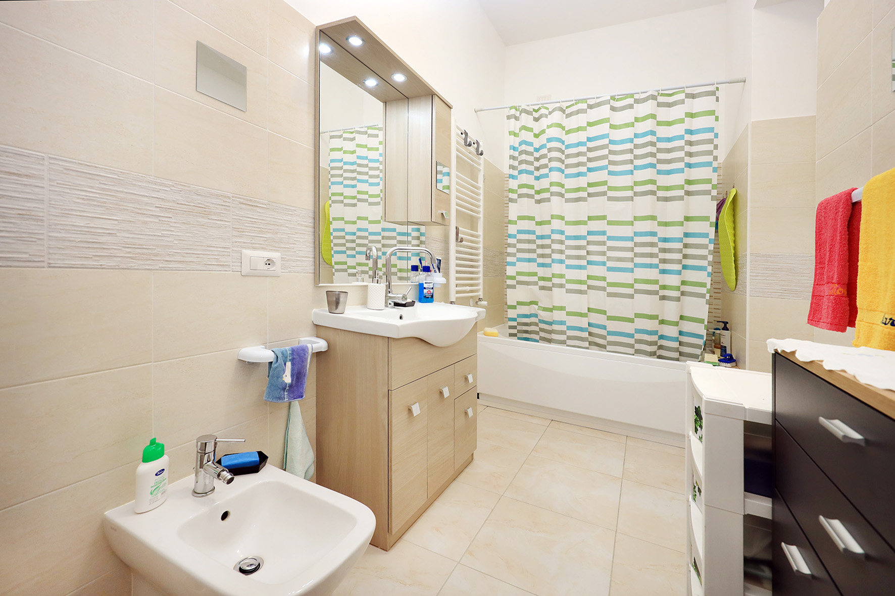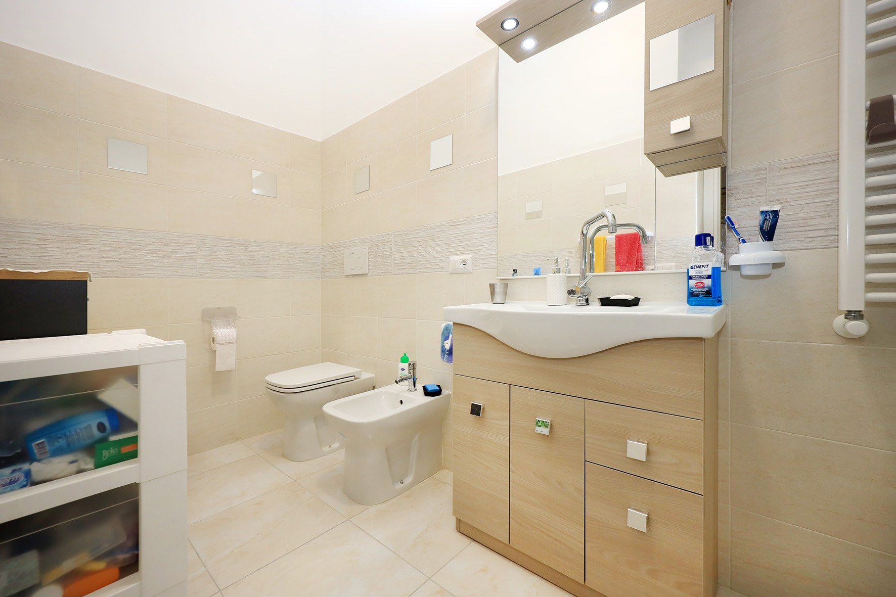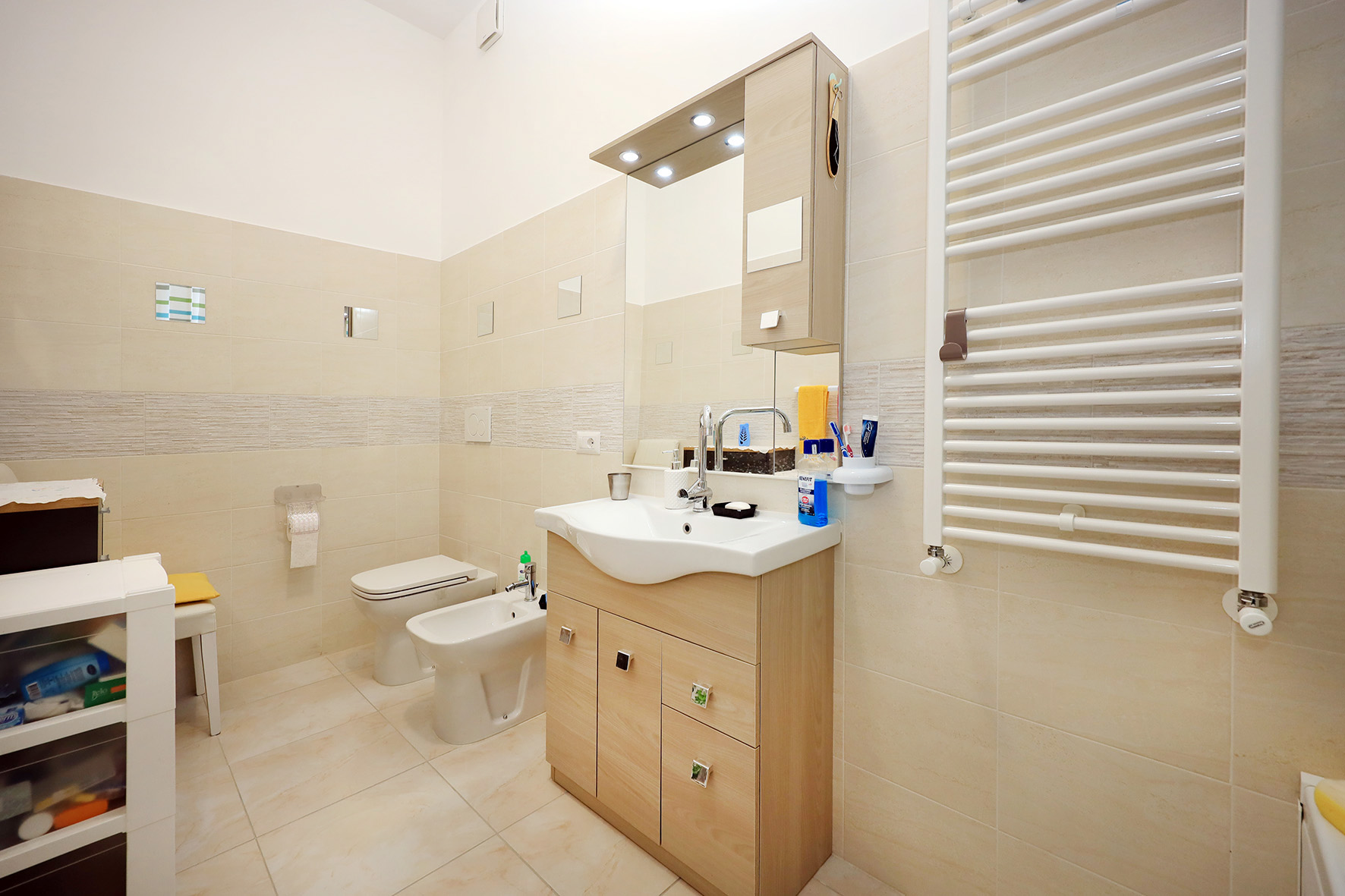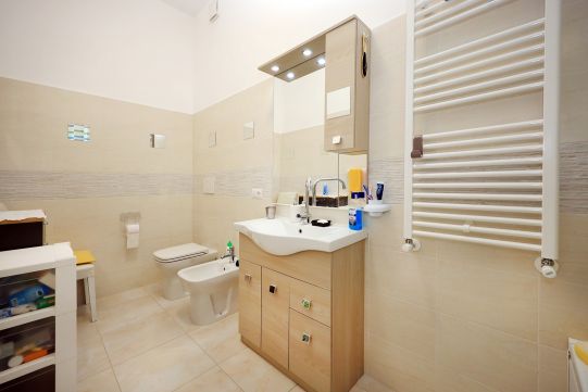 Pareti rifinite in tinta. Impianto di riscaldamento autonomo. Piastre radianti in alluminio. Impianto elettrico sfilabile provvisto di dichiarazione di conformità.