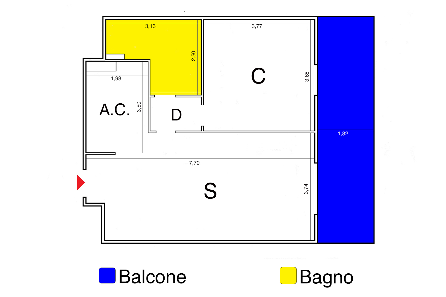 Esposizione sud-ovest, tutta esterna, molto luminosa. Altezza pavimento/soffitto circa 270 centimetri.