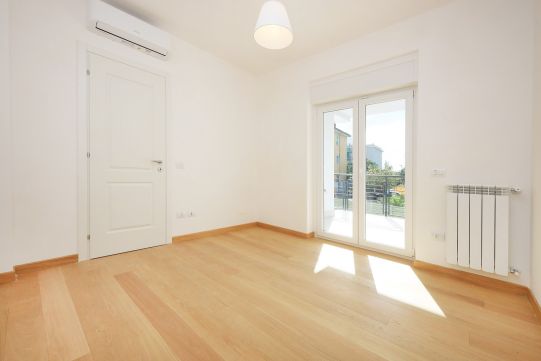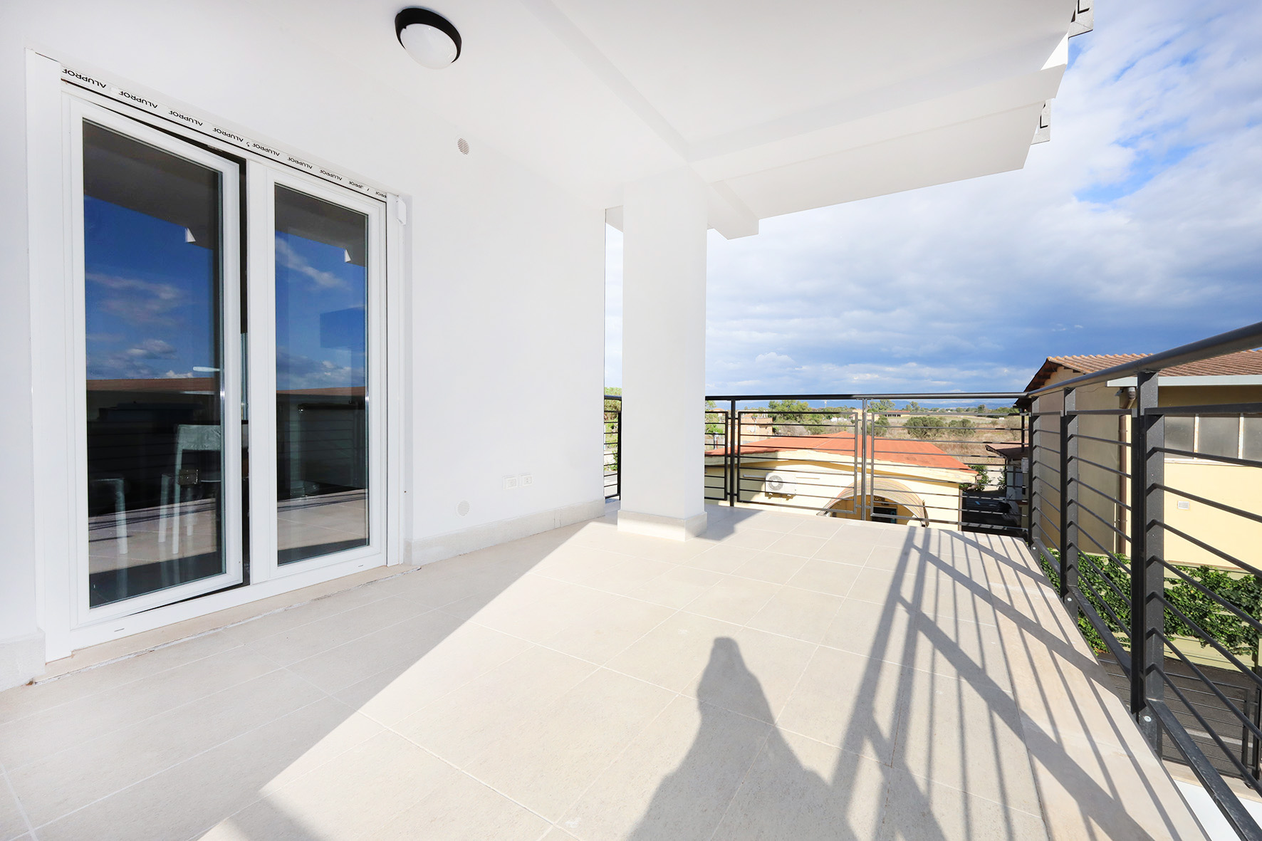 Portoncino d'ingresso blindato. Videocitofono. Impianto di allarme. Le porte interne, tamburate, tutte a battente, sono di colore bianco, con doppia bugnatura. Le finestre e porte finestre con doppi vetri, sono in PVC rigido ad elevata resistenza, provvisti di avvolgibili motorizzati.