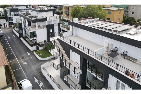 Sul lastrico dell'edificio, sono presenti i pannelli solari ed i pannelli fotovoltaici; i primi pannelli, di supporto per le caldaie di riscaldamento autonomo, consentono un interessante risparmio energetico per la proprietà; i secondi, permettono di abbattere i costi di energia elettrica dei servizi comuni della palazzina: quest'ultimi da attivare.