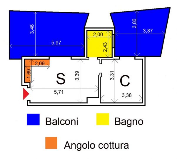 interna appartamento, comprensiva dei tramezzi: circa 37 mq.