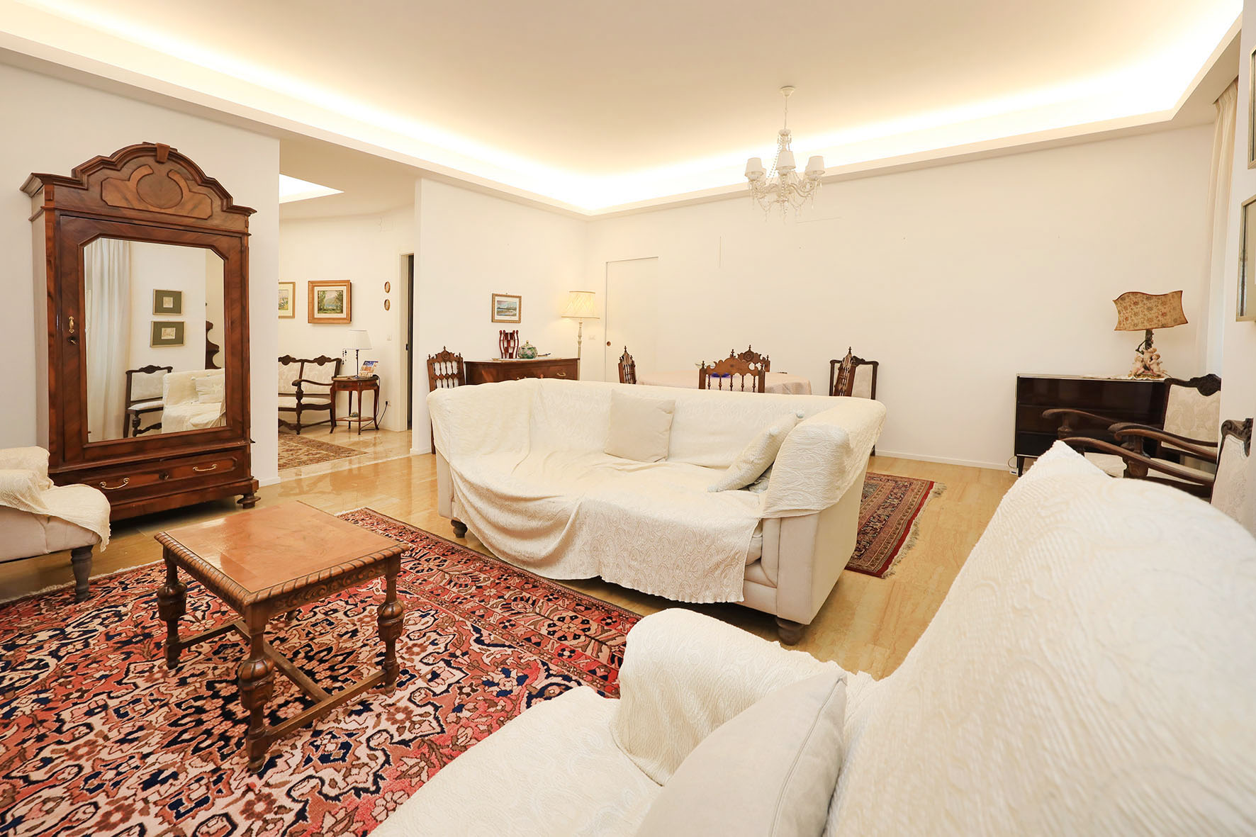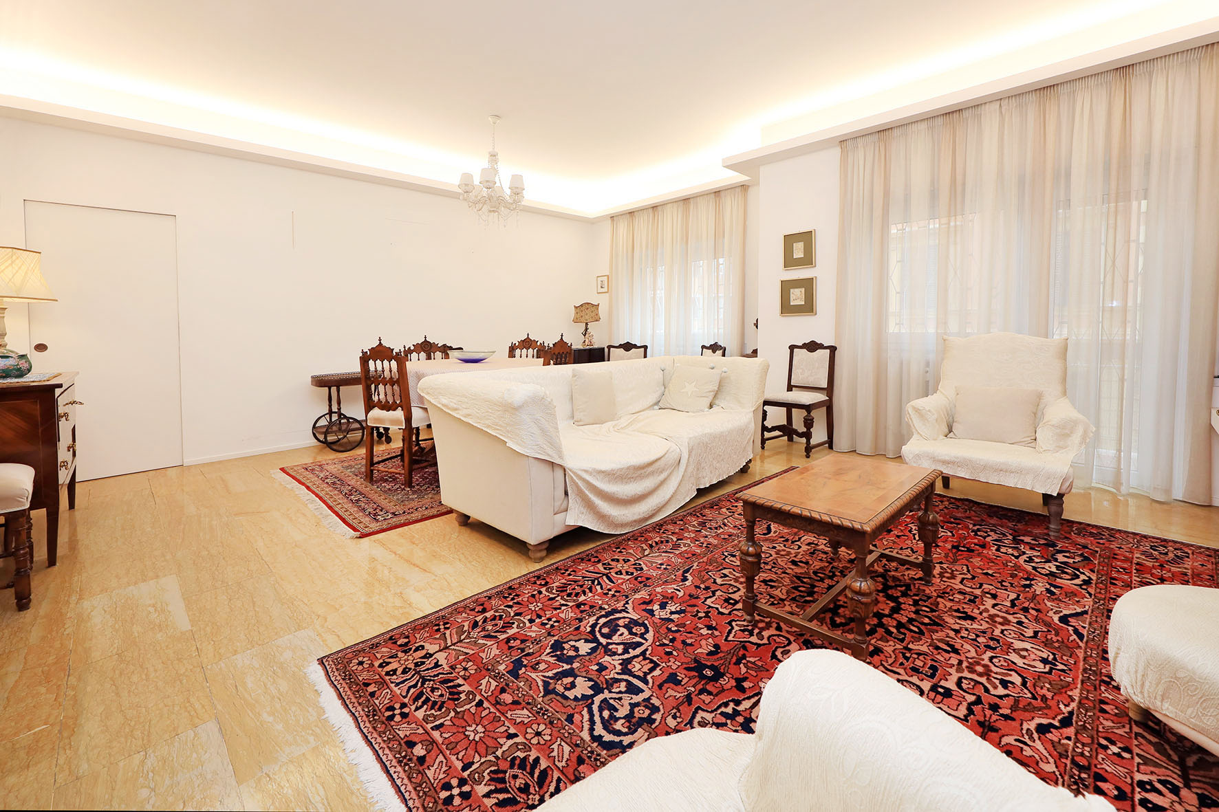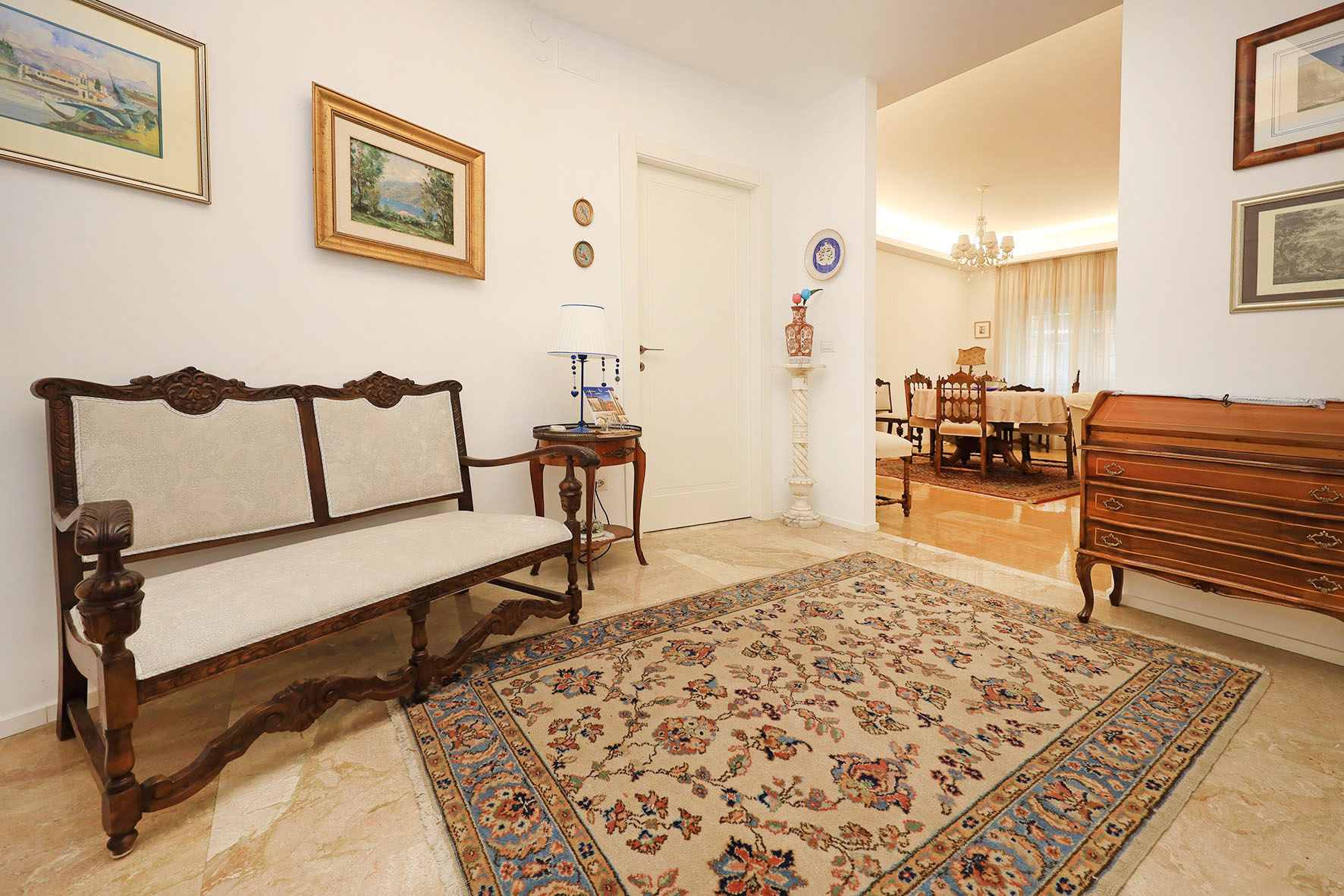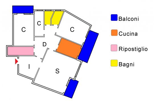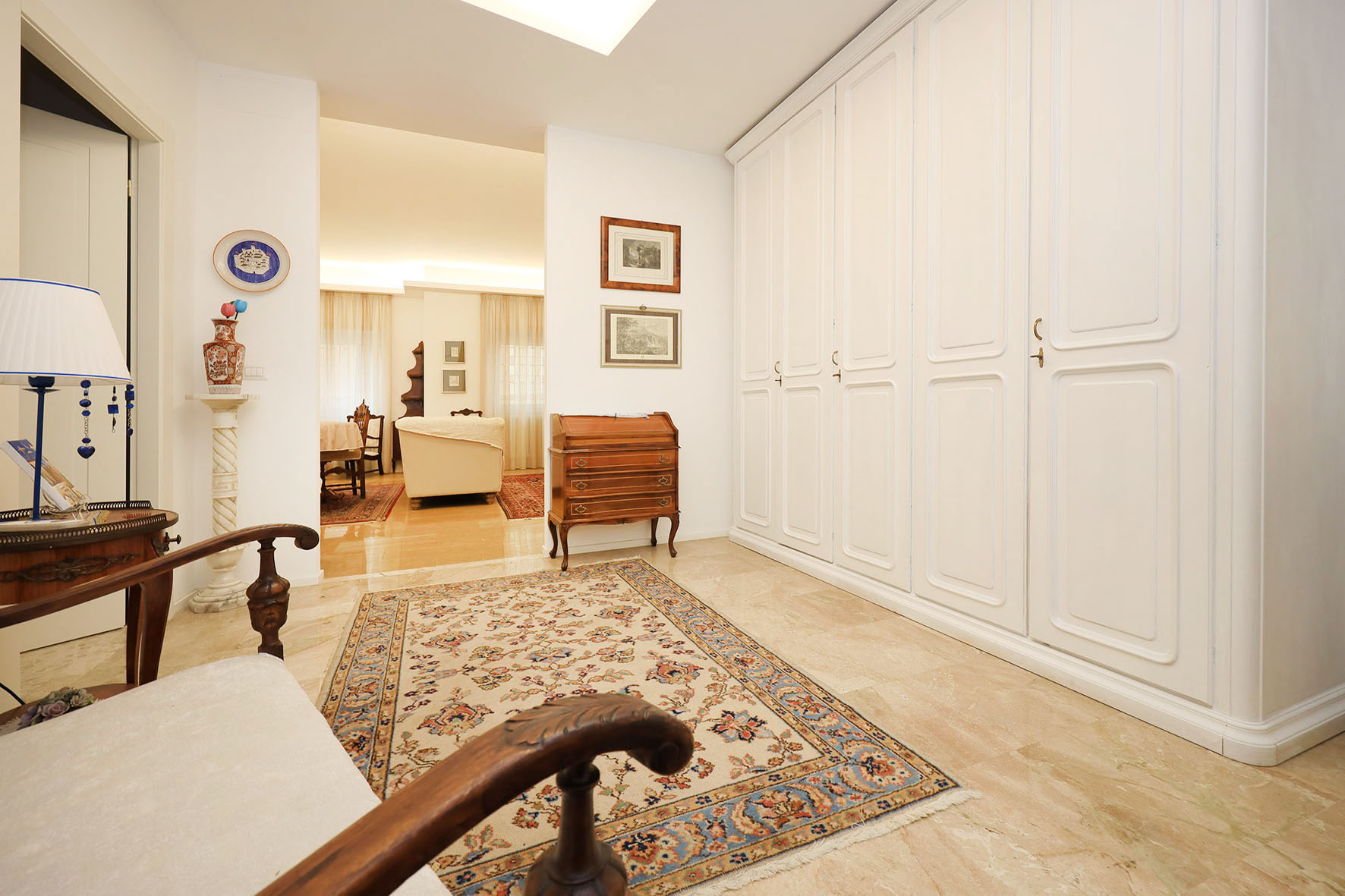 La proprietà si compone di un ampio ingresso, un salone doppio di rappresentanza, due camere da letto matrimoniali, cameretta, ripostiglio due bagni con finestra e tre balconi.