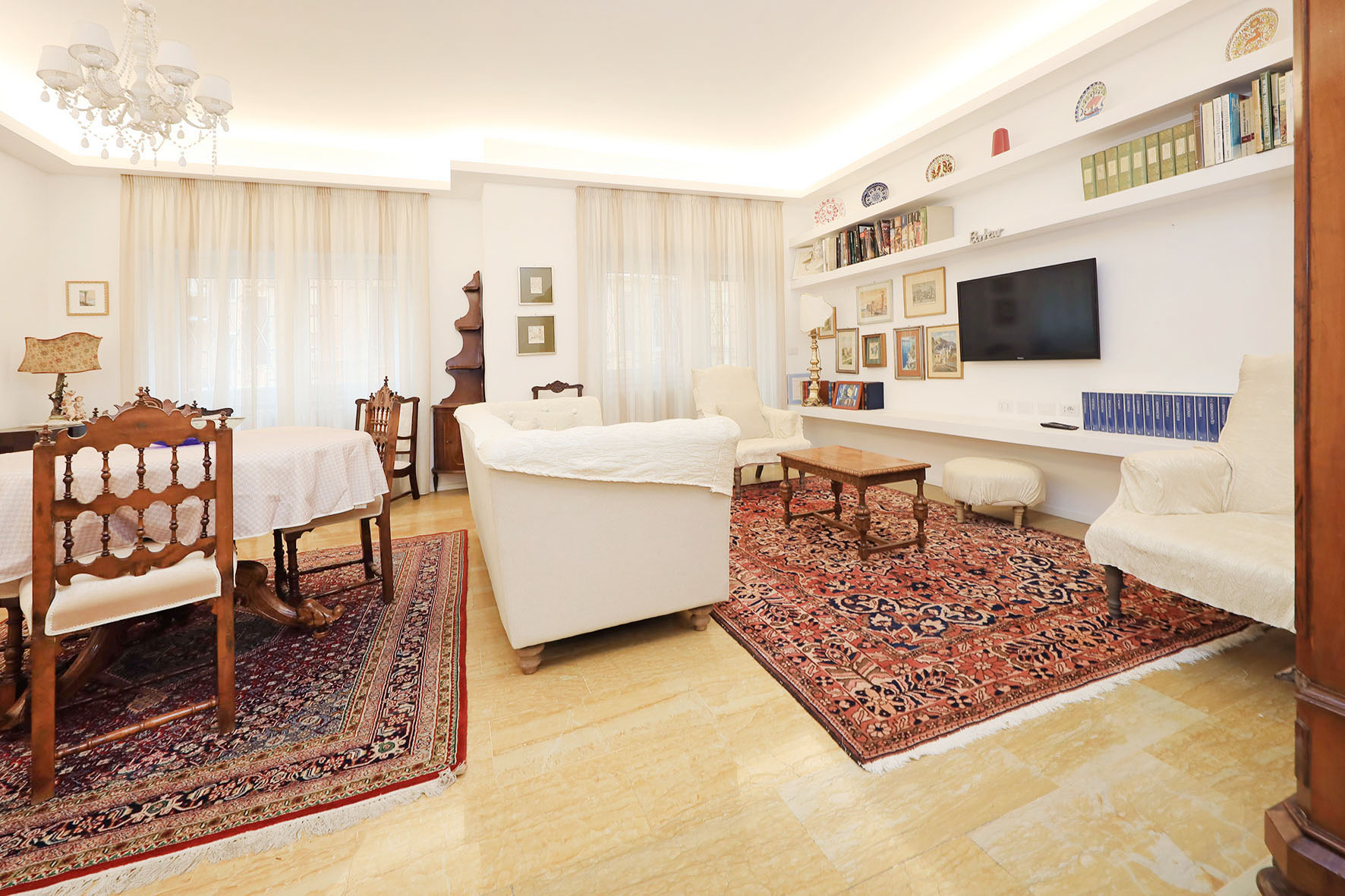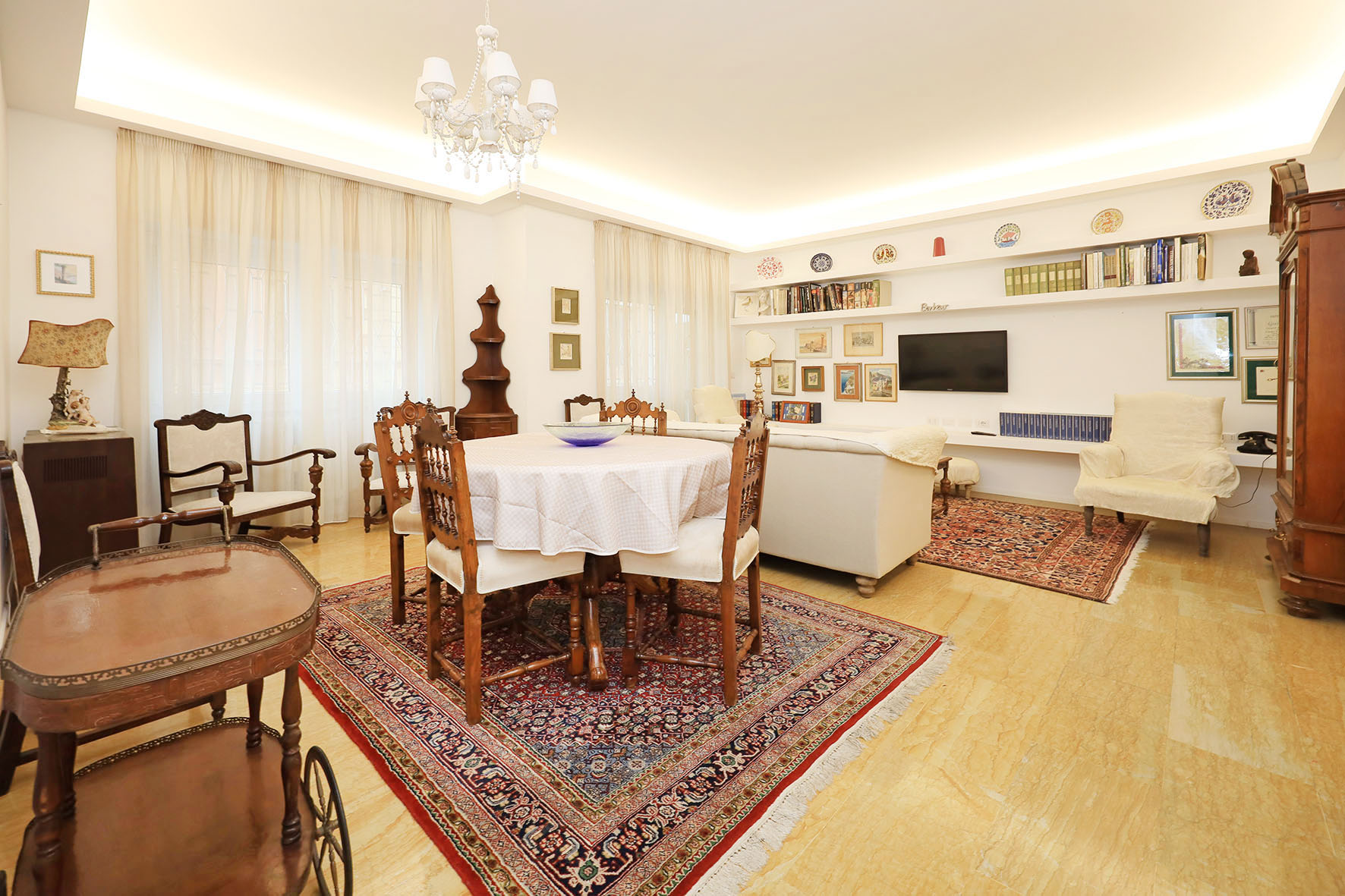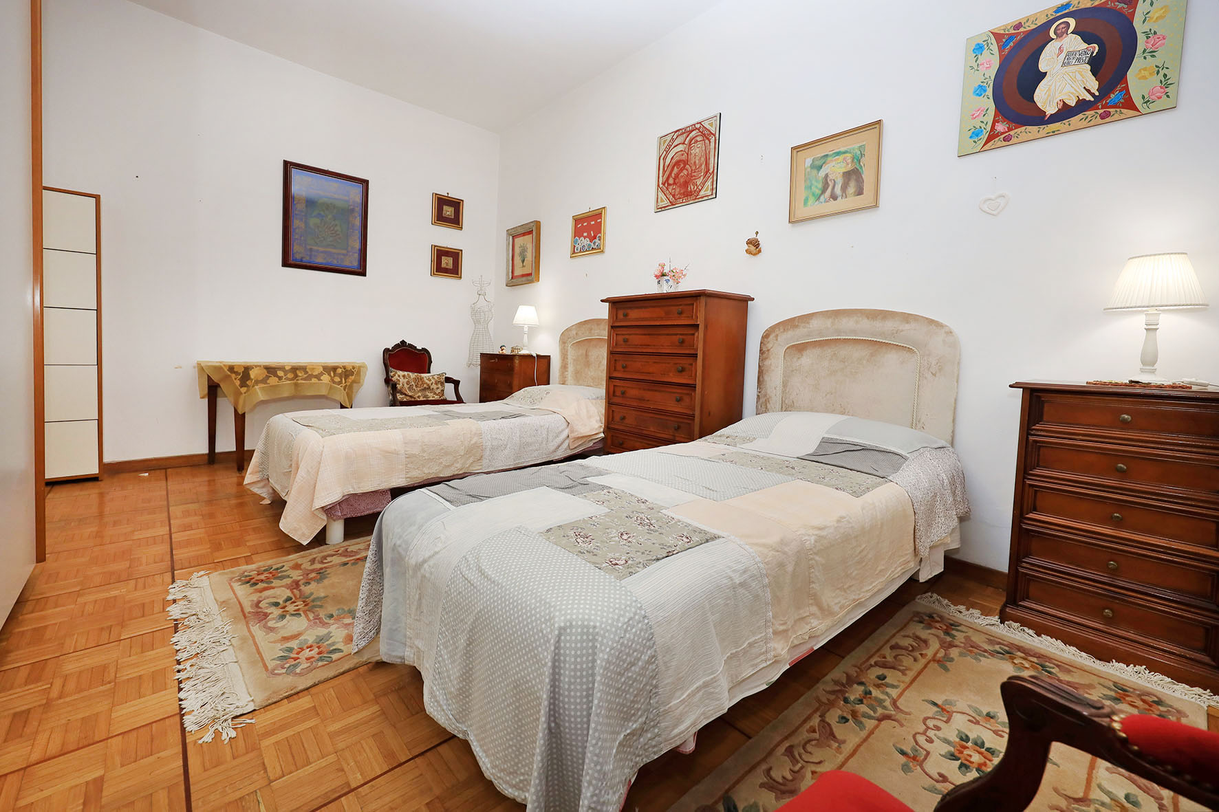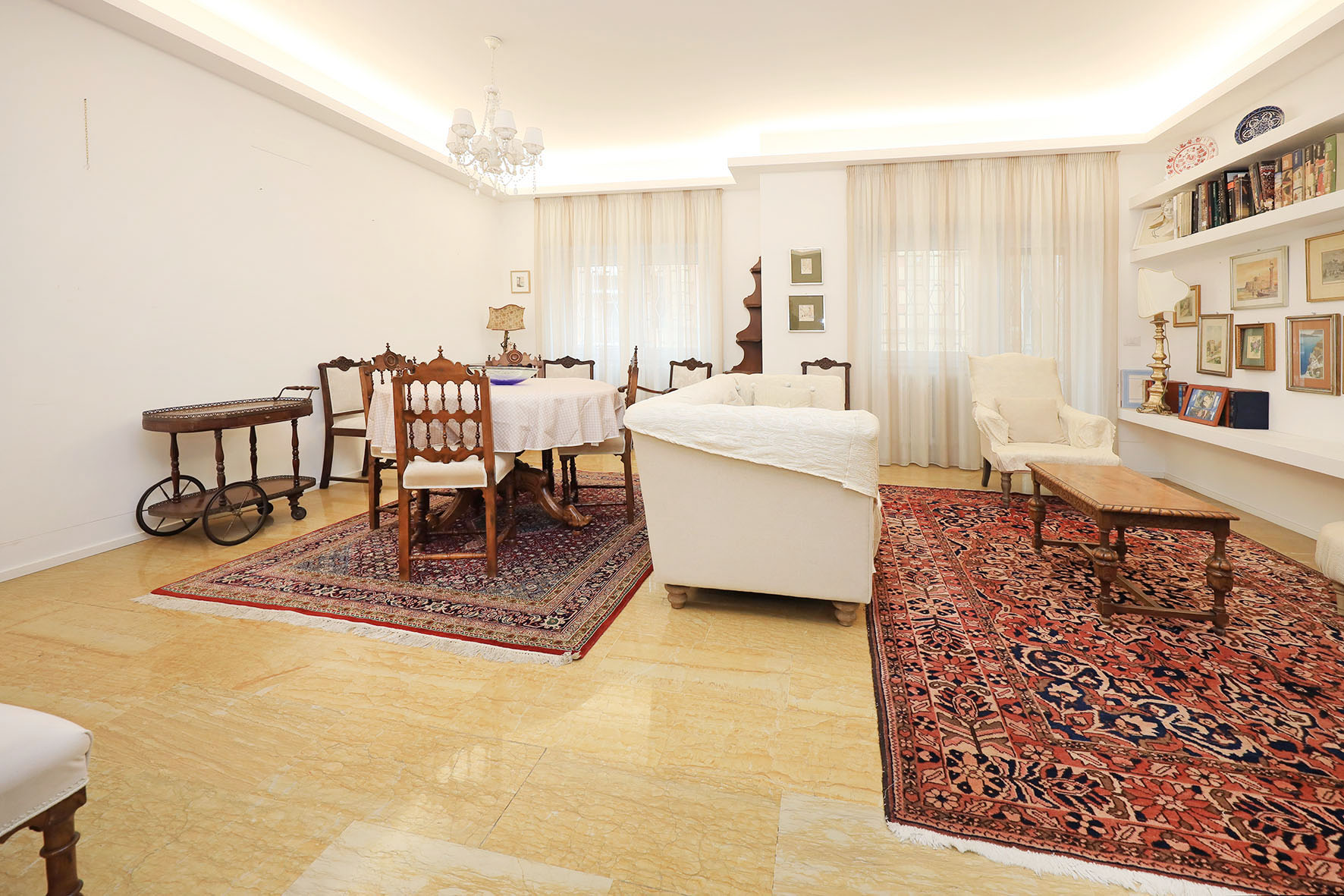 La proprietà si compone di un ampio ingresso, un salone doppio di rappresentanza, due camere da letto matrimoniali, cameretta, ripostiglio due bagni con finestra e tre balconi.