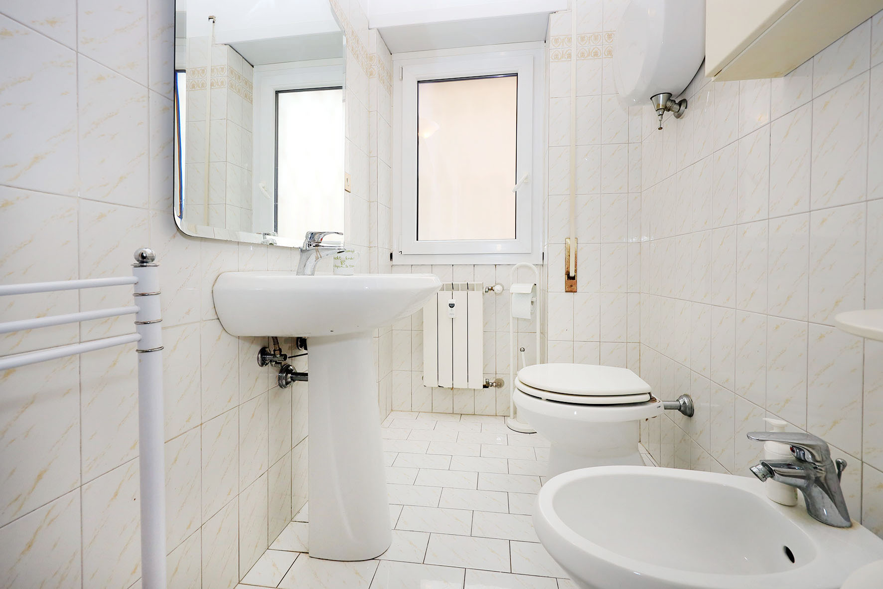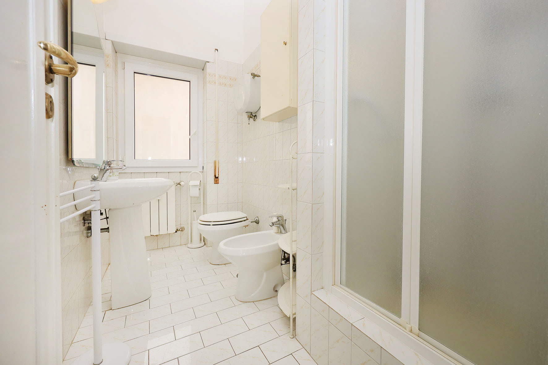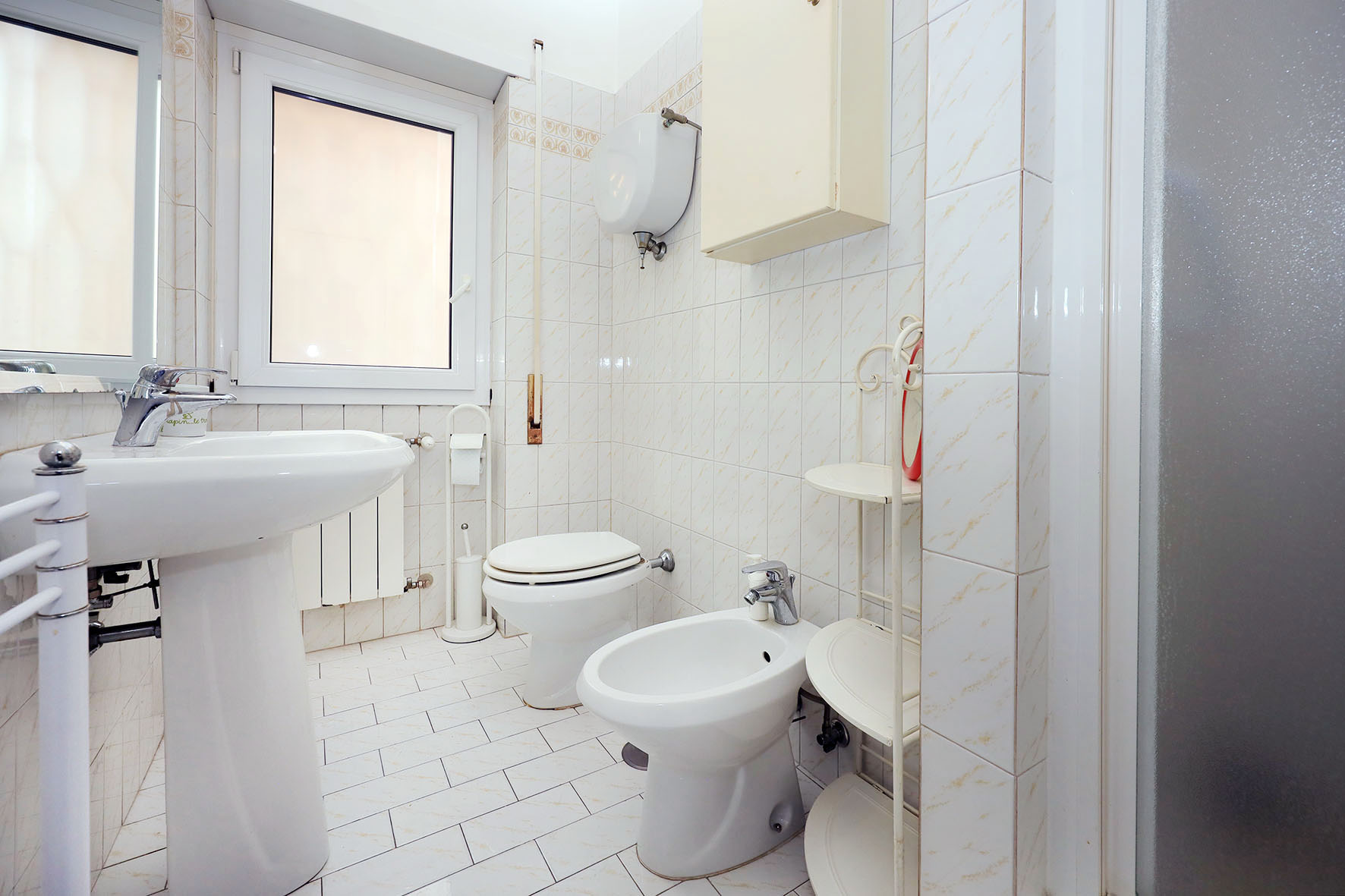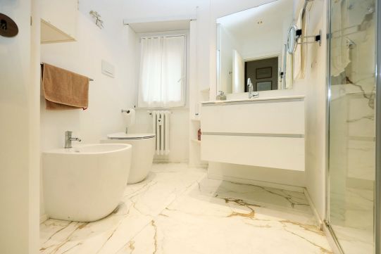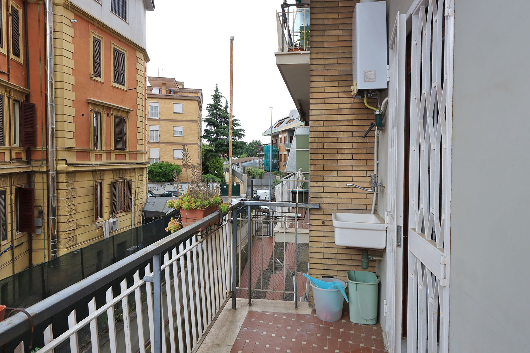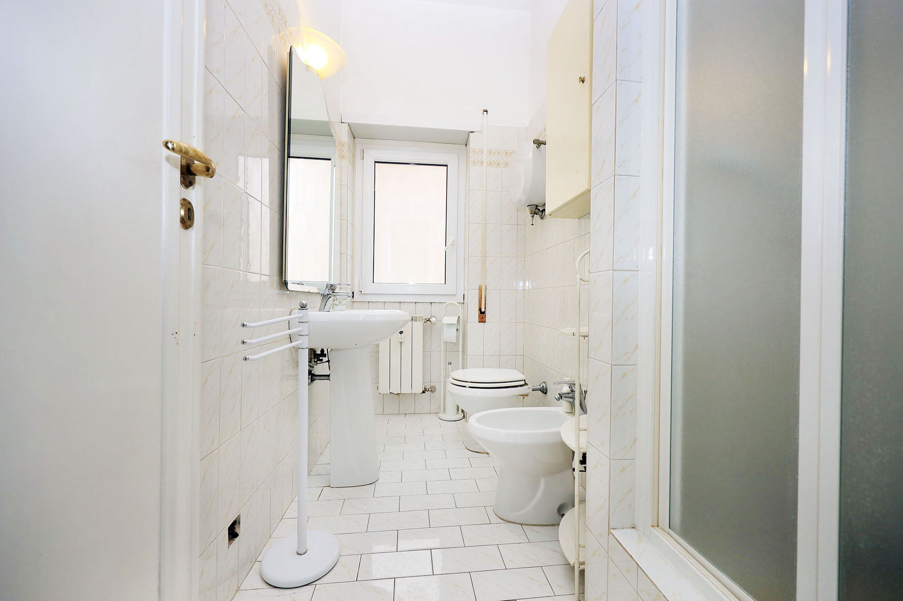 L’acqua calda viene prodotta da una caldaia autonoma a gas posta sul balcone adiacente la cucina. L’impianto di riscaldamento è centralizzato, piastre radianti prevalentemente in ghisa, alcune in alluminio laccato bianco. Impianto elettrico parzialmente ristrutturato. Le pareti di casa sono rifinite in tinta bianca.