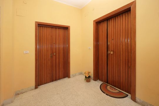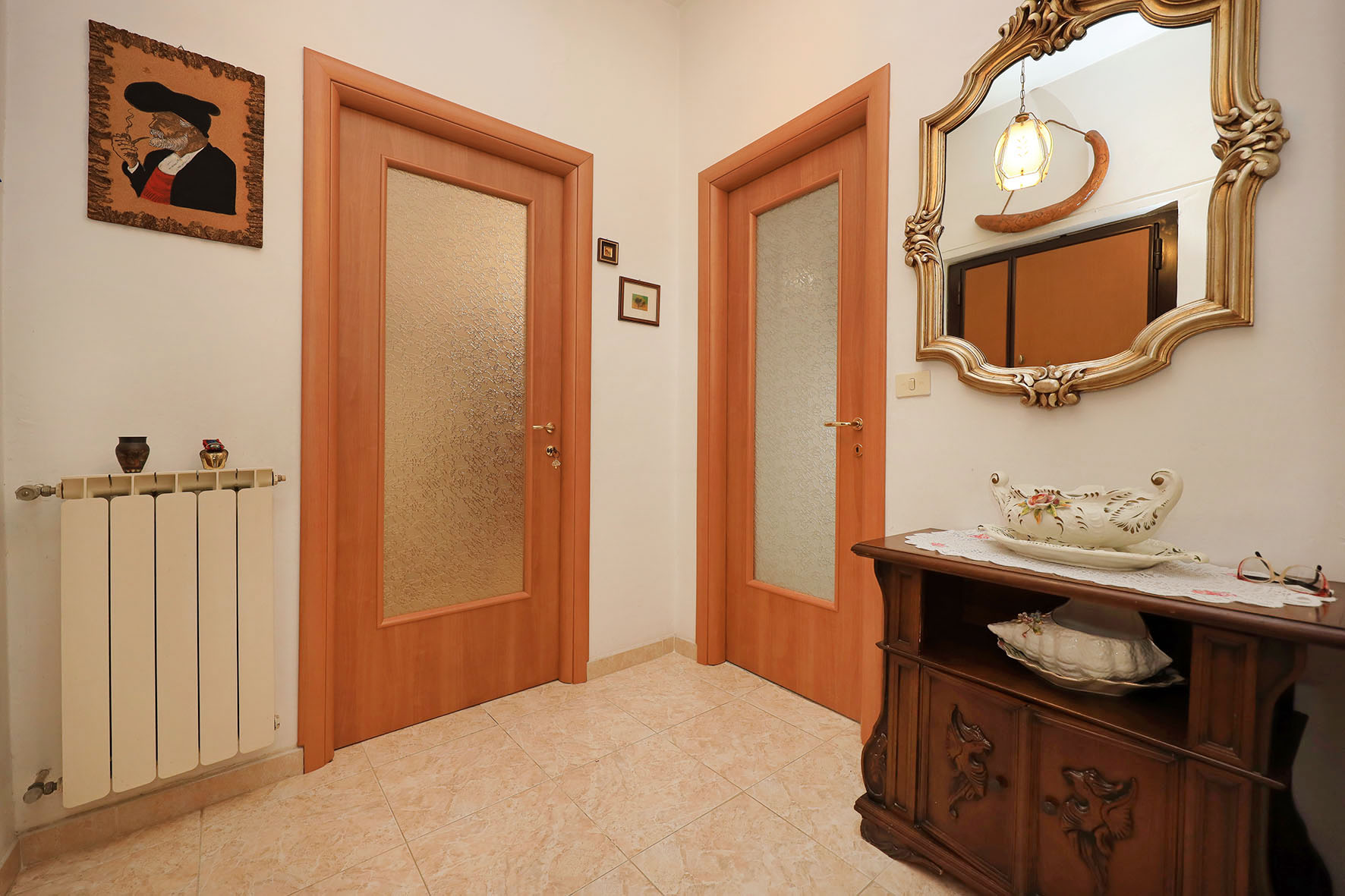 Le porte interne originarie sono state sostituite e sono lisce, di colore ciliegio. Le due porte del soggiorno e della cucina hanno un inserto in vetro. Gli infissi esterni sono in alluminio nel soggiorno ed in camera da letto matrimoniale; diversamente in cucina, bagno ed altra camera sono in PVC.