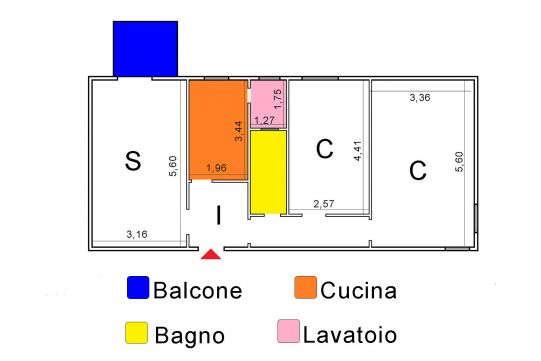 - a sud - est soggiorno, cucina, lavatoio, bagno ed una camera;