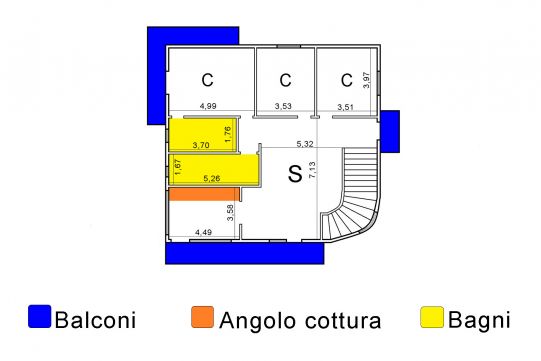 Portoncino d’ingresso, scala di accesso al primo piano rifinita con marmo. Internamente la casa è stata ristrutturata nel corso degli anni. Tuttavia la proprietà necessita di interventi di manutenzione ordinaria nei servizi, mentre i pavimenti dei tre balconcini devono essere ristrutturati.