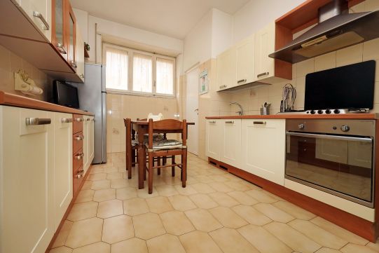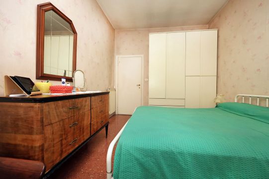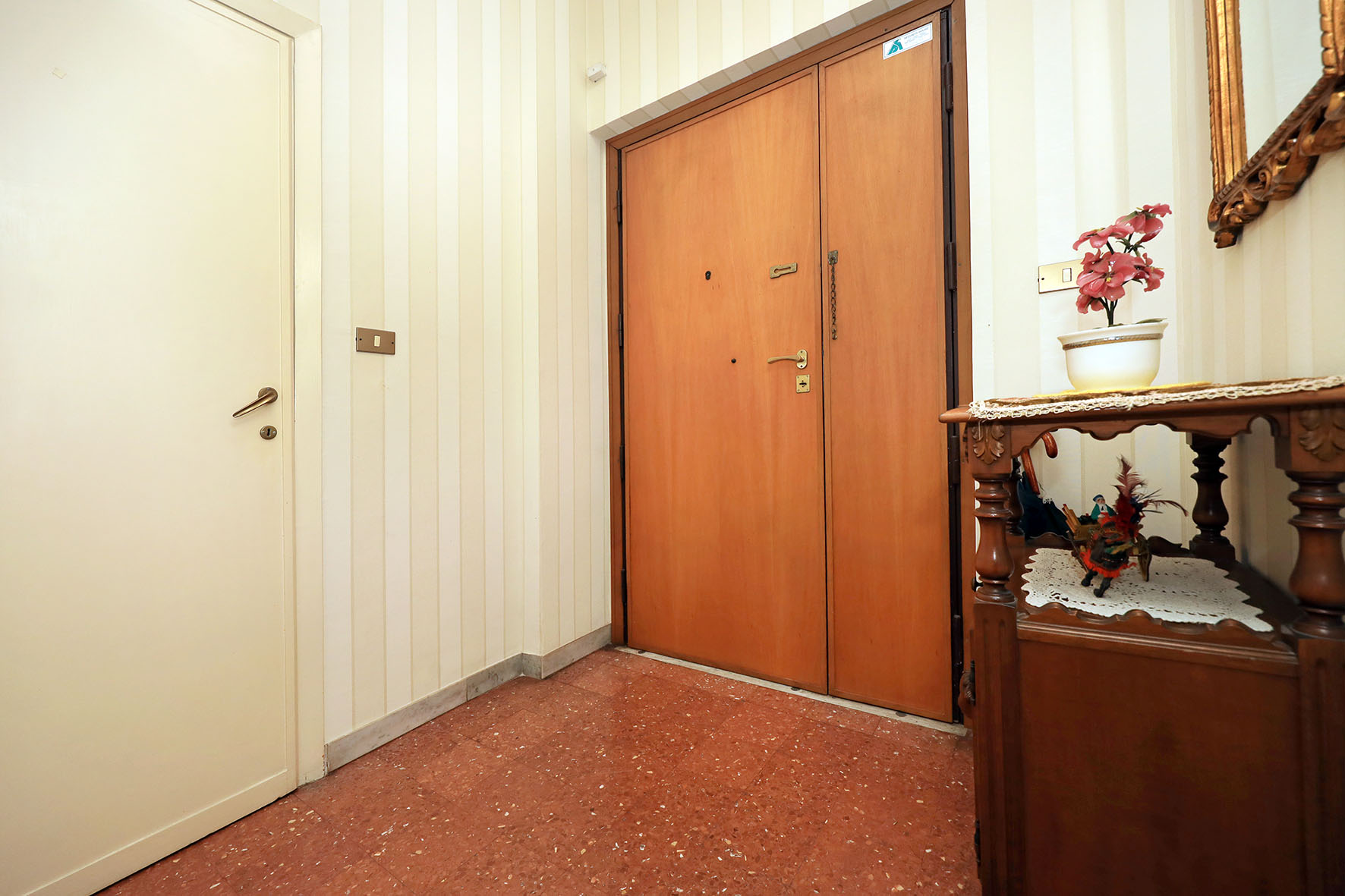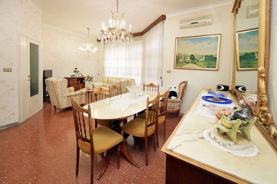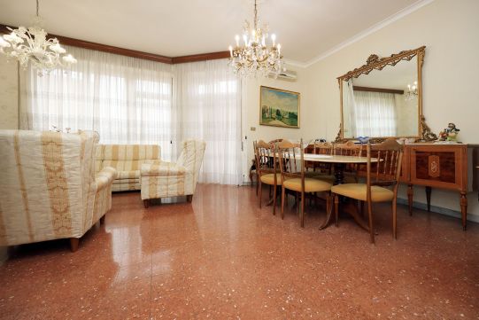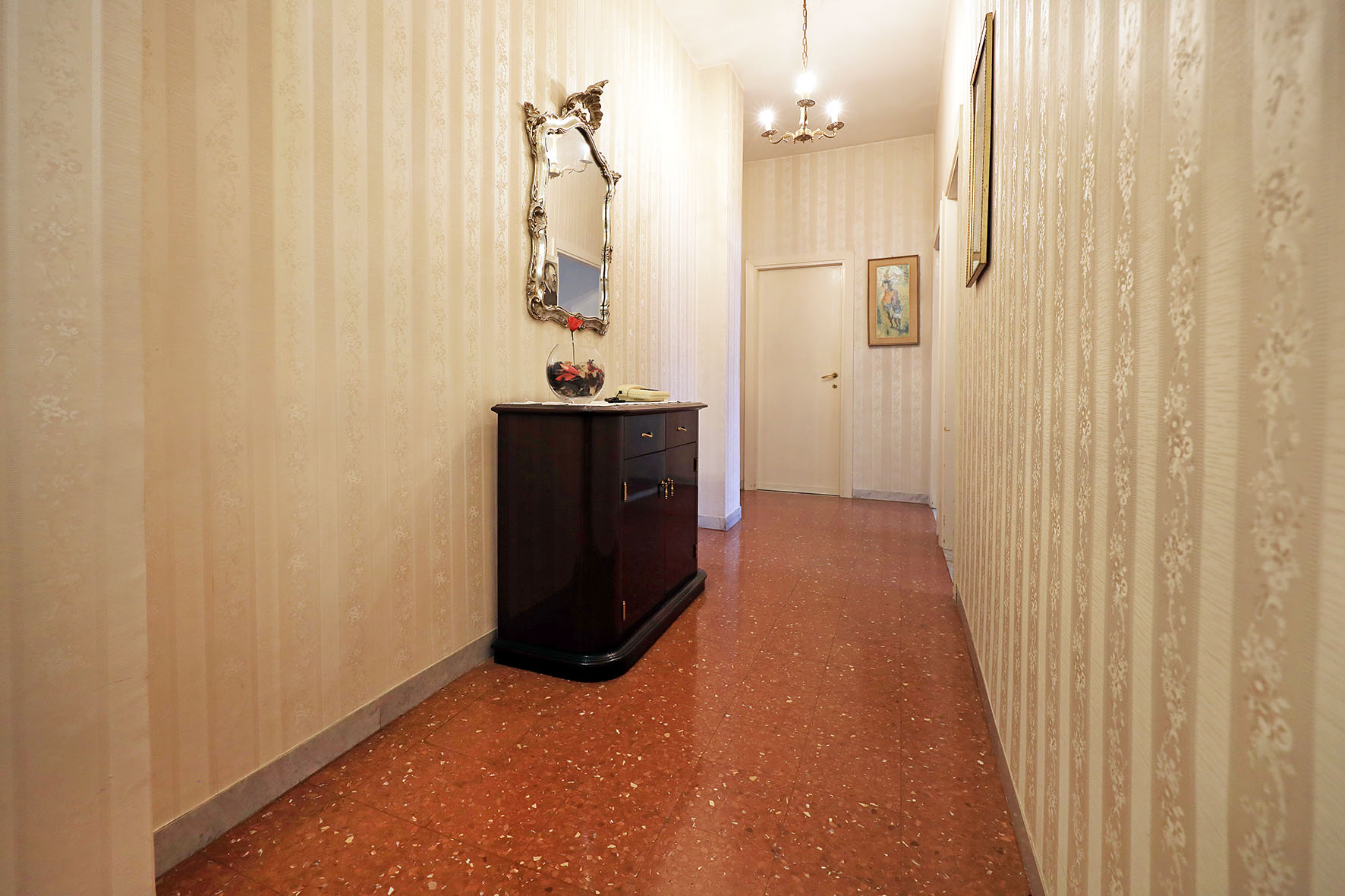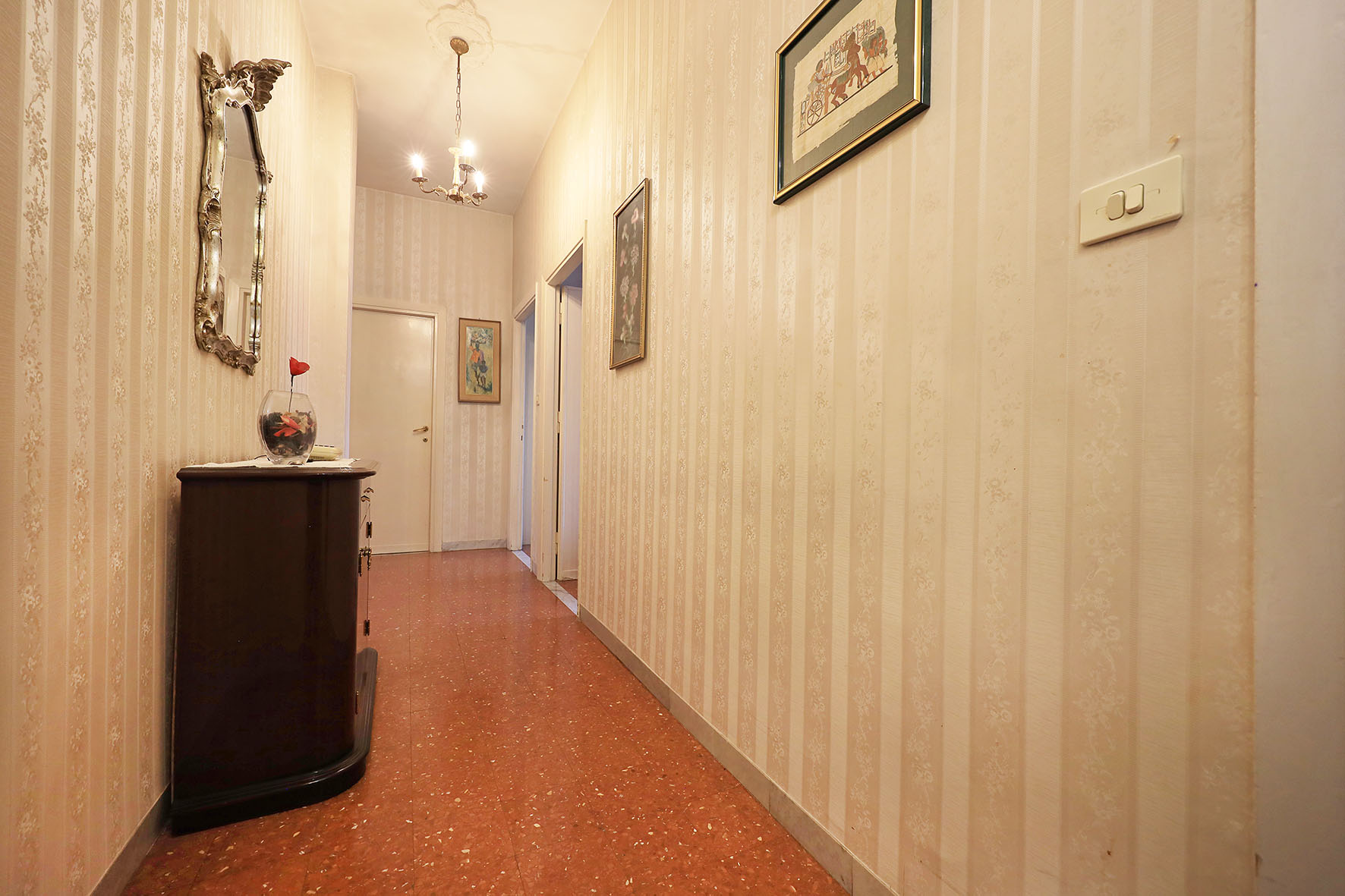 L’appartamento si compone di ingresso, ampio salone, cucina abitabile, disimpegno notte, tre camere da letto, bagno, ripostiglio, lavatoio e balcone abitabile, al quale si accede dal salone e dalla camera matrimoniale. Al piano quinto, è presente una soffitta di proprietà.