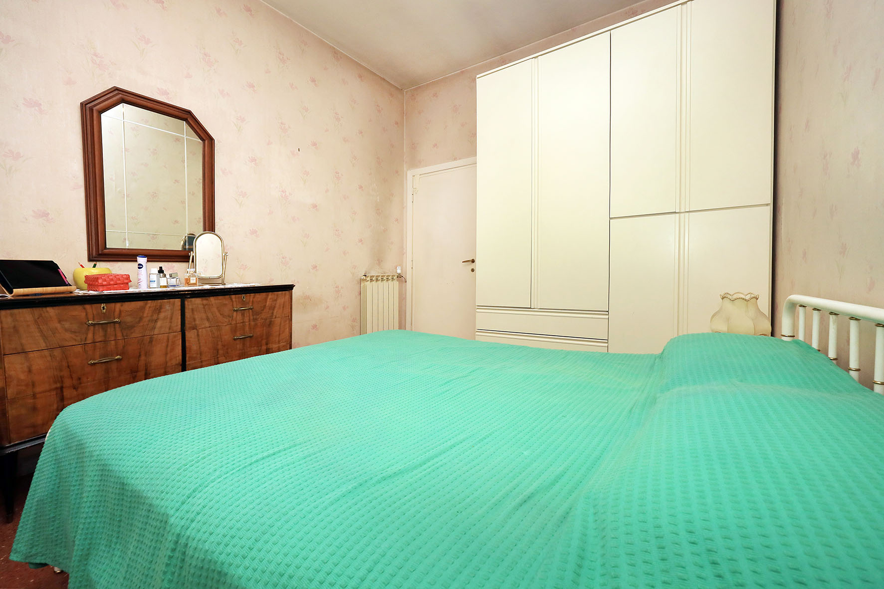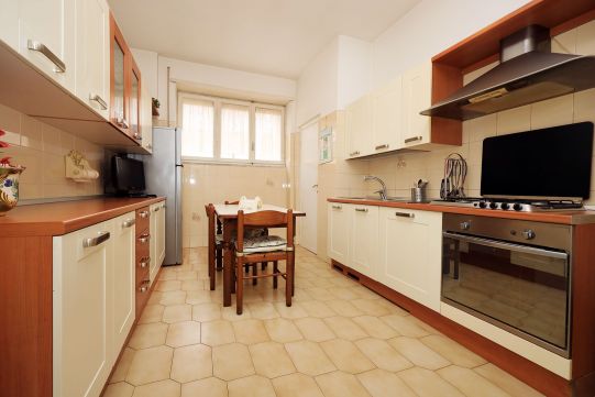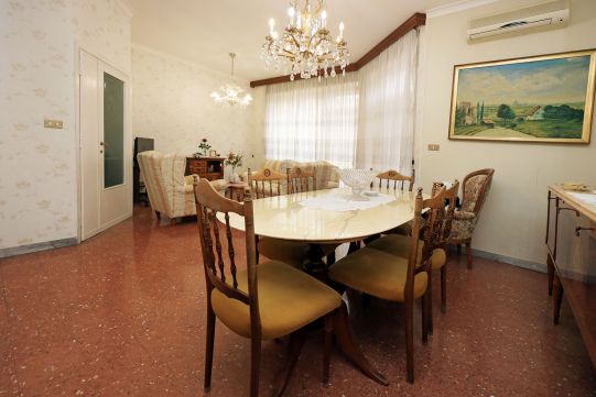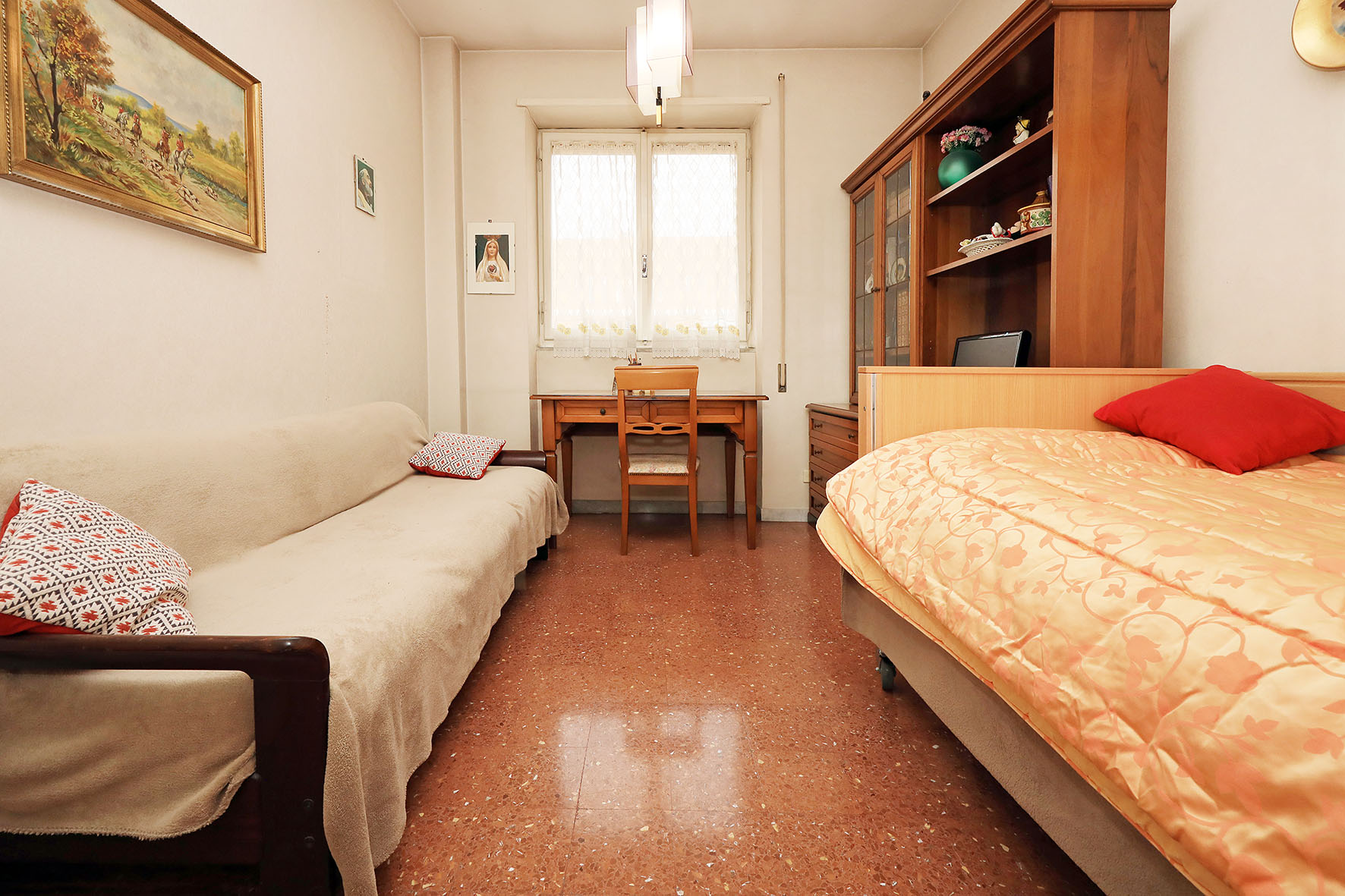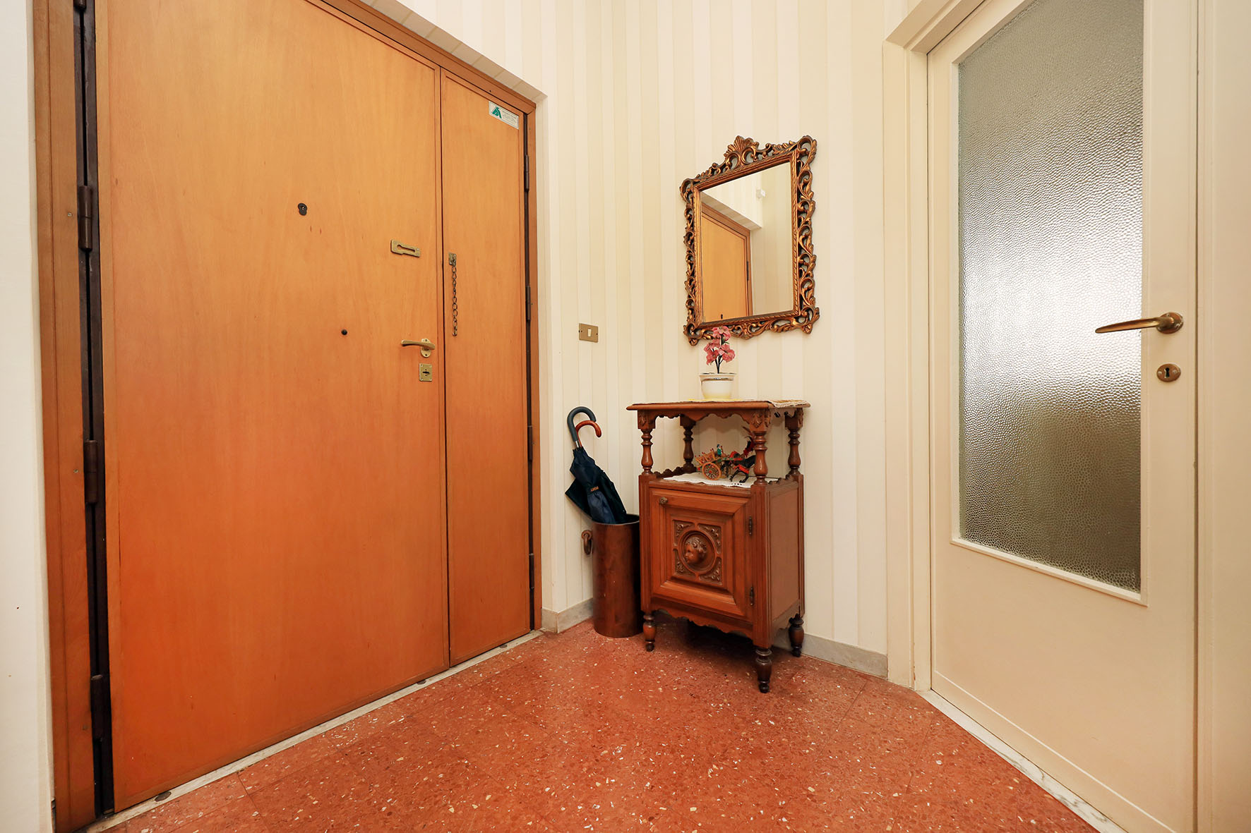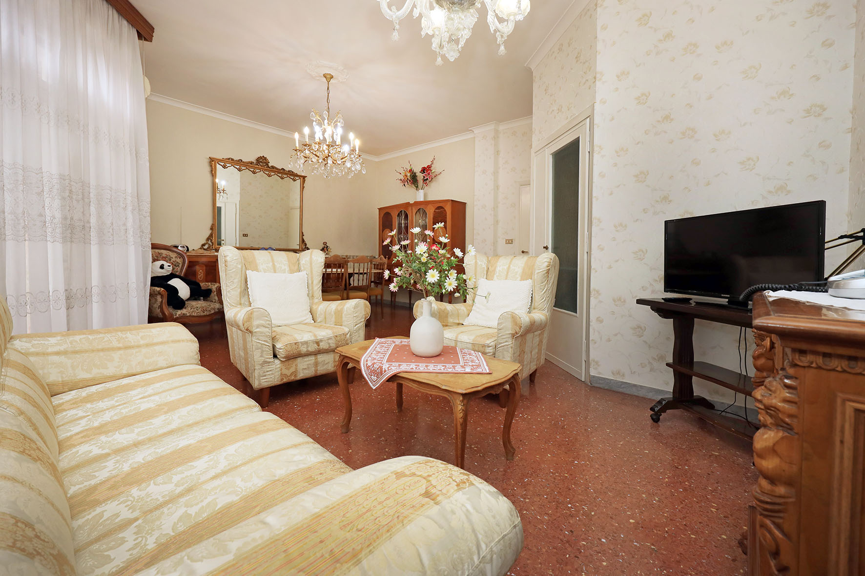 L’appartamento si compone di ingresso, ampio salone, cucina abitabile, disimpegno notte, tre camere da letto, bagno, ripostiglio, lavatoio e balcone abitabile, al quale si accede dal salone e dalla camera matrimoniale. Al piano quinto, è presente una soffitta di proprietà.