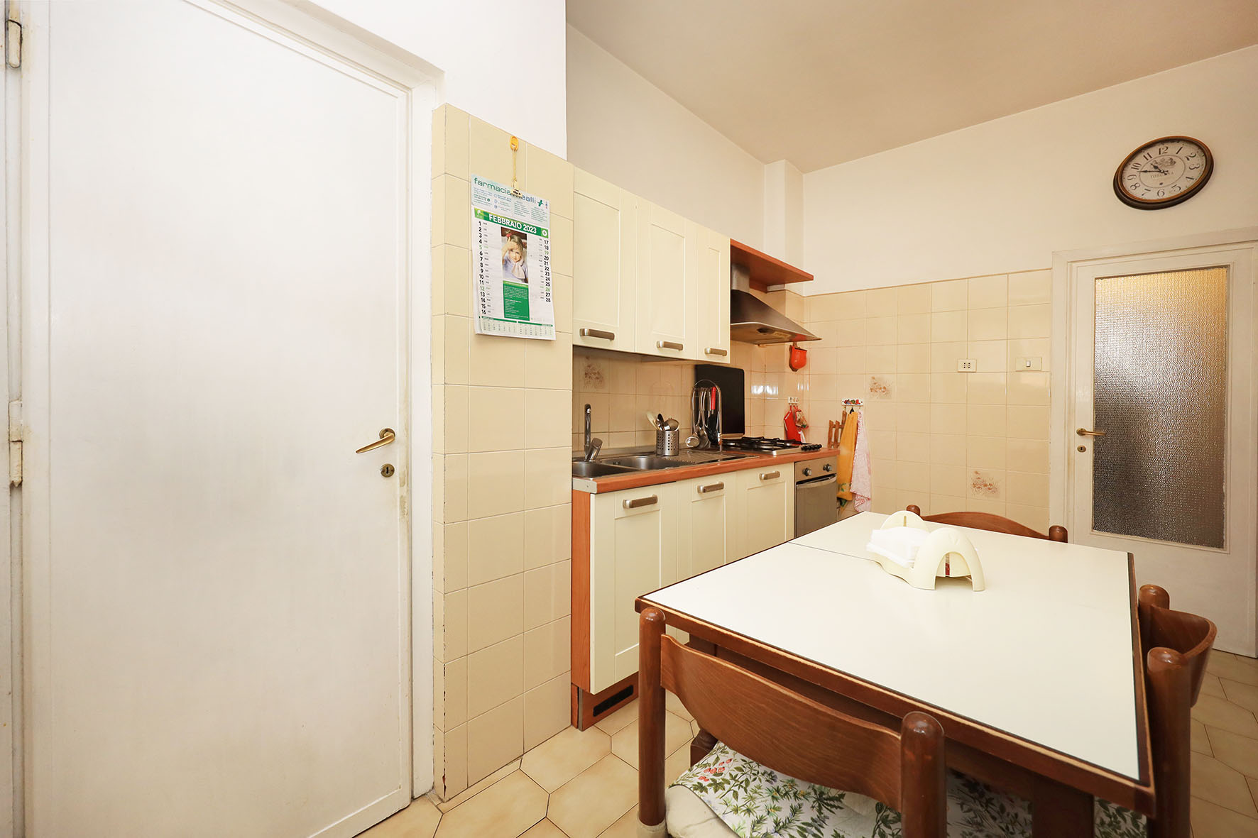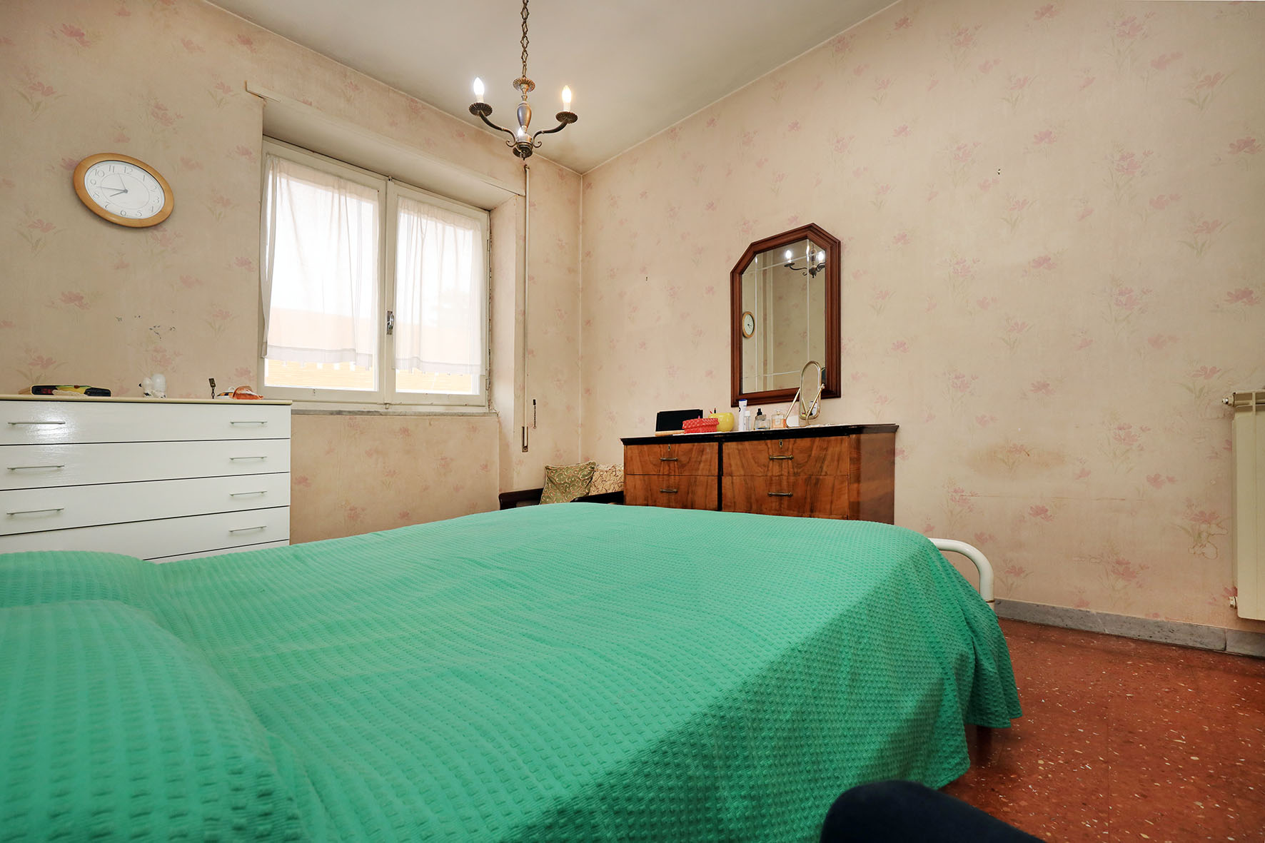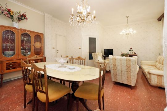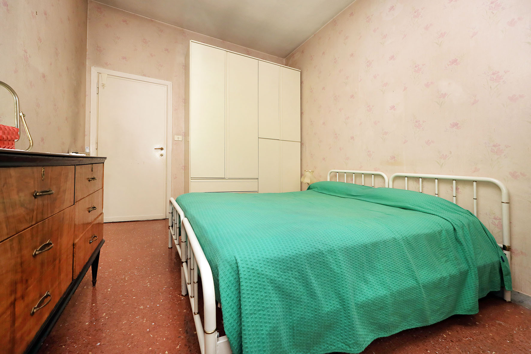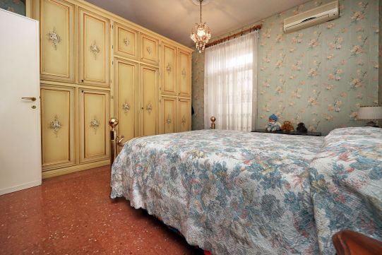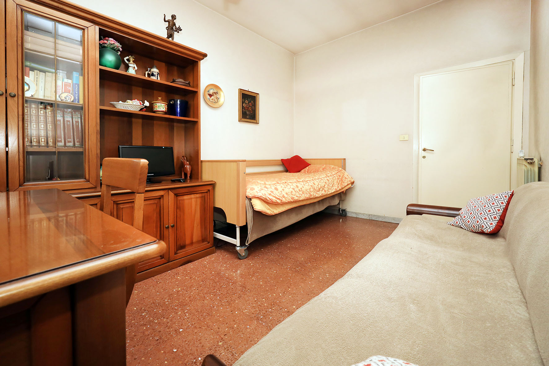 L’appartamento si compone di ingresso, ampio salone, cucina abitabile, disimpegno notte, tre camere da letto, bagno, ripostiglio, lavatoio e balcone abitabile, al quale si accede dal salone e dalla camera matrimoniale. Al piano quinto, è presente una soffitta di proprietà.