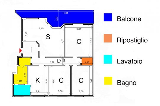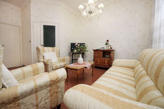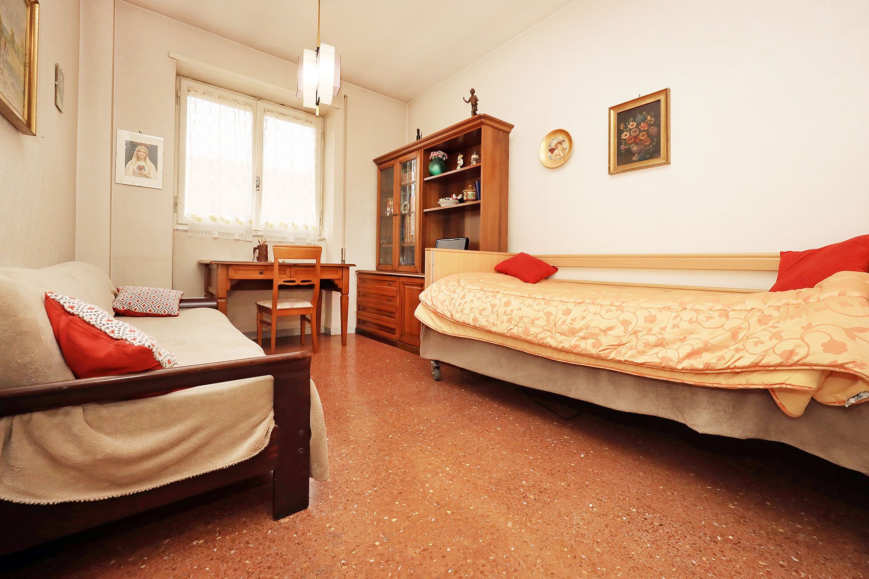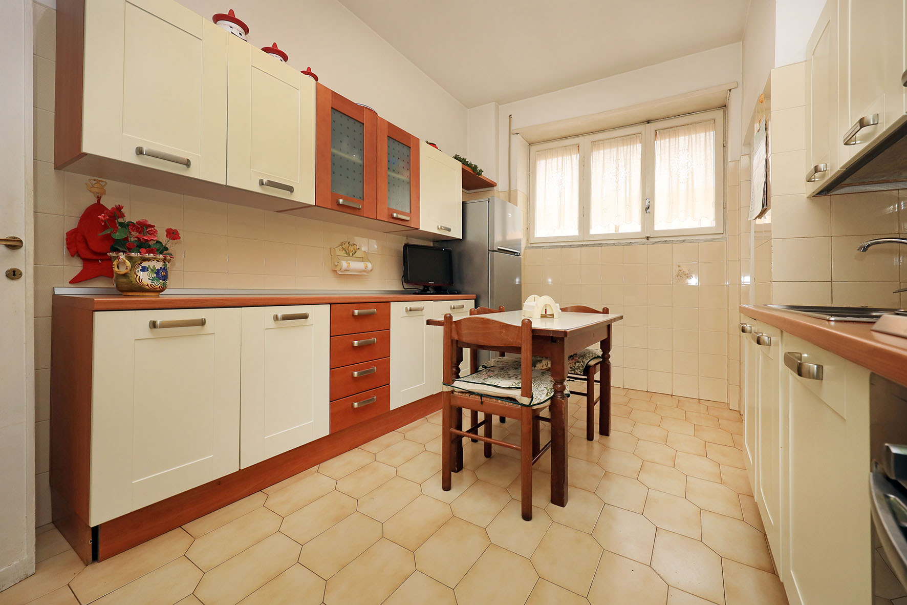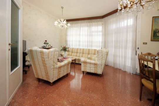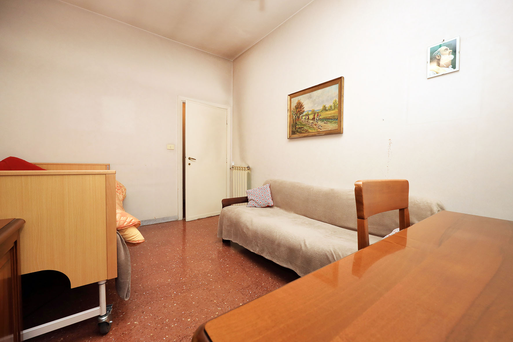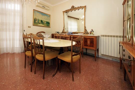 L’appartamento si compone di ingresso, ampio salone, cucina abitabile, disimpegno notte, tre camere da letto, bagno, ripostiglio, lavatoio e balcone abitabile, al quale si accede dal salone e dalla camera matrimoniale. Al piano quinto, è presente una soffitta di proprietà.