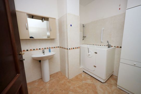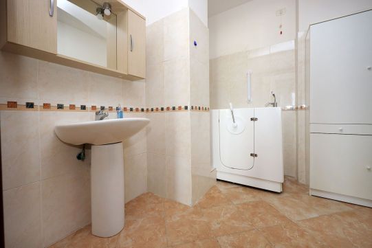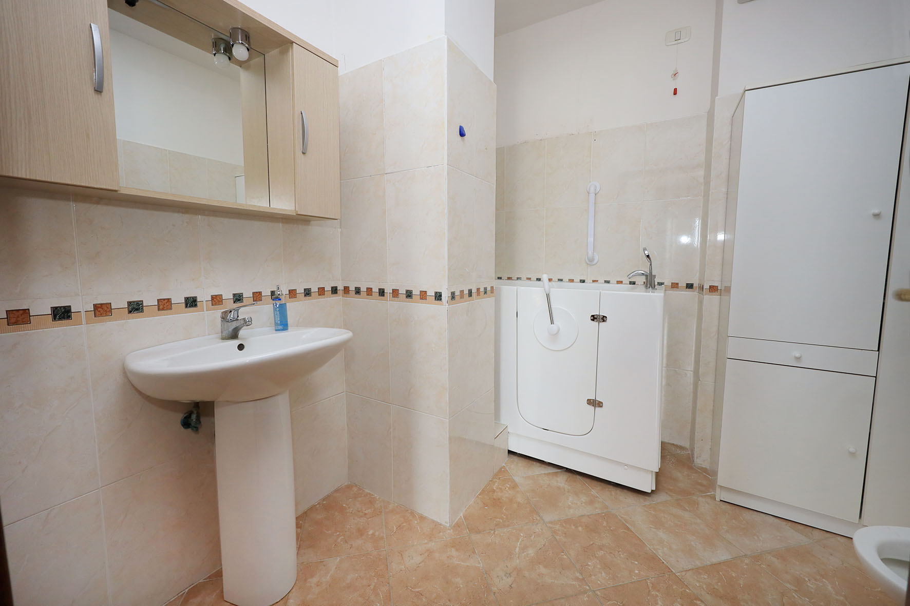 L’esterno del fabbricato si presenta in buone condizioni. Portoncino blindato. Impianto citofonico. Il fabbricato è provvisto di ascensore. infissi esterni in legno con doppio vetro, avvolgibili in PVC. Pavimentazione in monocottura montata a rombo, zoccolino in legno. Le pareti interne sono tutte rifinite con tinta lavabile. Porte interne tamburate di colore noce scuro, con doppia bugnatura. Bagno, senza finestra, con aeratore, completo di tutti i sanitari, rubinetteria miscelatori monocomando. Condizionatore nel salone. Riscaldamento autonomo, la caldaia produce anche acqua calda sanitaria, termosifoni in alluminio laccato bianco. Cronotermostato ambiente.