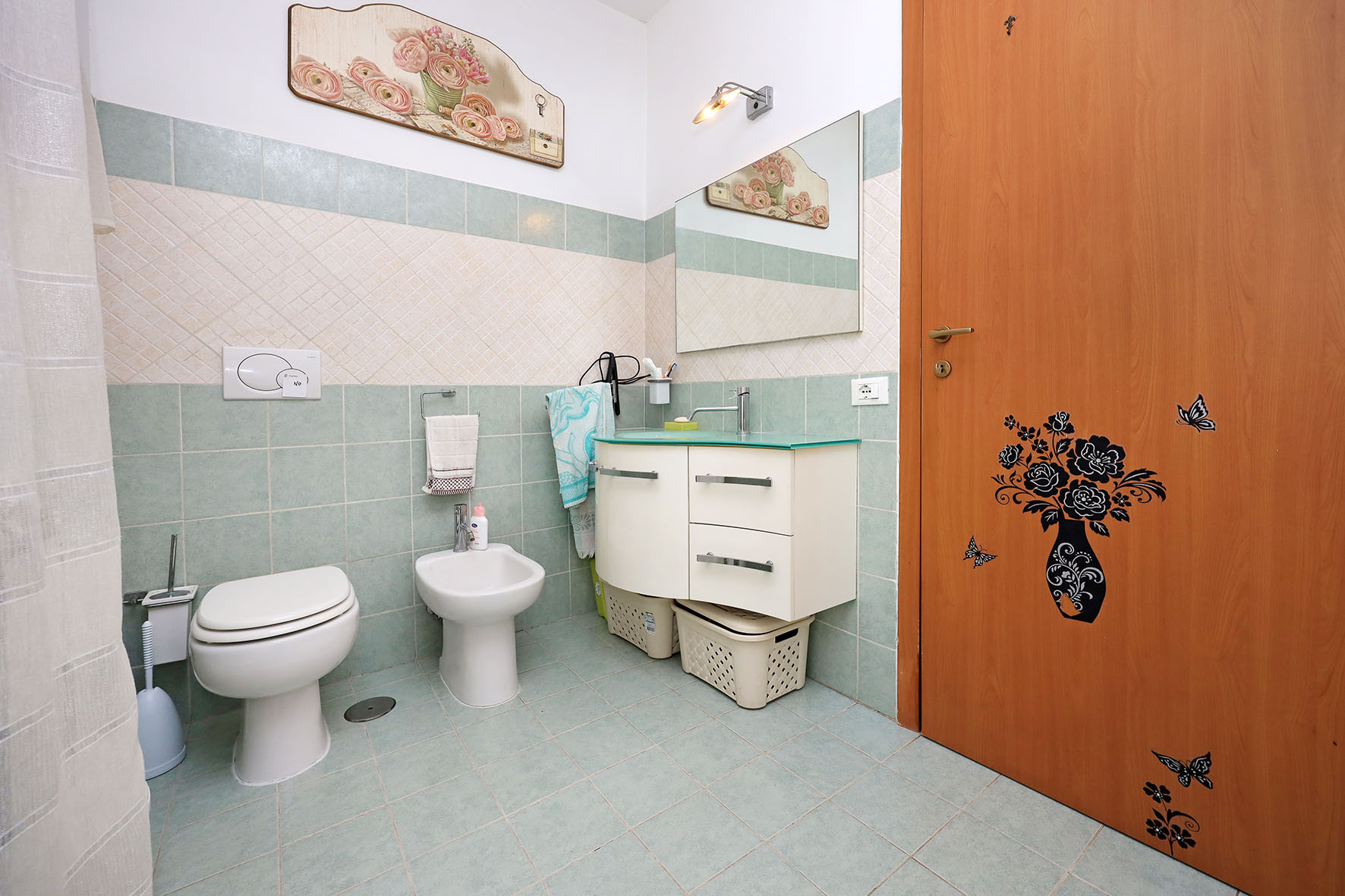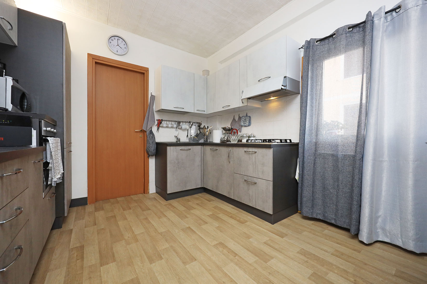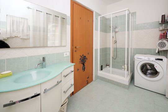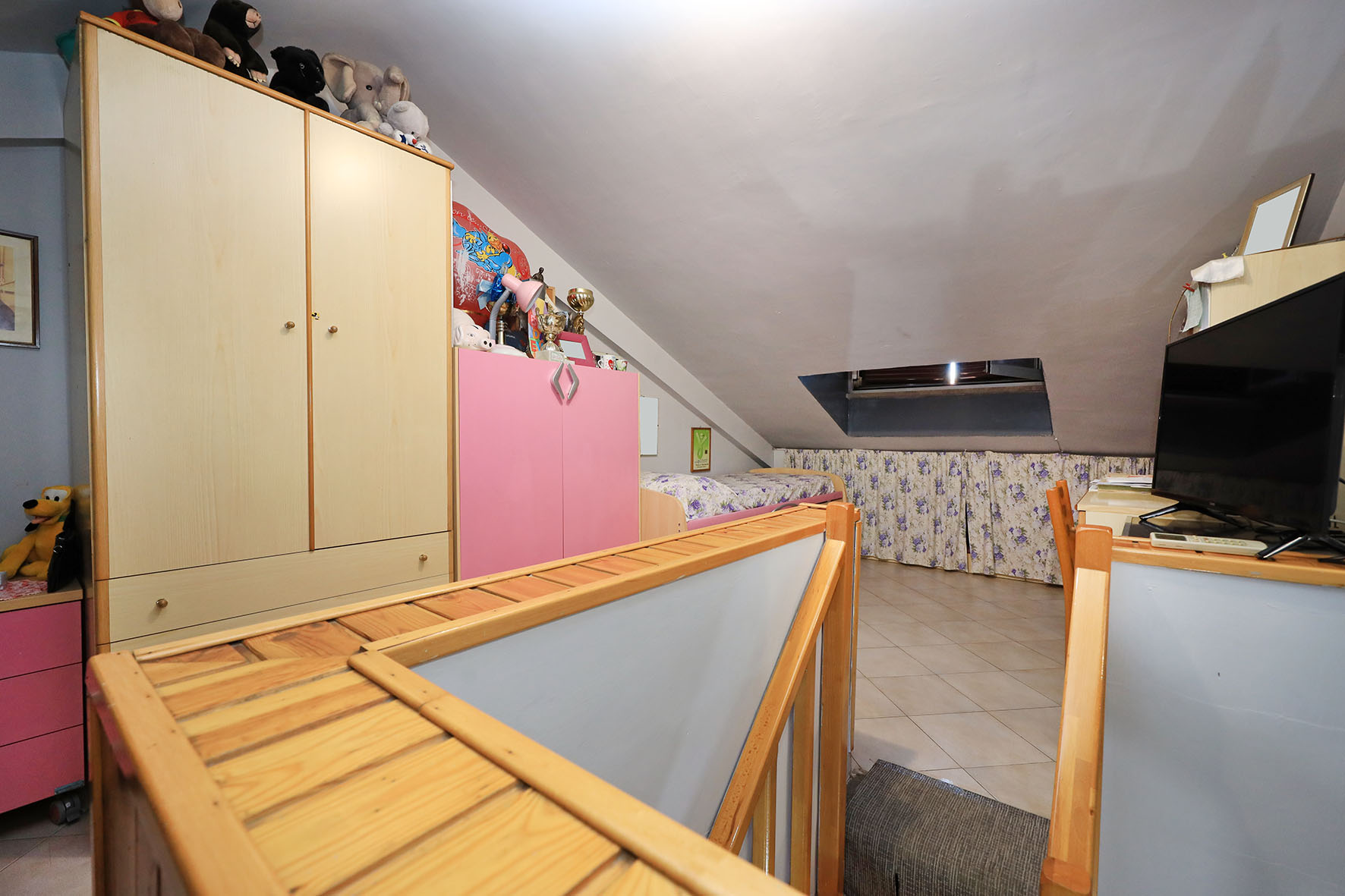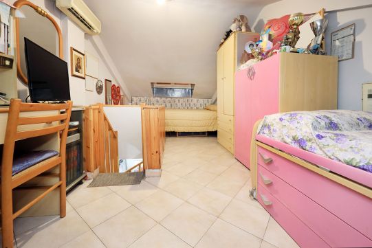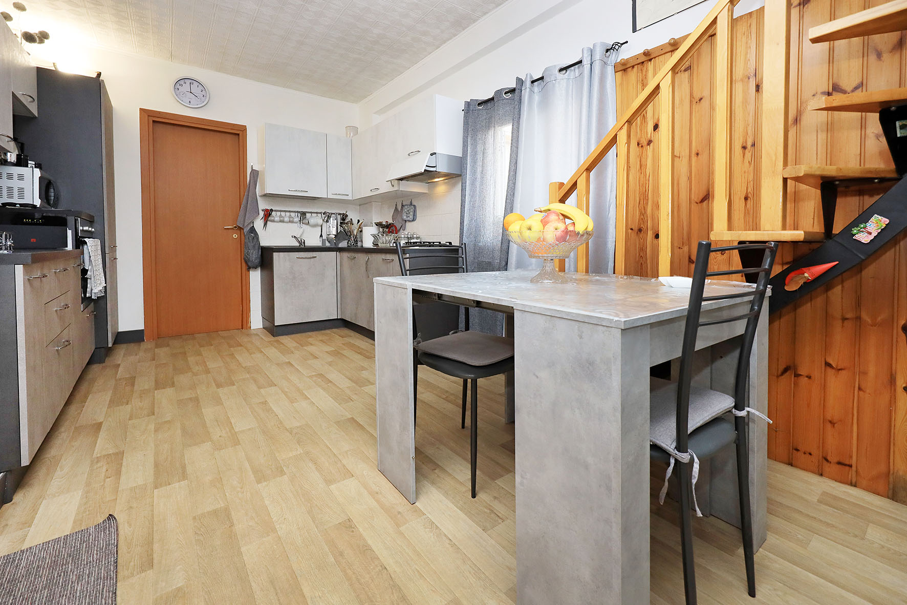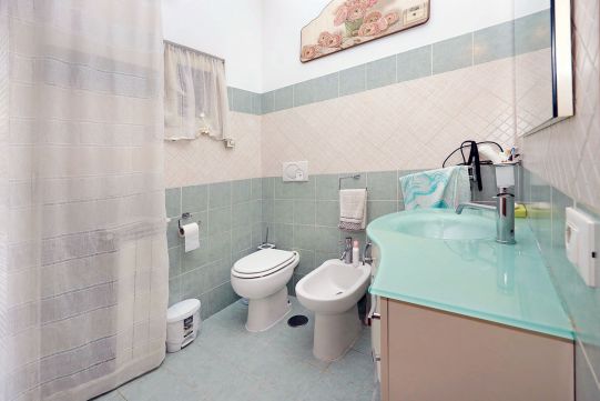 Portoncino d’ingresso blindato. Impianti (elettrico – gas – idraulico), originari e funzionanti. Pareti rifinite in tinta. Sui balconi sono presenti le tende da sole. Gli ambienti della casa sono climatizzati tramite degli split. Persiane romane esterne in alluminio. Infissi esterni (finestre e porte finestre), in alluminio anodizzato laccato bianco, con doppio vetro. Porte interne di colore noce chiaro, tutte a battente. La scala di collegamento tra i due piani è in ferro ed è rivestita in legno (pino russo). Il bagno è completo di tutti i sanitari con doccia. Sempre nel bagno è presente la lavatrice.