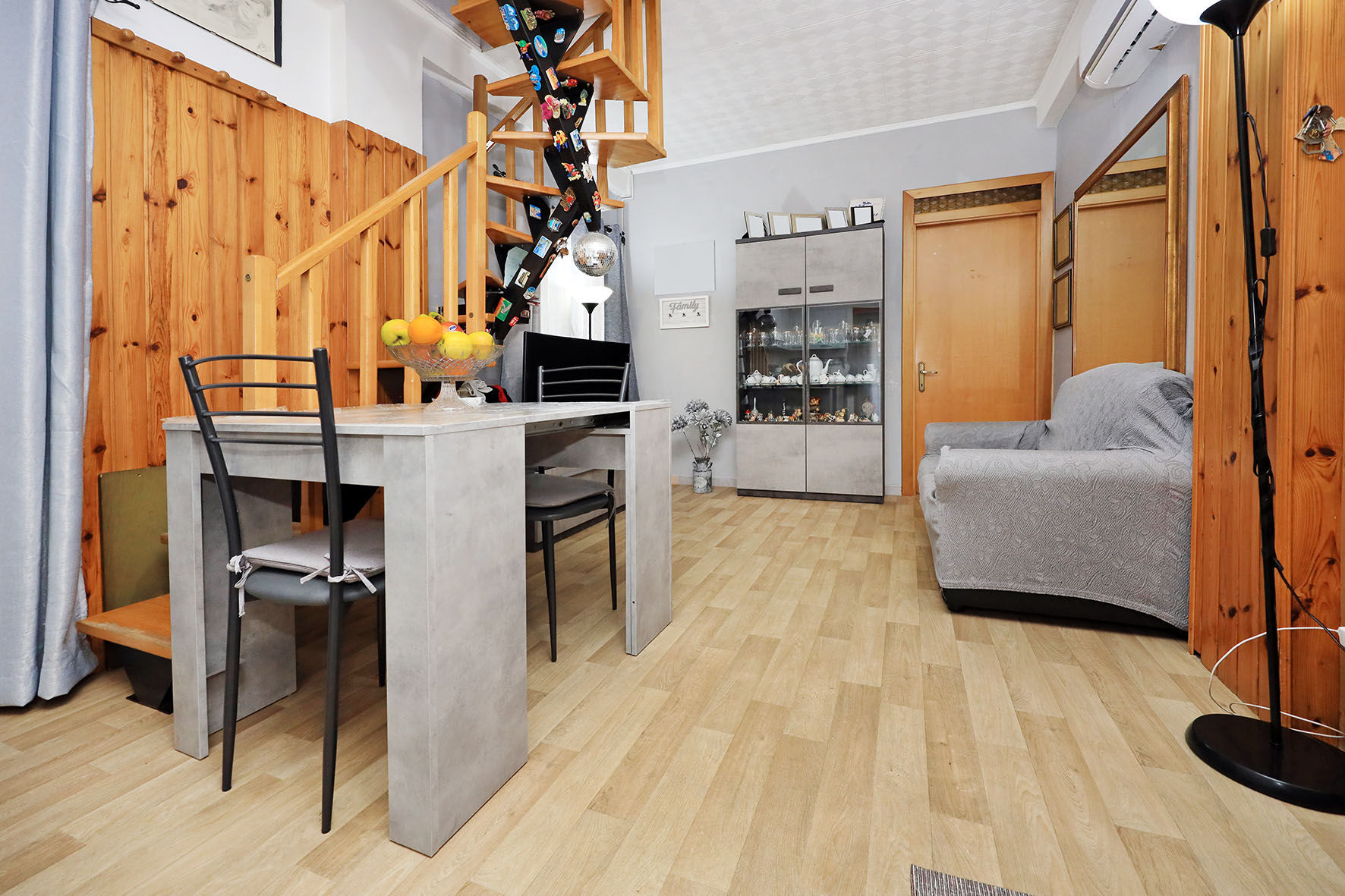 Nel quartiere del Portuense e precisamente in Via Portuense, 401 proponiamo la vendita, in esclusiva, di un luminoso appartamento con ingresso indipendente, con tripla esposizione. Questo immobile si dispone su due livelli: al piano primo è presente la zona residenziale con un soggiorno con angolo di cottura, una camera, un bagno e due balconi; tramite una scala interna è possibile accedere al sottotetto che è munito di due finestre e viene utilizzato, dalla Proprietà attuale, come ulteriore zona notte. Esternamente il fabbricato è rifinito in cortina.