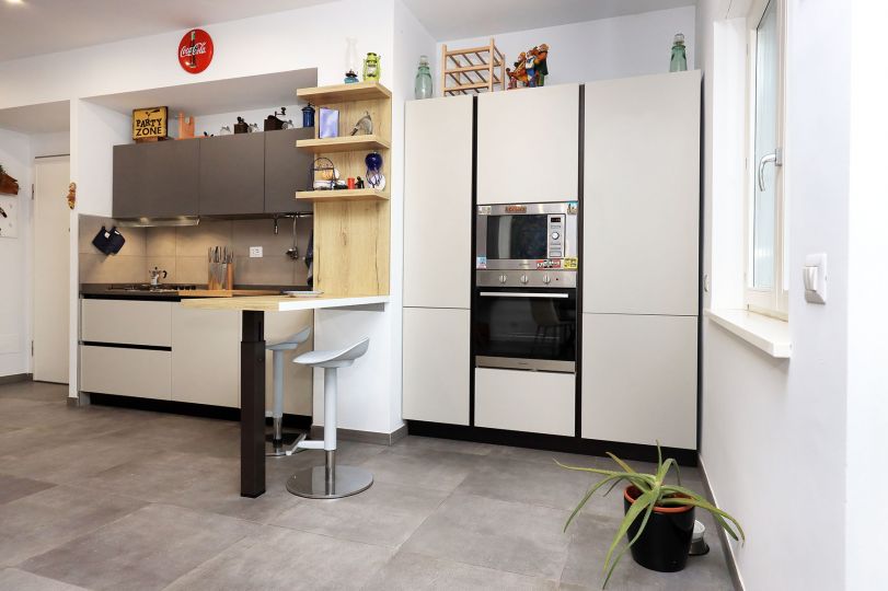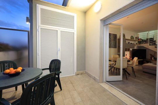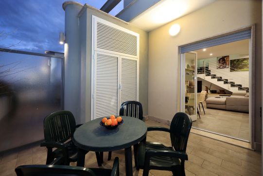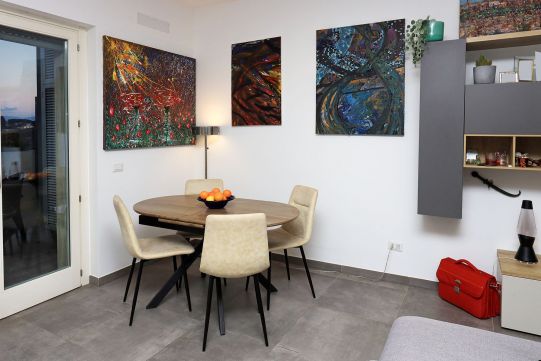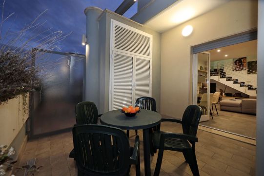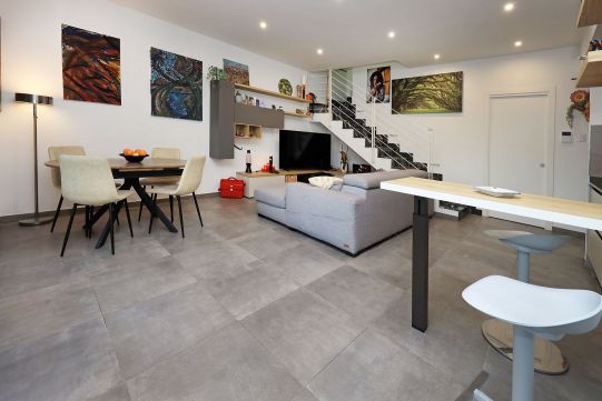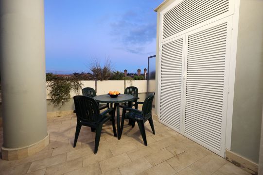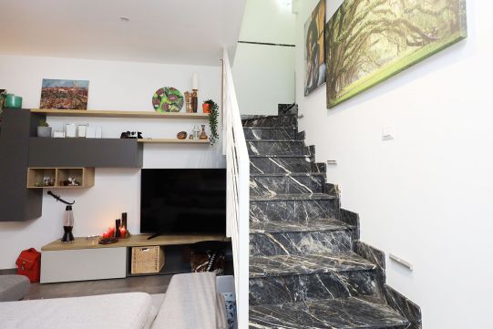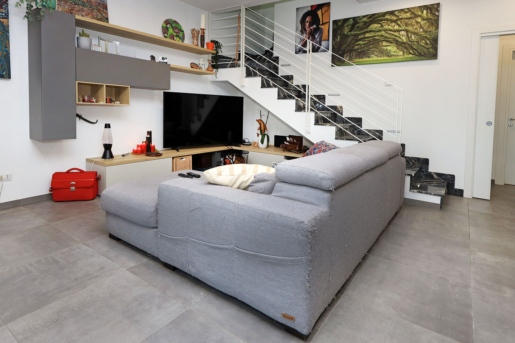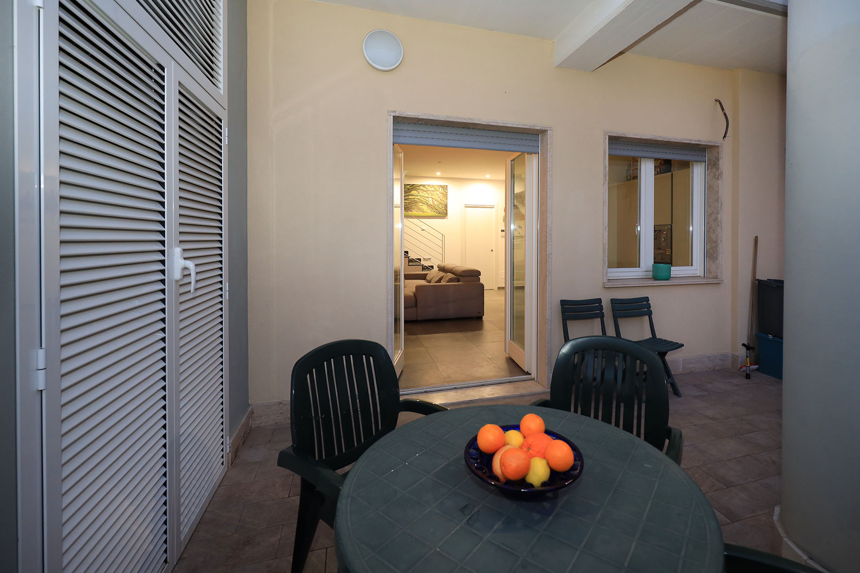 L’appartamento si compone nell’insieme sui due piani di salone con angolo cottura, disimpegno, tre camere-locali, doppi servizi-lavatoio con finestre, due ampi terrazzi al piano secondo oltre un terrazzo panoramico, al piano terzo, con una superficie complessiva degli spazi esterni di circa 150 mq, con vista a trecentosessanta gradi. Gli arredi sono, ovviamente, esclusi (angolo di cottura). E’ incluso nel prezzo di vendita un posto auto scoperto.