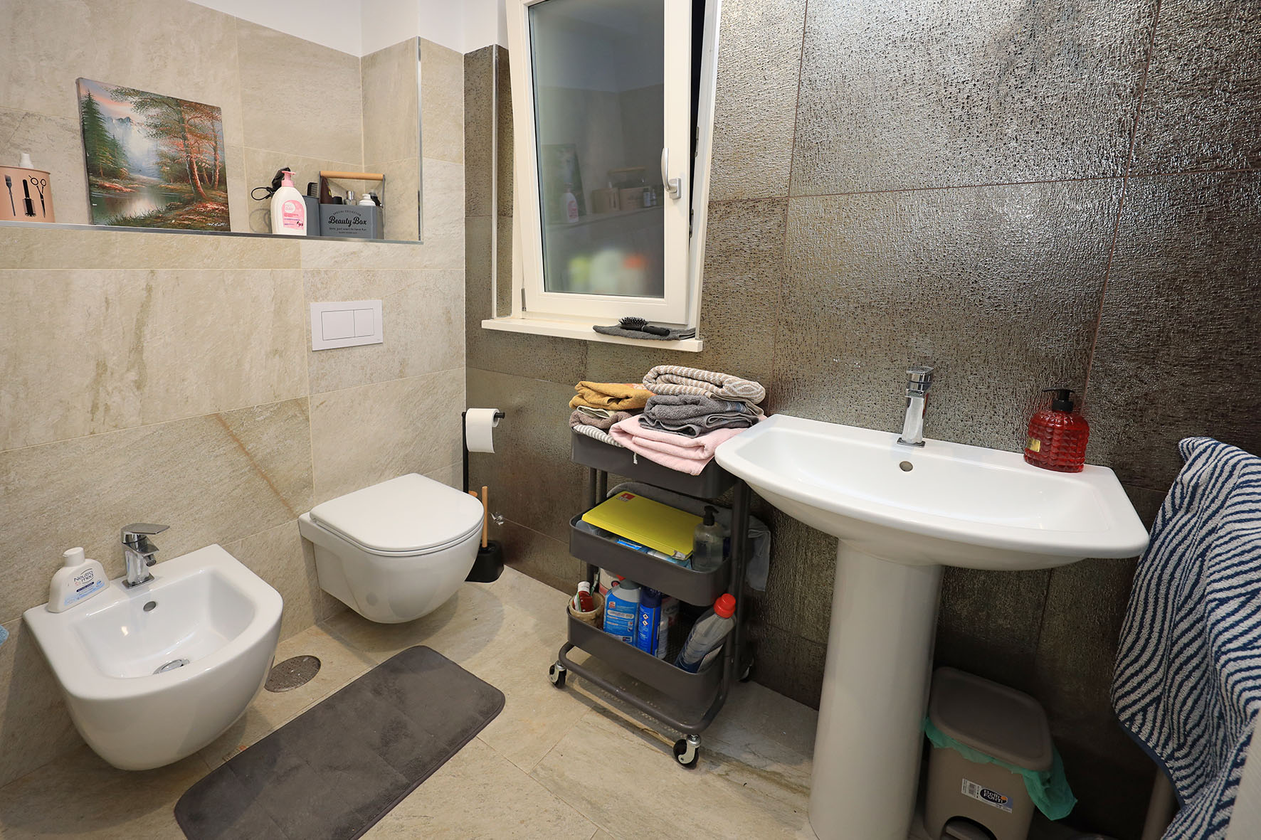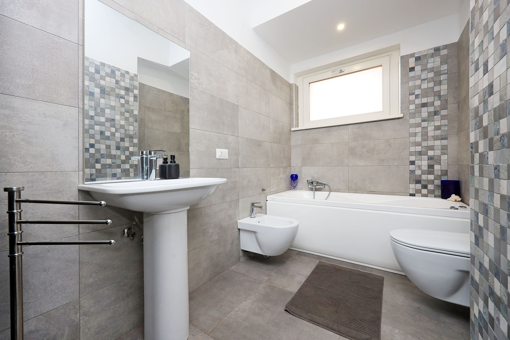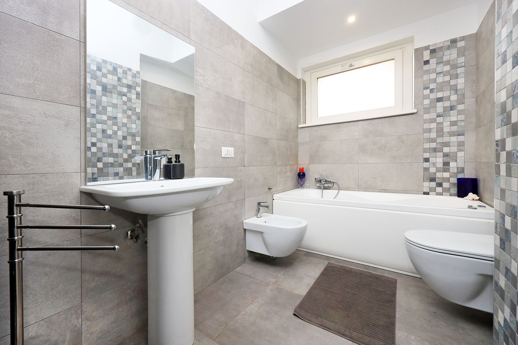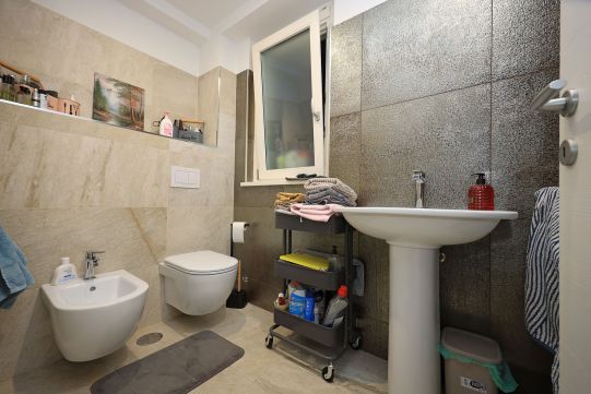 Sanitari sospesi - Rubinetteria miscelatori monocomando “MARCA REMER” (Azienda Italiana dal 1965) - Controsoffitto in cartongesso con faretti. Gli impianti (elettrico - termico) sono tutti certificati. Si precisa che l’appartamento è dotato di impianto di riscaldamento a pavimento. Impianto di videocitofono “MARCA COMELIT”: Tramite un’applicazione da scaricare sul telefonino, è possibile rispondere ad una videochiamata anche dall’esterno di casa, ovunque voi siate. Impianto tv terrestre e satellitare centralizzati. Terrazzo panoramicissimo (in lontananza si vede anche la cupola di San Pietro in Vaticano). Predisposizione impianto di allarme e condizionamento. Nel piano terzo è stato installato un condizionatore marca Daikin. Nel vano tecnico posto sul balcone del secondo piano sono presenti la lavatrice e le tubazioni per allacciare la macchina per il condizionamento.