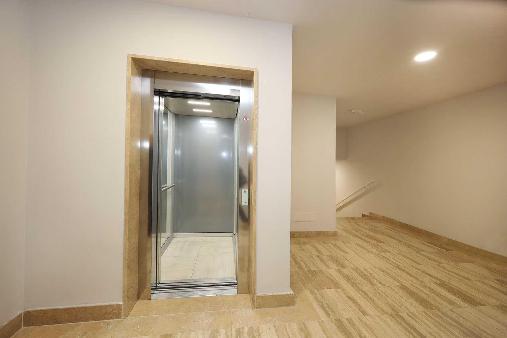 L’edificio, esternamente rifinito parte in cortina e parte in tinta, è provvisto di ascensore, “MARCA SCHINDLER”, ultima generazione.