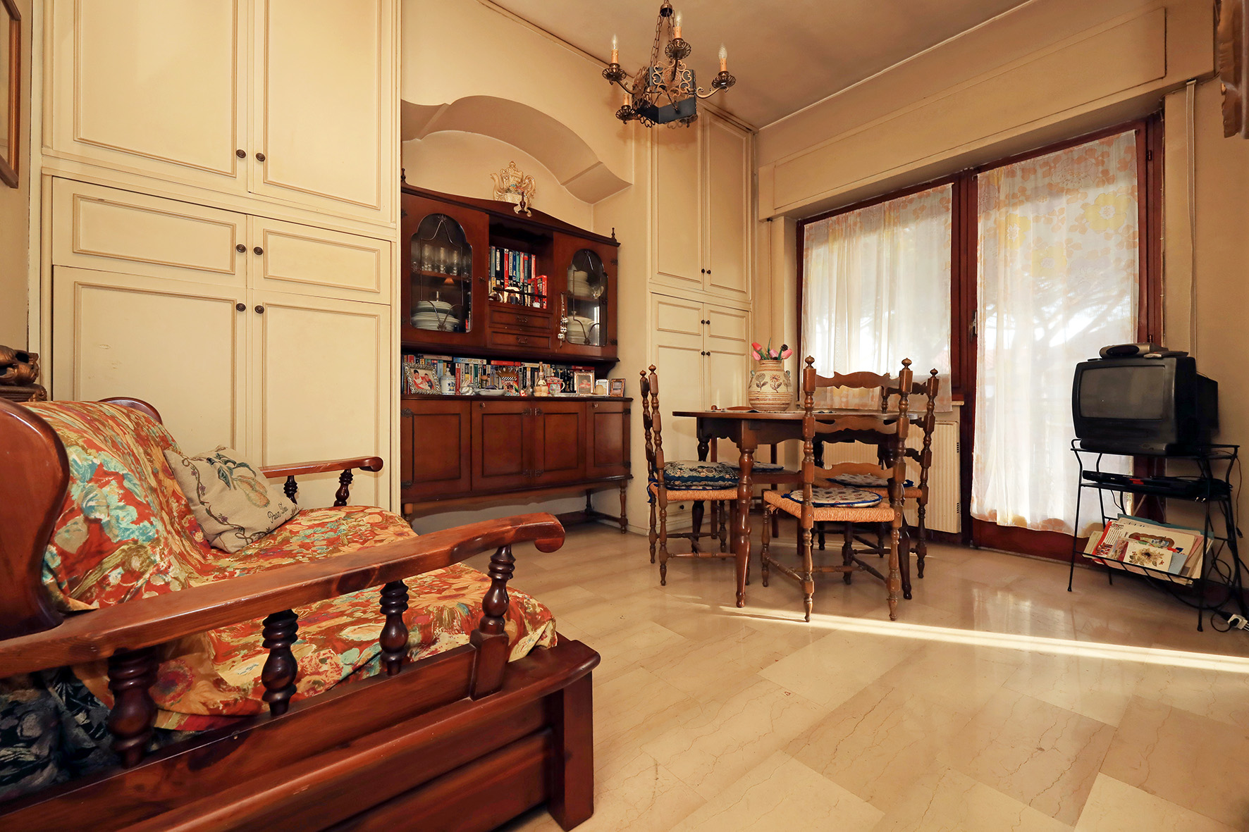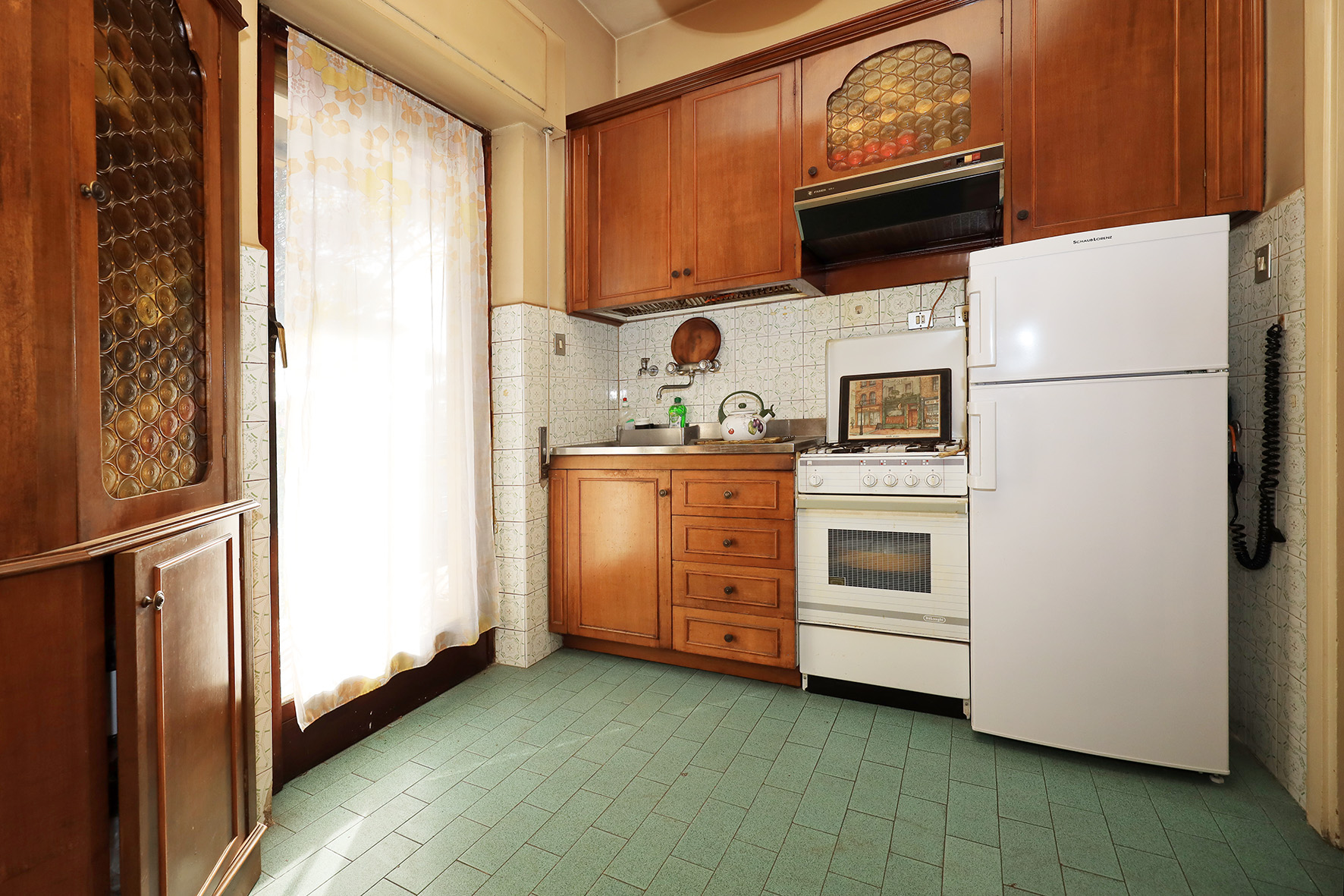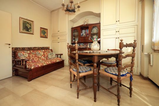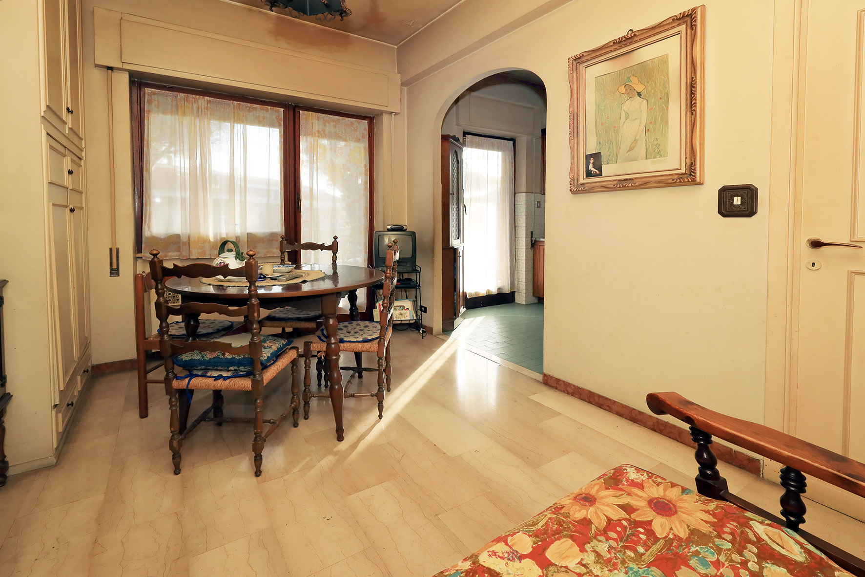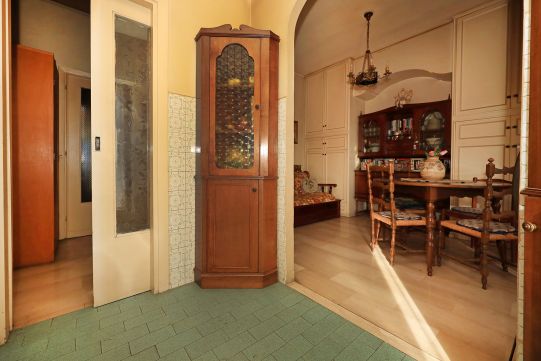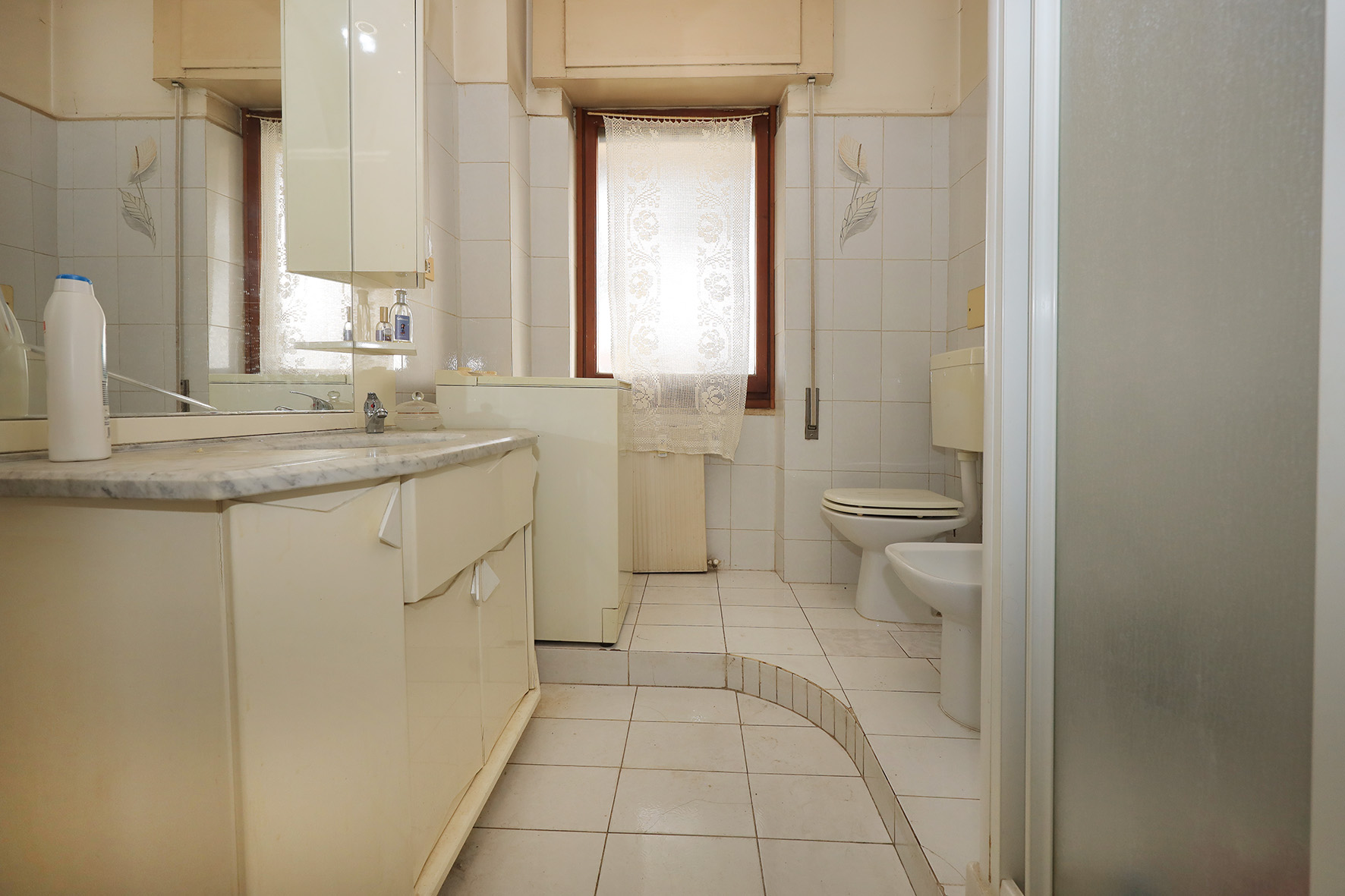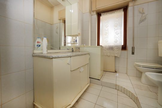 La casa è da ristrutturare ad eccezione del bagno che è stato ristrutturato nel corso degli anni. Riscaldamento centralizzato. Scaldabagno elettrico per l’acqua calda. Pavimentazione dell’ingresso e del salone in marmo, restante pavimentazione in ceramica. Infissi esterni in legno con cristallo singolo. Parte interne tamburate. Impianto elettrico originario.