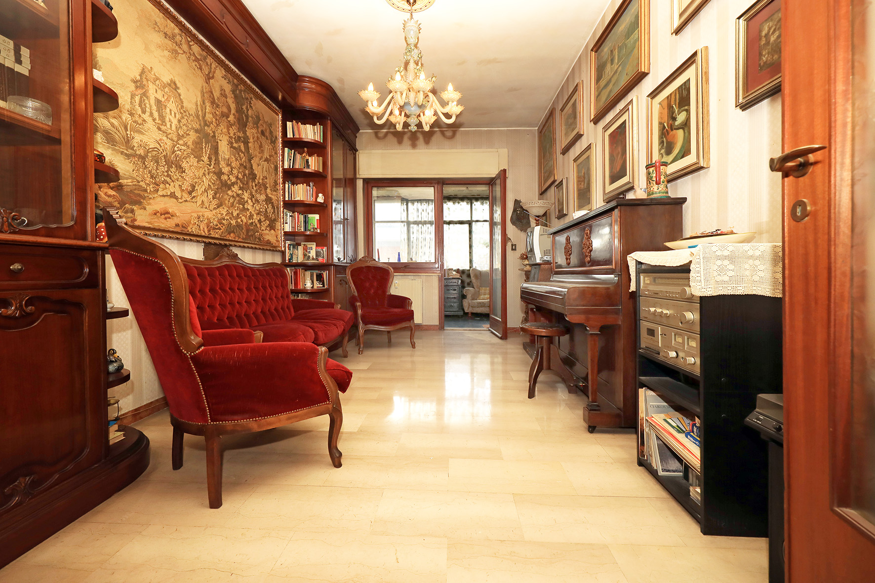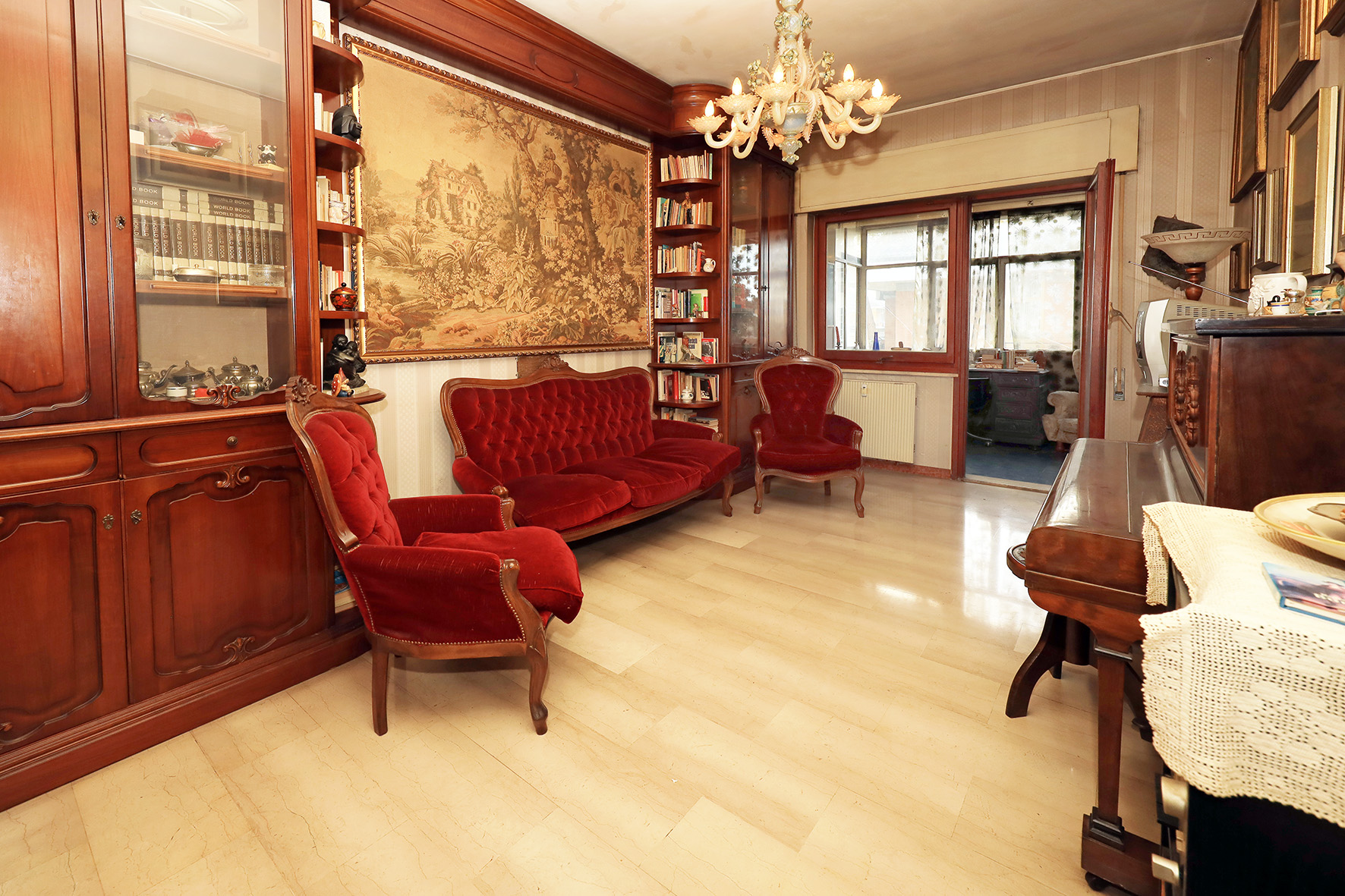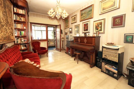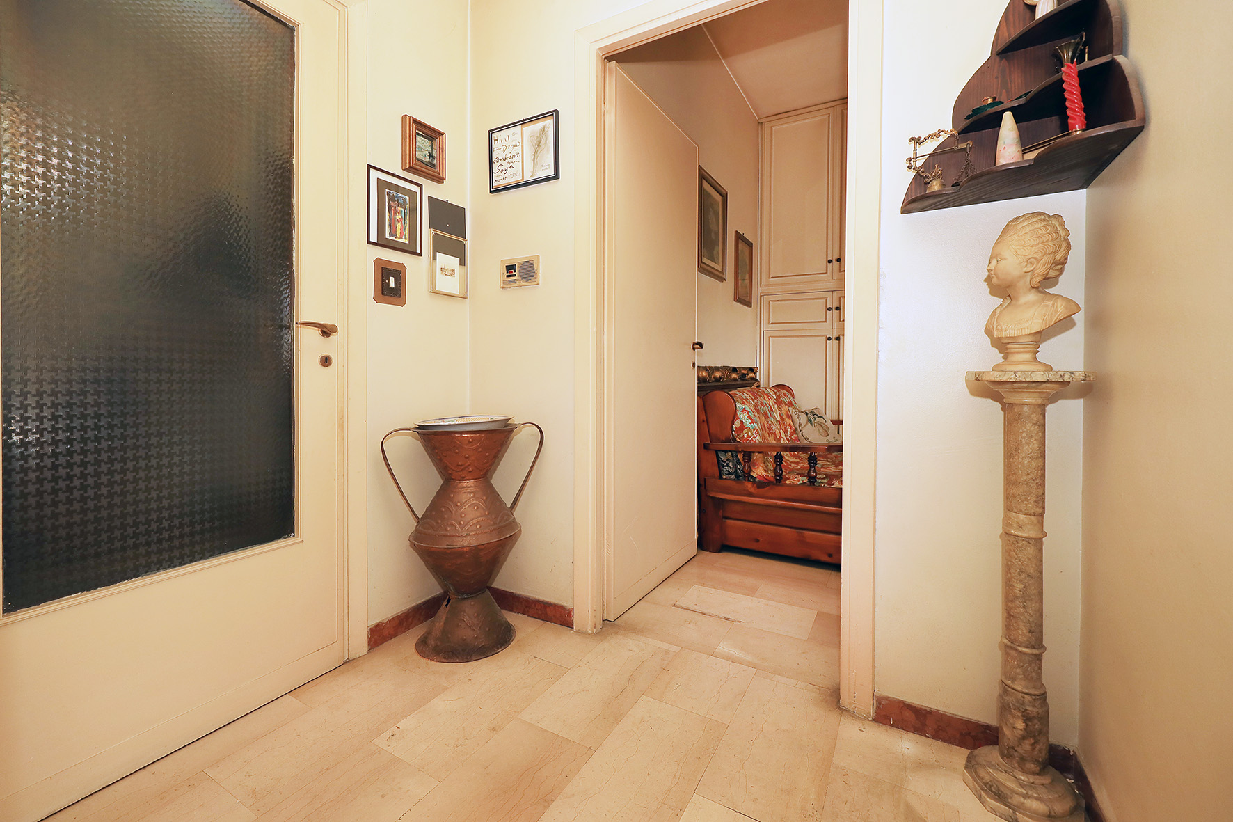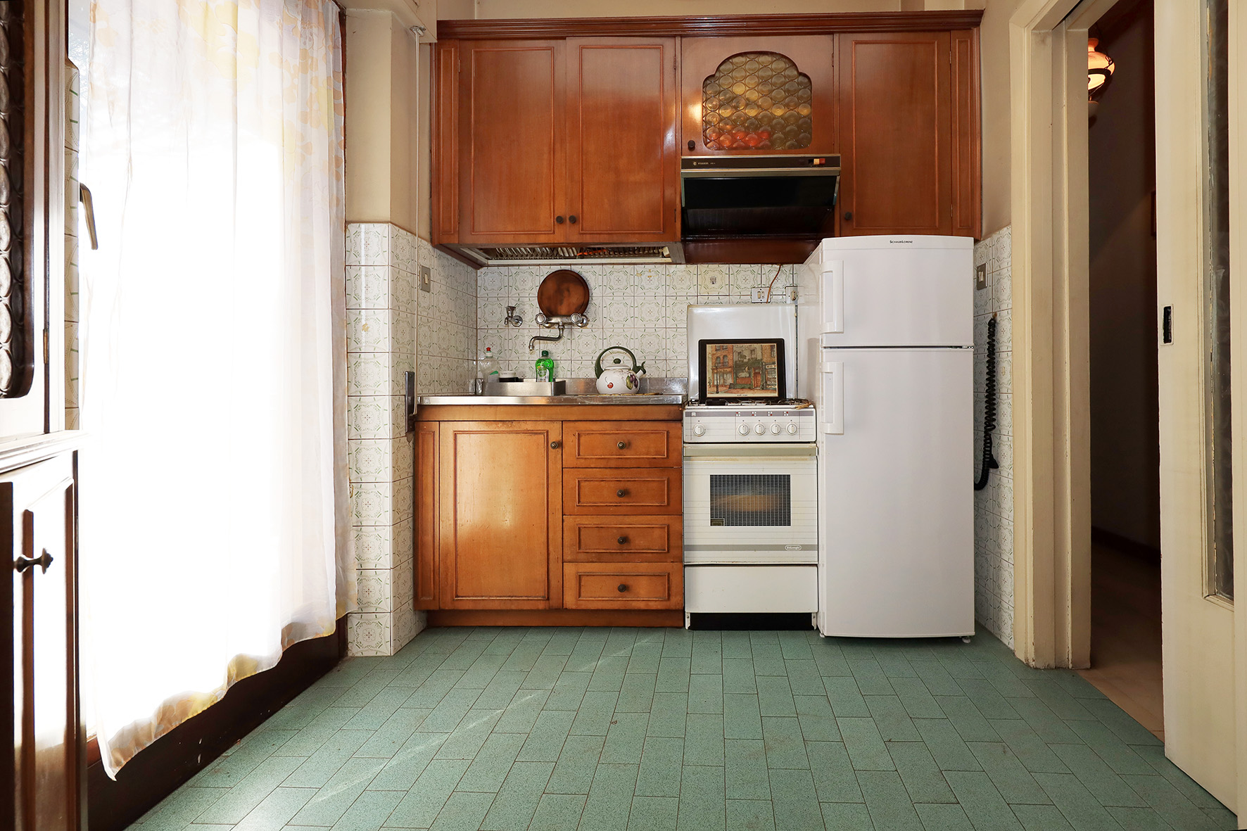 La casa è da ristrutturare ad eccezione del bagno che è stato ristrutturato nel corso degli anni. Riscaldamento centralizzato. Scaldabagno elettrico per l’acqua calda. Pavimentazione dell’ingresso e del salone in marmo, restante pavimentazione in ceramica. Infissi esterni in legno con cristallo singolo. Parte interne tamburate. Impianto elettrico originario.
