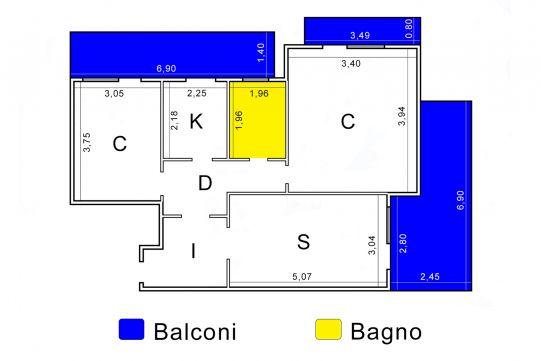 Esposizione: camera, cameretta, cucina e bagno ad Est; soggiorno e terrazzo a Sud-Ovest.