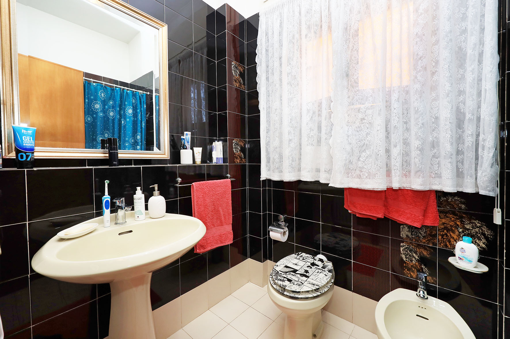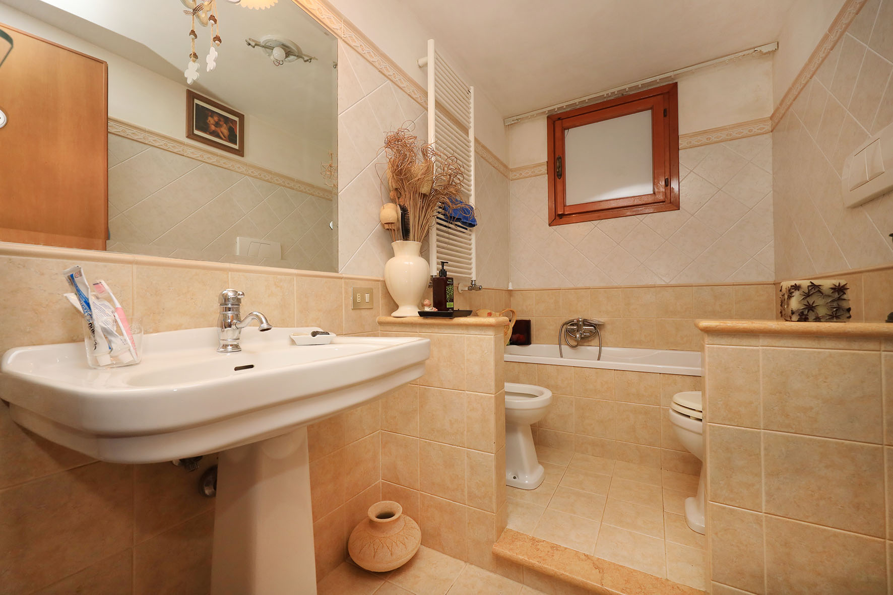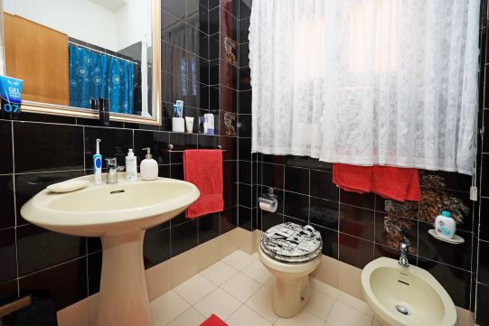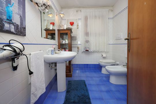 I tre bagni, completi di tutti i sanitari, sono provvisti di finestre. Rubinetteria dei bagni con miscelatori monocomando. I sanitari sono tradizionali.