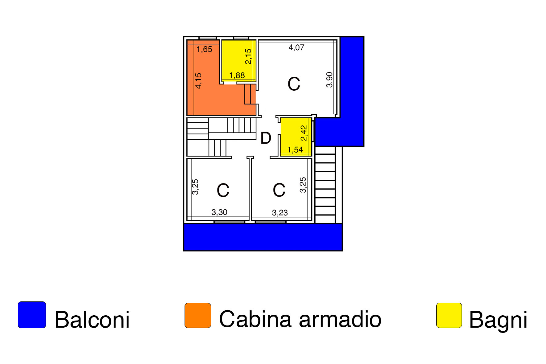 - Al piano terra di una camera da letto matrimoniale, con cabina armadio e bagno personale, oltre due camere da letto, un disimpegno notte ed un altro bagno. Entrambi i bagni sono completi di tutti i sanitari ed hanno la finestra. Tutte le camere da letto escono all’esterno su due comodi balconi.