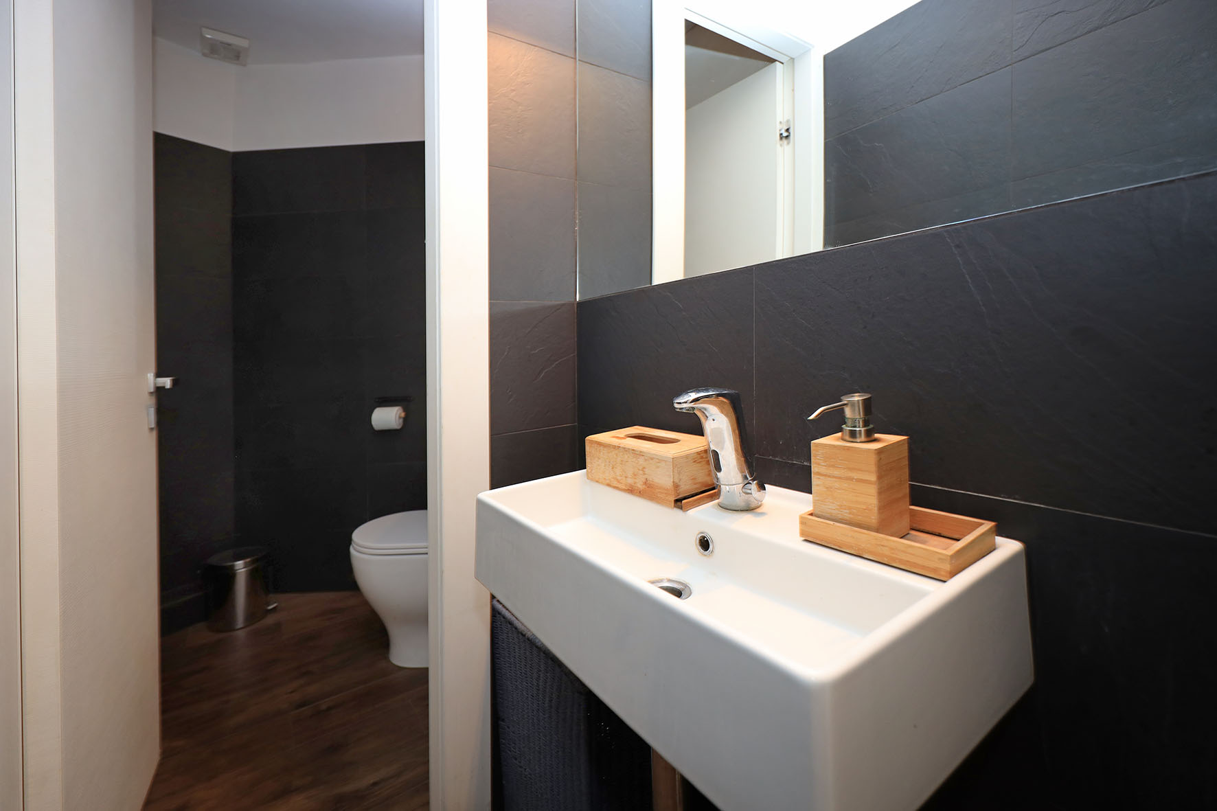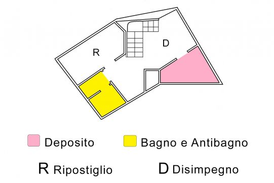- Piano interrato con spogliatoio, deposito, ripostiglio, disimpegno, antibagno e bagno dipendenti.