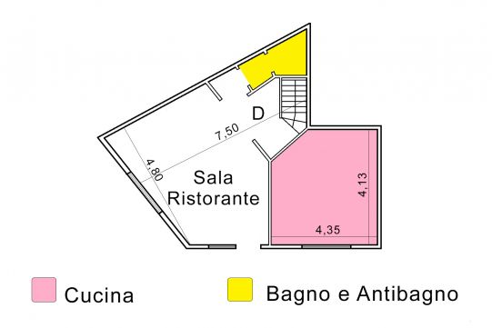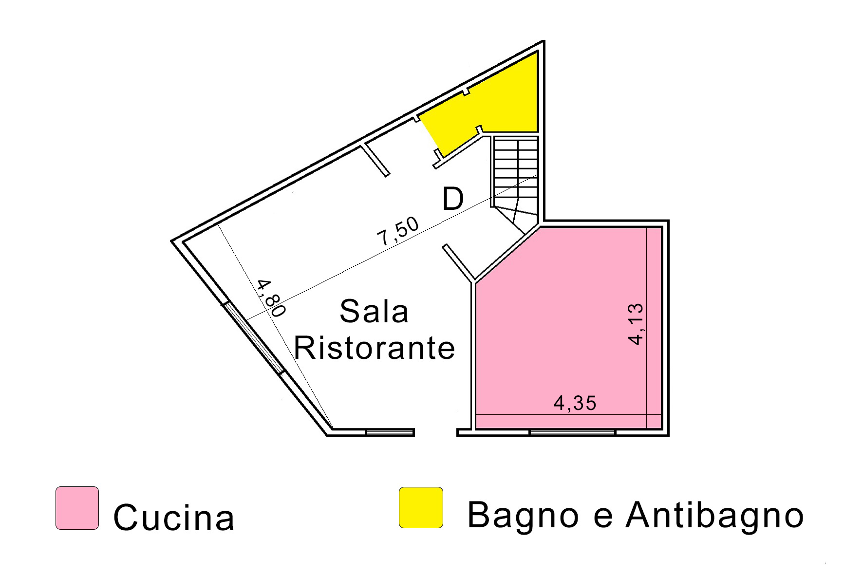 - Piano terreno con cucina, sala ristorante, disimpegno, antibagno e bagno, con all’esterno deohr di circa 18 mq;