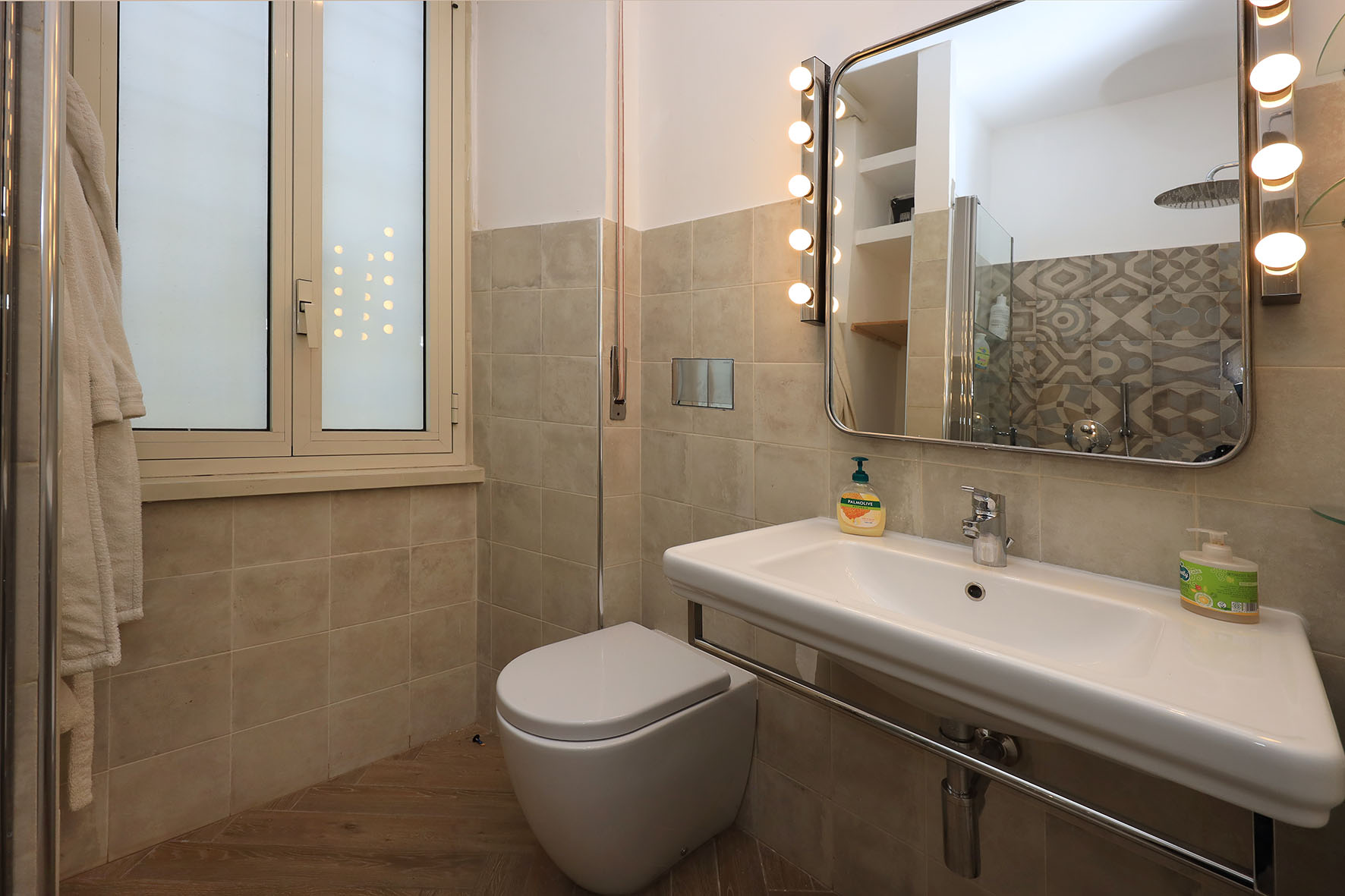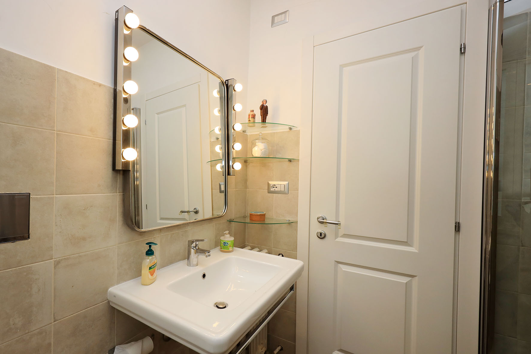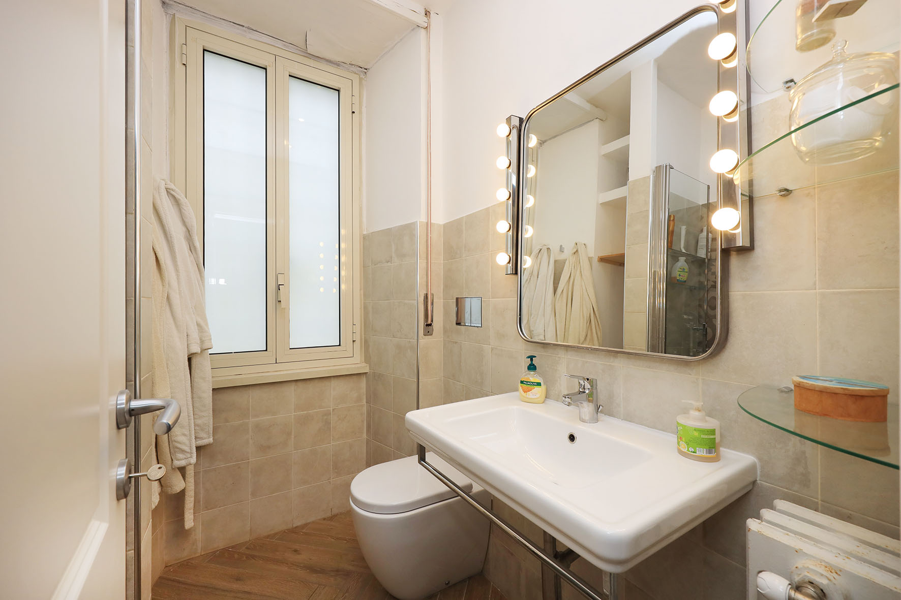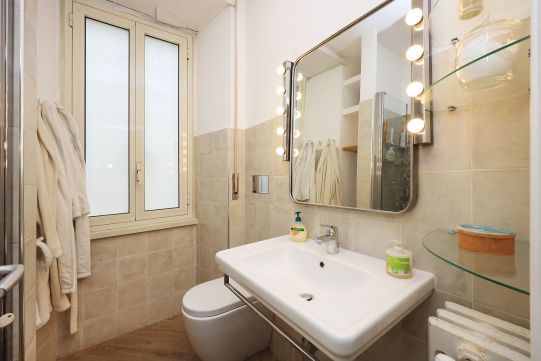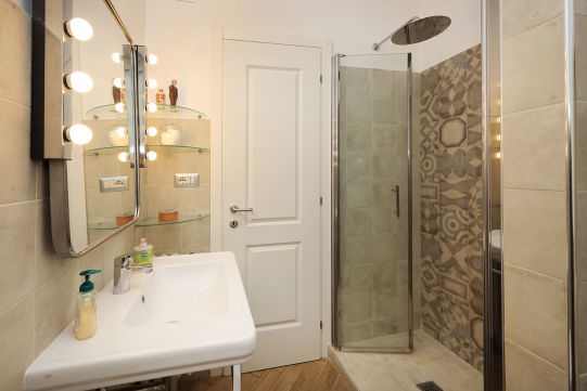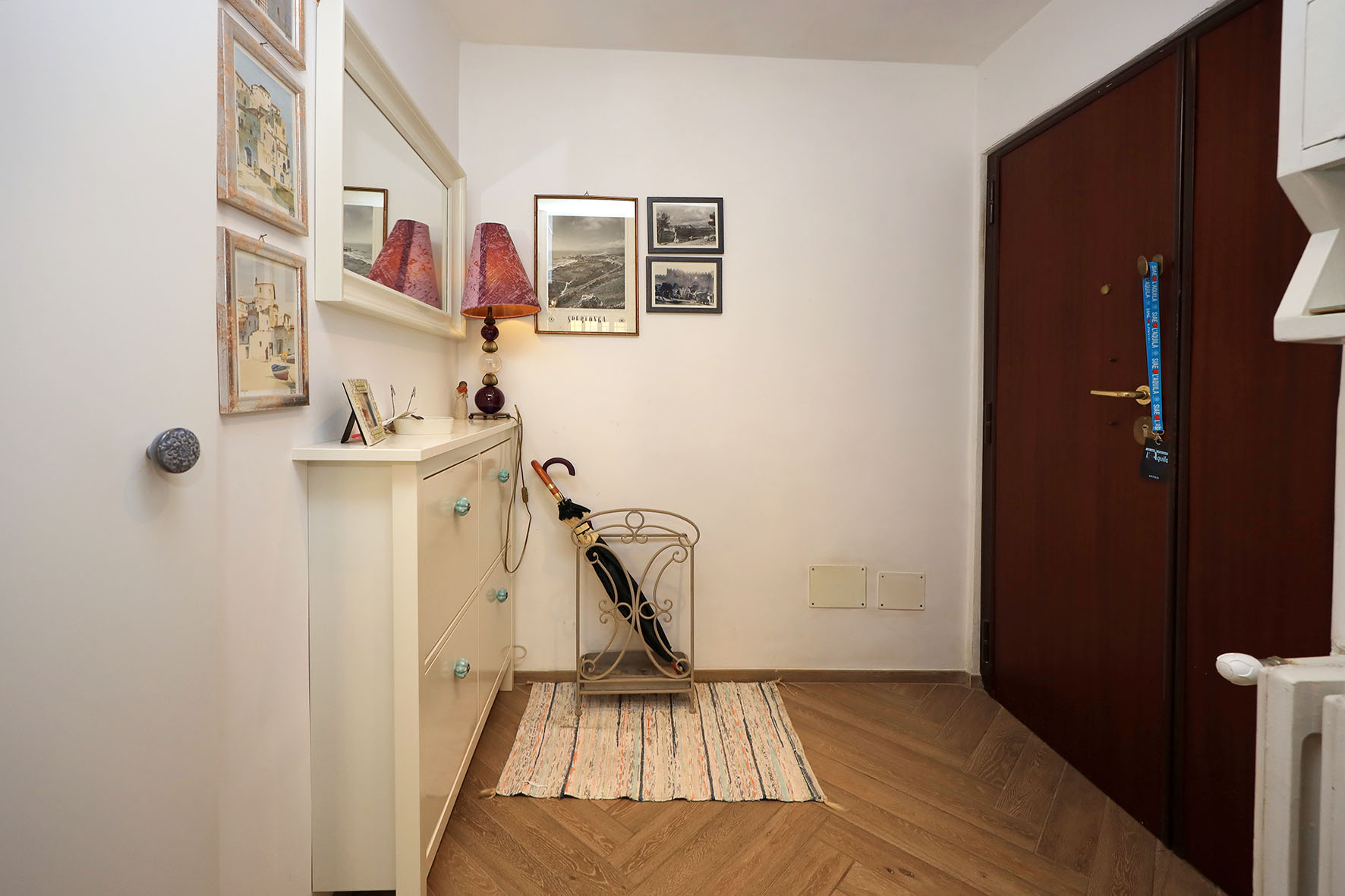 L’appartamento è in perfetto stato; gli impianti della cucina e del bagno sono stati completamente ristrutturati, come l’impianto elettrico. L’impianto di riscaldamento è centralizzato e le piastre radianti sono in ghisa. Portoncino d’ingresso blindato, impianto citofonico tradizionale. All’ingresso la proprietà ha realizzato un piccolo, ma pratico, armadio guardaroba. Le porte interne, tutte nuove ed a battente, sono laccate bianche e con doppia bugnatura. Infissi esterni in alluminio bianco, con cristallo singolo. Sono presenti le grate di protezione e le zanzariere a tutte le finestre.