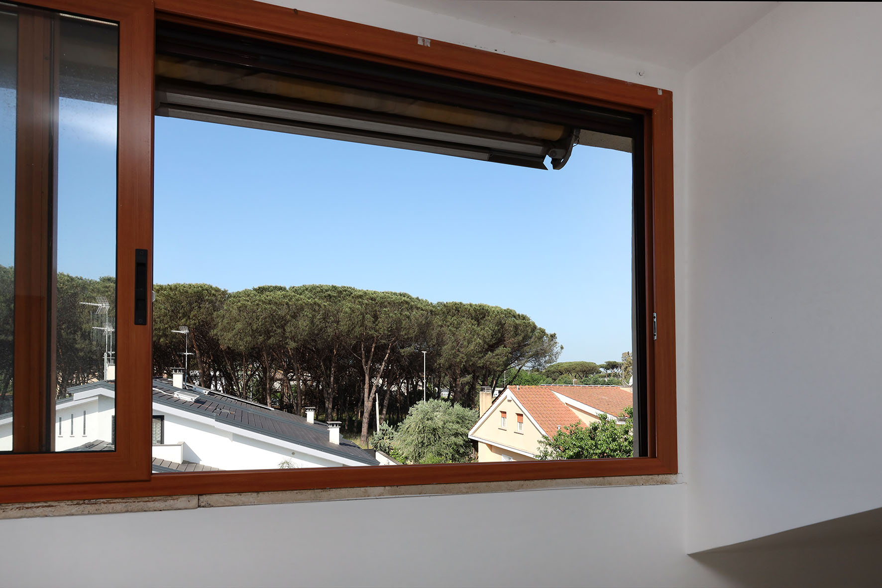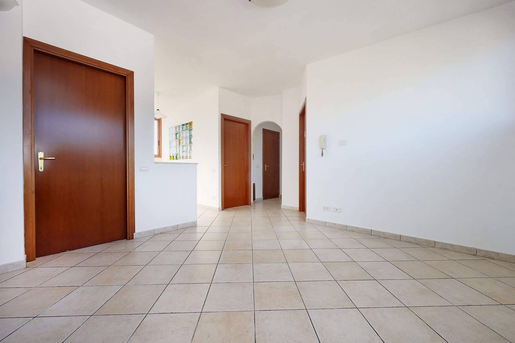L’appartamento che ha una doppia esposizione è molto luminoso e si presenta in buono stato. Infissi esterni in alluminio colore legno, con doppi vetri e zanzariere. Gli impianti della cucina e del bagno, quelli relativi all’impianto elettrico, sono stati ristrutturati. Portoncino blindato con serratura cilindro europeo. Impianto citofonico tradizionale. Impianto tv terrestre. Le porte interne, lisce e tamburate, di colore noce chiaro, sono tutte a battente.