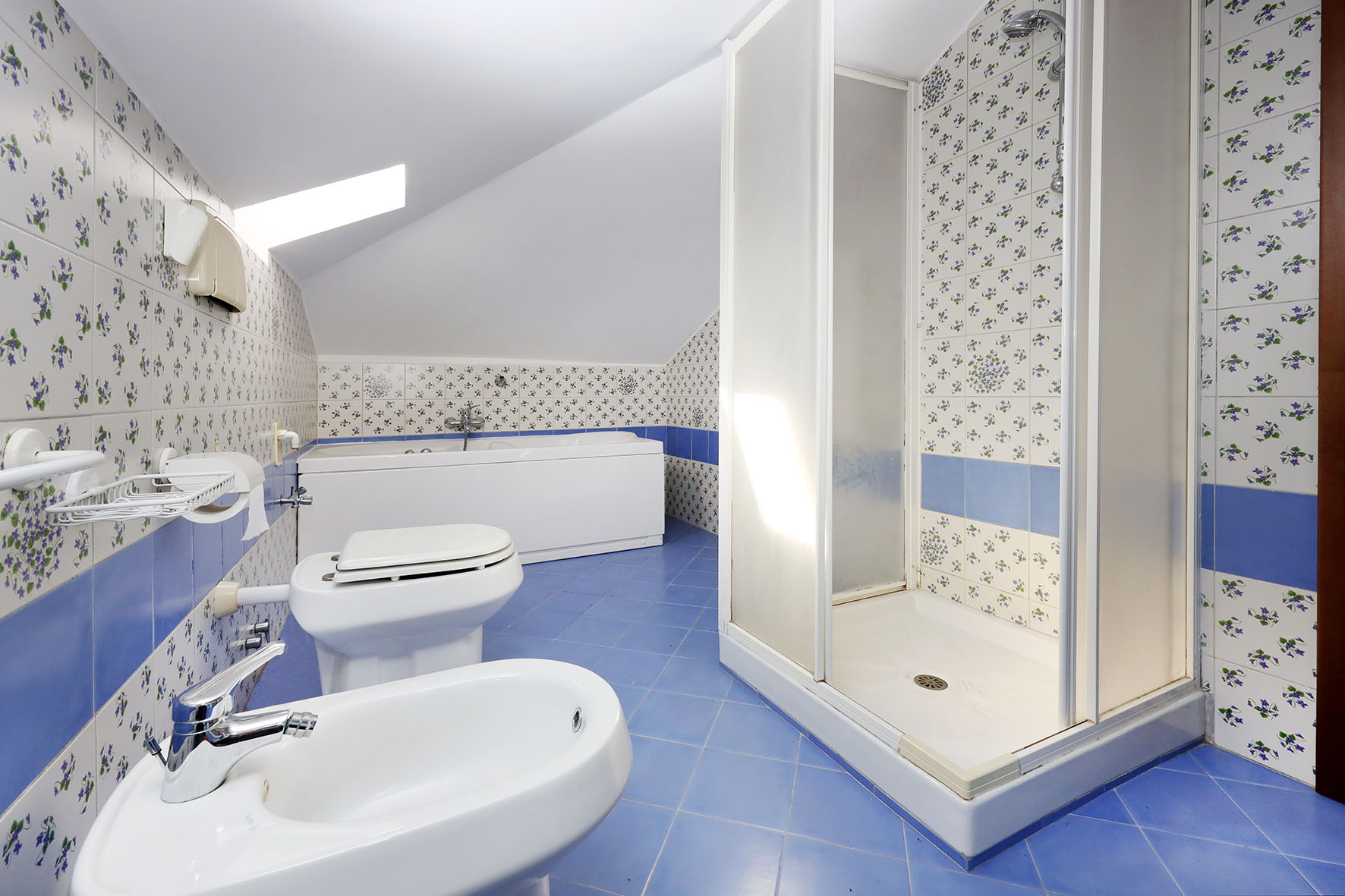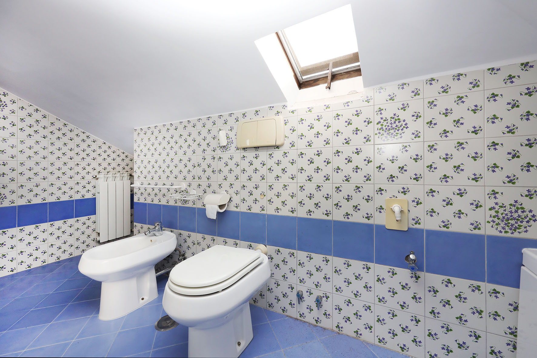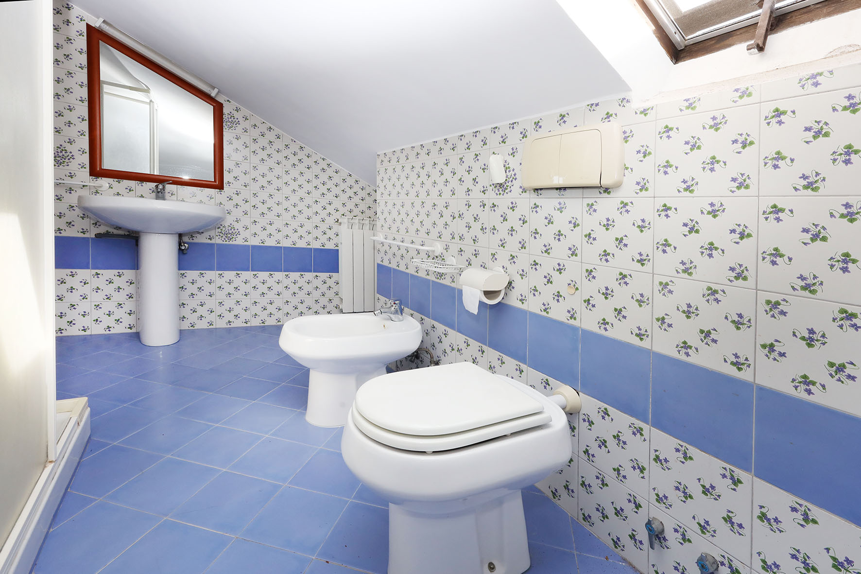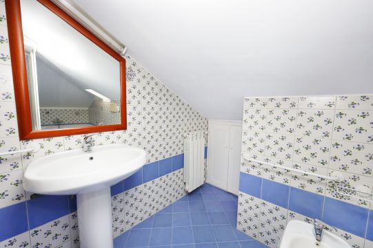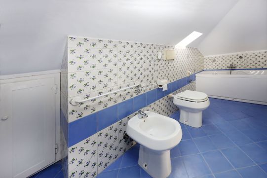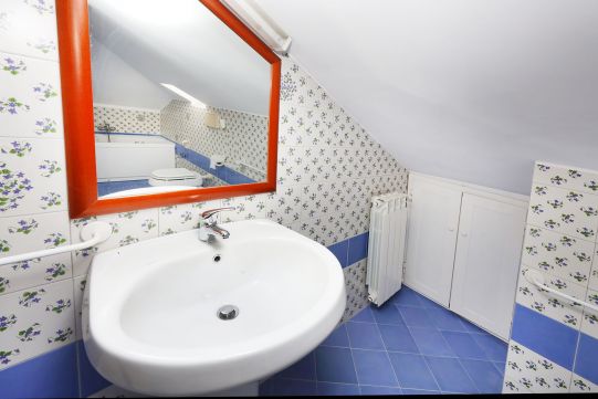 Il bagno completo di tutti i sanitari è provvisto di vasca. Rubinetteria miscelatori monocomando.