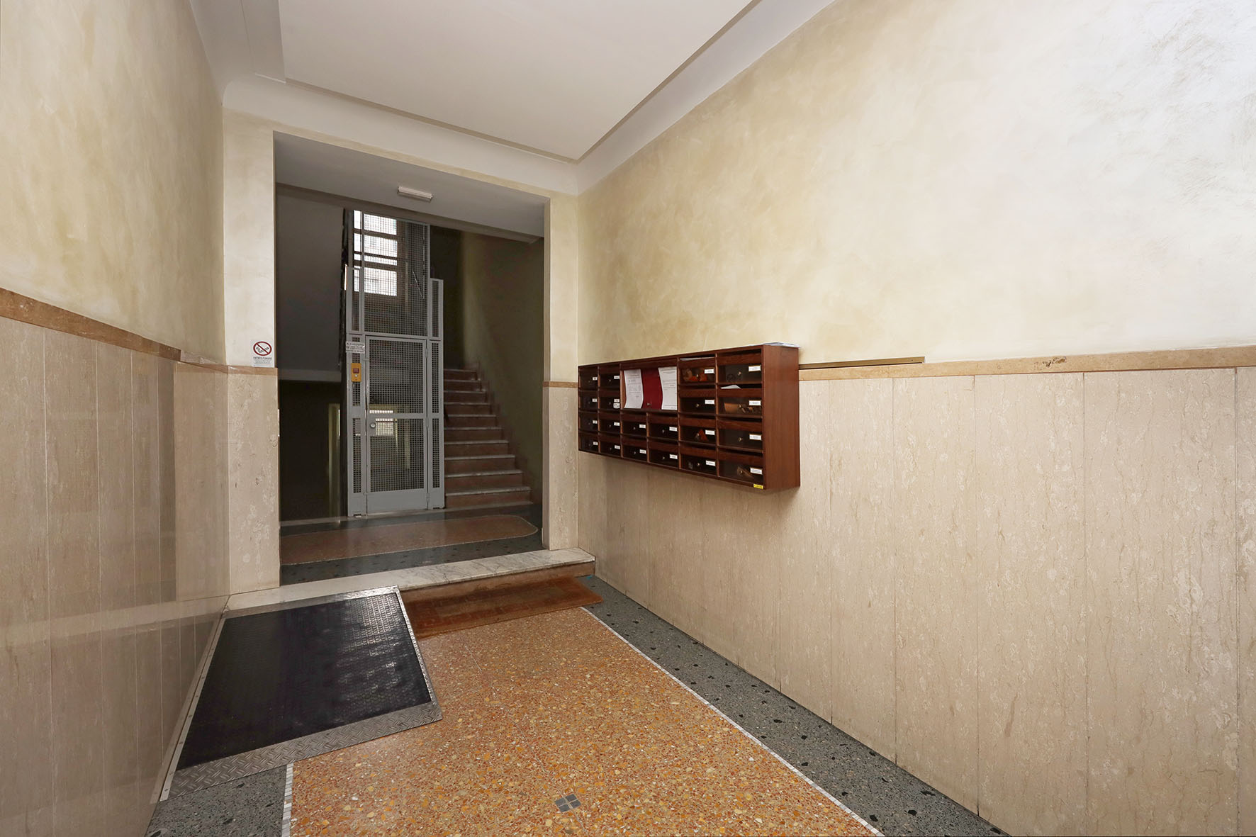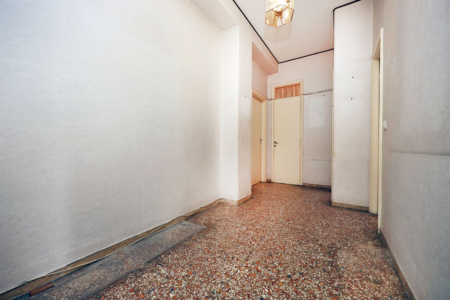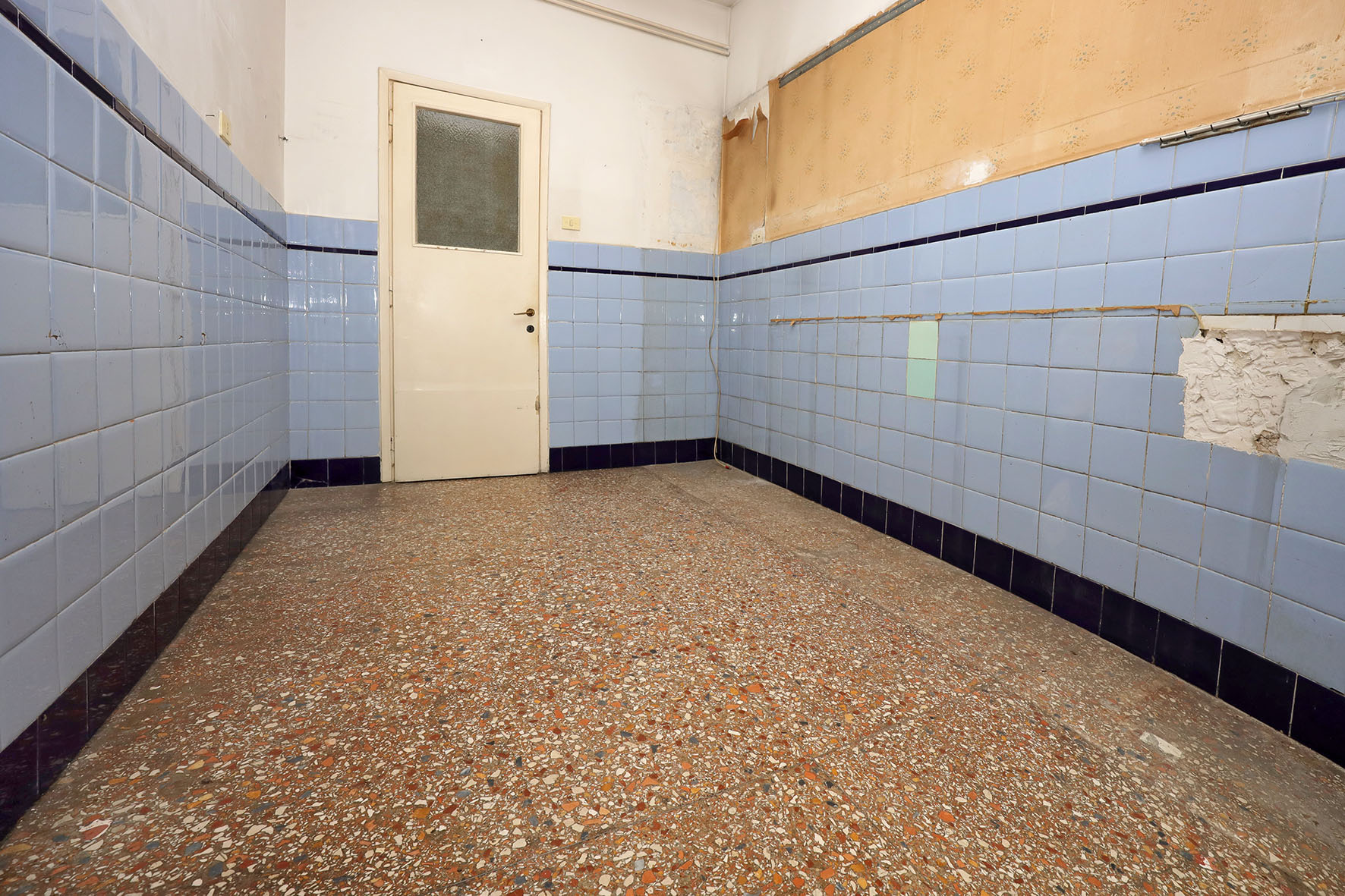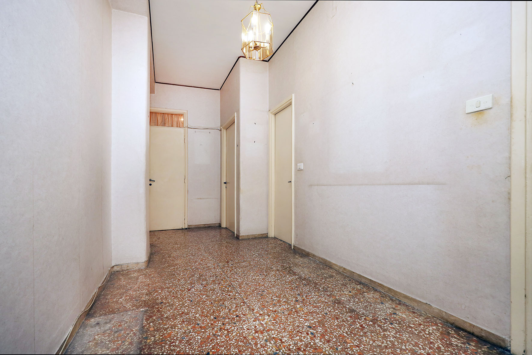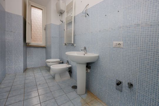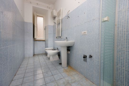 Portoncino d’ingresso con serratura rinforzata. Persiane romane esterne (ad eccezione della cucina e del bagno) in legno ed infissi in legno con vetro singolo. Pavimentazione veneziana; lo zoccolino è in marmo. Il bagno è stato ristrutturato di recente ed è completo di tutti i sanitari, sono presenti un box doccia e l’attacco per la lavatrice; rubinetteria miscelatori monocomando. L’acqua calda viene prodotta da una caldaia autonoma a gas posta sul balcone adiacente la cucina. L’impianto elettrico è originale. Sulla muratura di casa è presente la carta da parati. Fermo restando la suddetta descrizione, si precisa che l’appartamento è da ristrutturare ad esclusione del bagno.