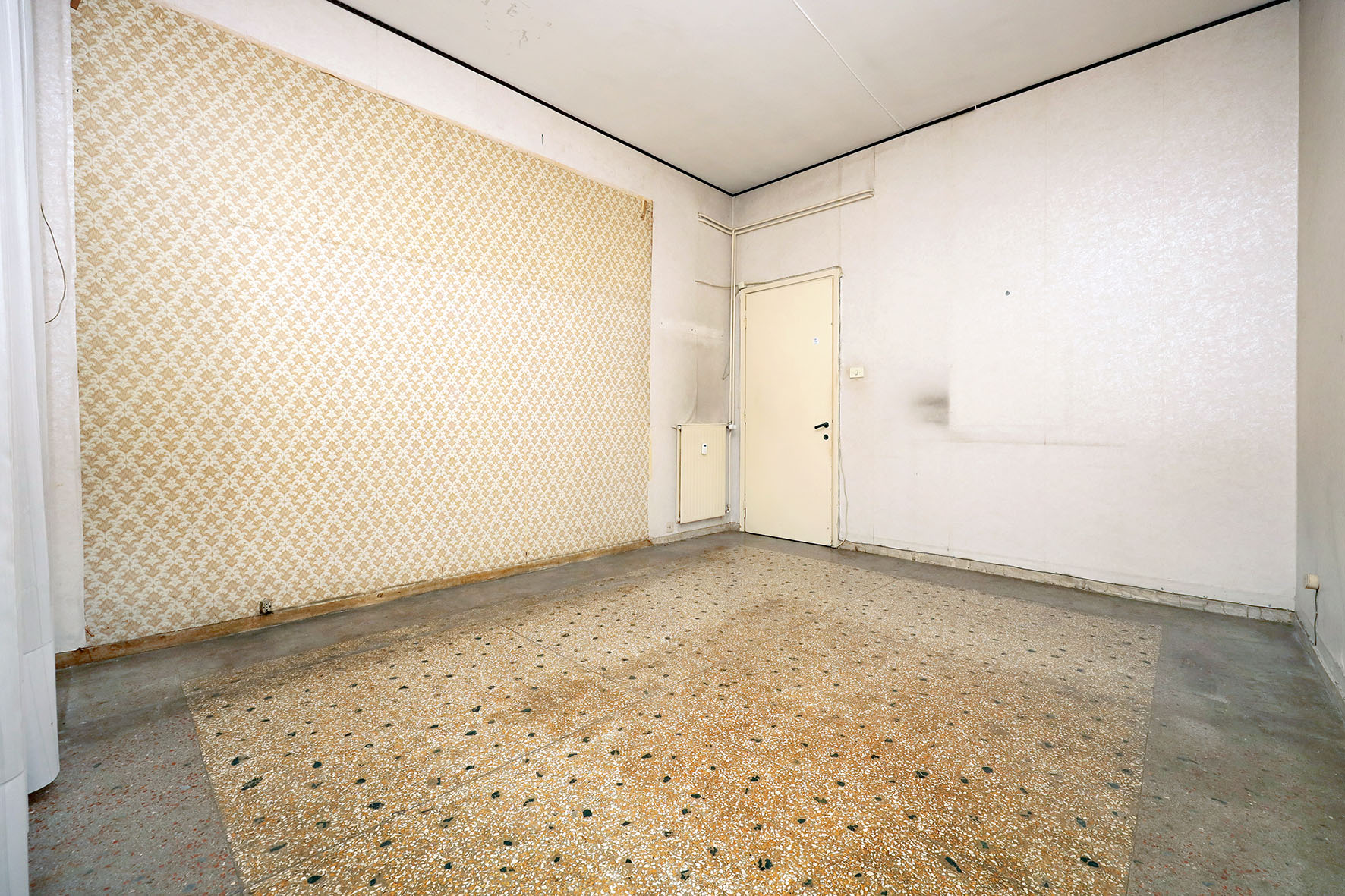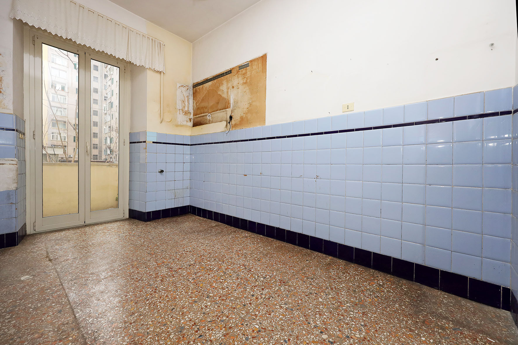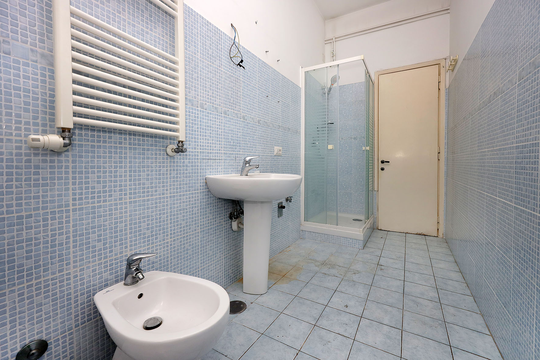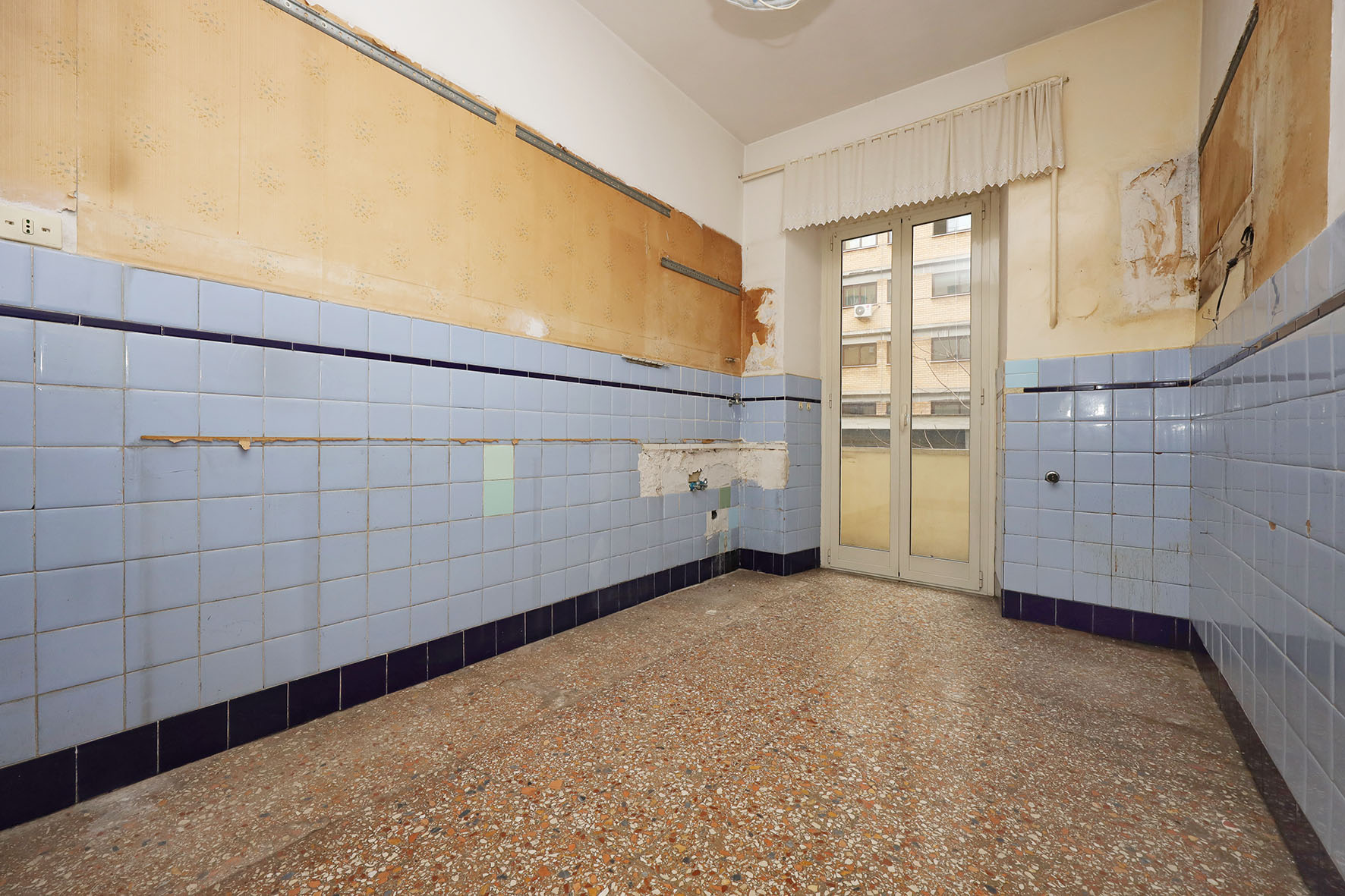 Portoncino d’ingresso con serratura rinforzata. Persiane romane esterne (ad eccezione della cucina e del bagno) in legno ed infissi in legno con vetro singolo. Pavimentazione veneziana; lo zoccolino è in marmo. Il bagno è stato ristrutturato di recente ed è completo di tutti i sanitari, sono presenti un box doccia e l’attacco per la lavatrice; rubinetteria miscelatori monocomando. L’acqua calda viene prodotta da una caldaia autonoma a gas posta sul balcone adiacente la cucina. L’impianto elettrico è originale. Sulla muratura di casa è presente la carta da parati. Fermo restando la suddetta descrizione, si precisa che l’appartamento è da ristrutturare ad esclusione del bagno.