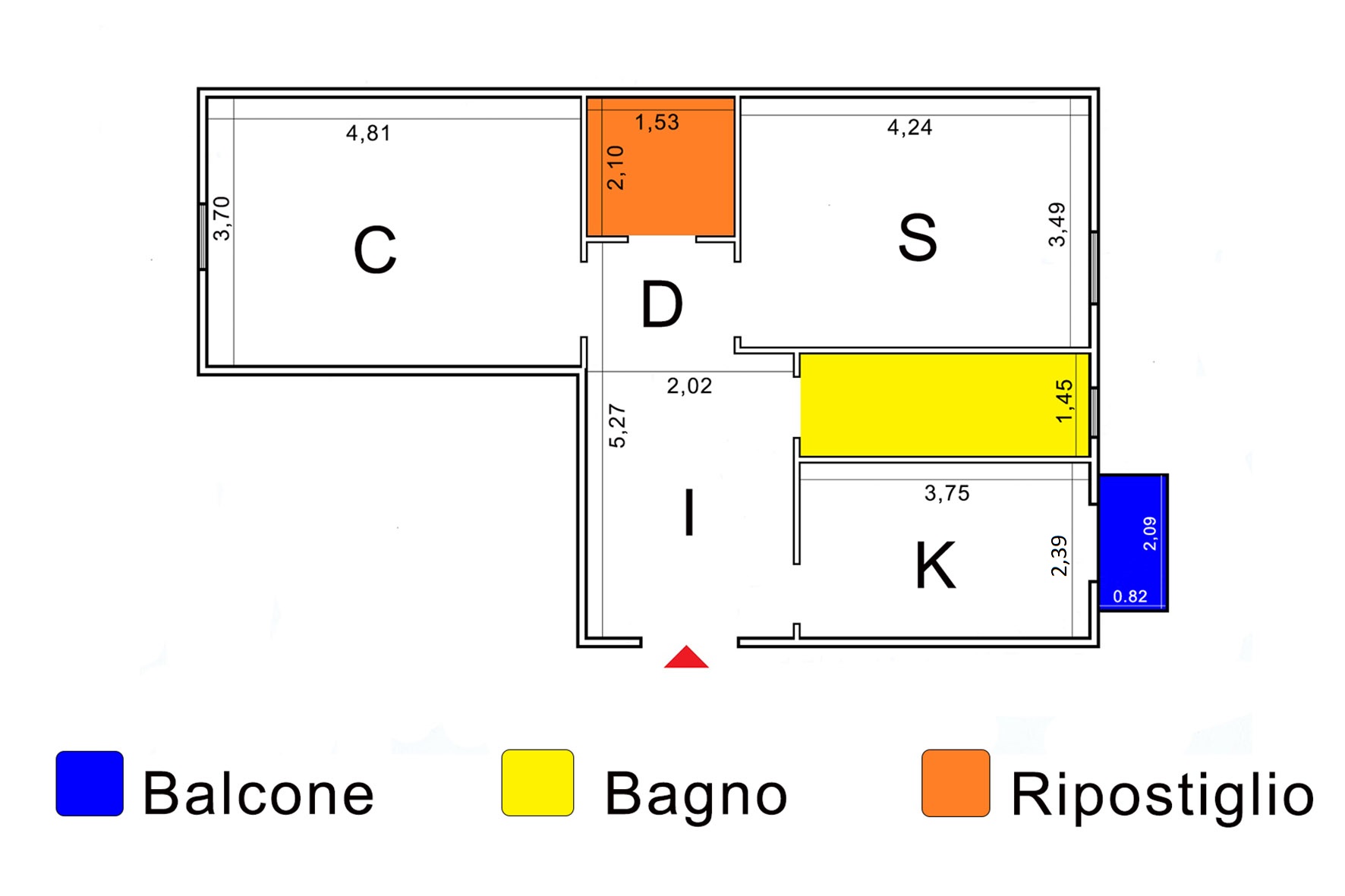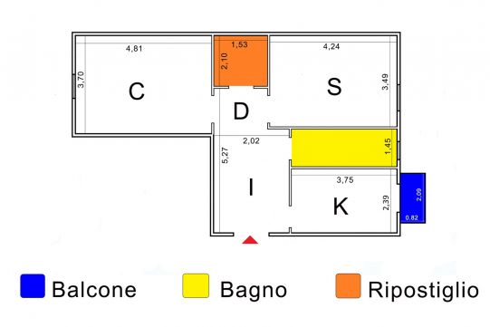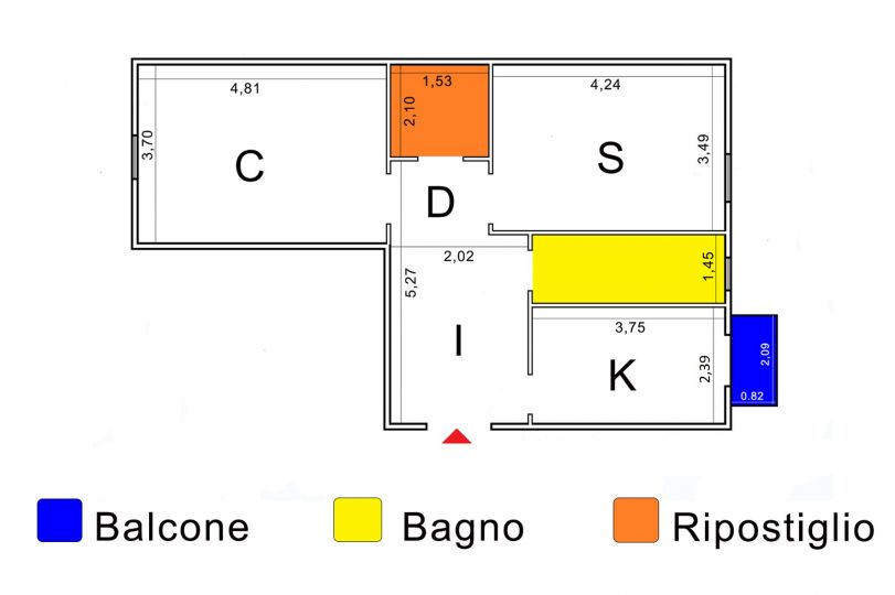 - Camera, cucina e bagno a Nord-Est.